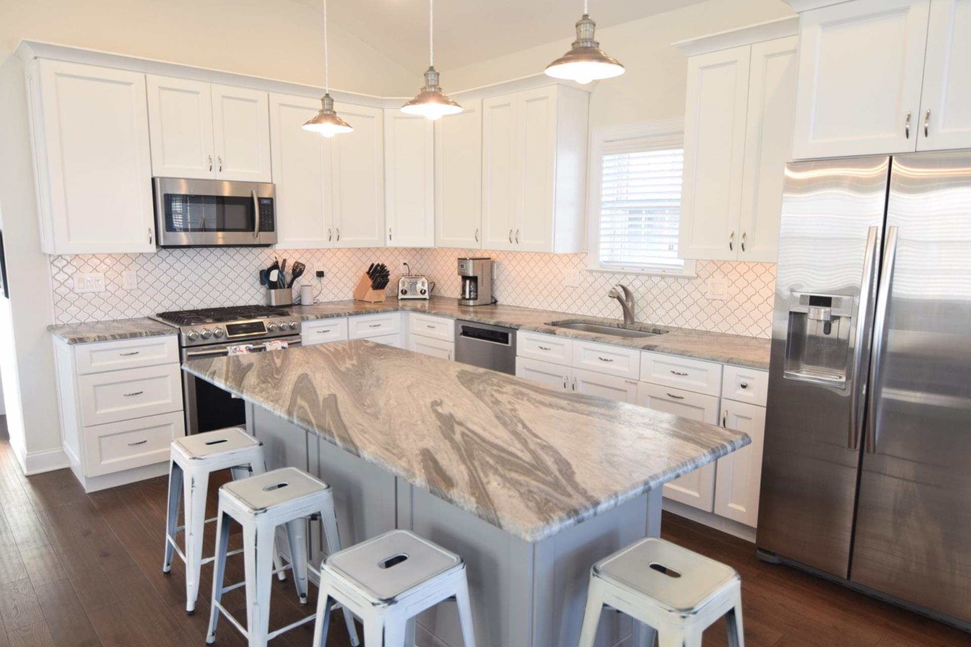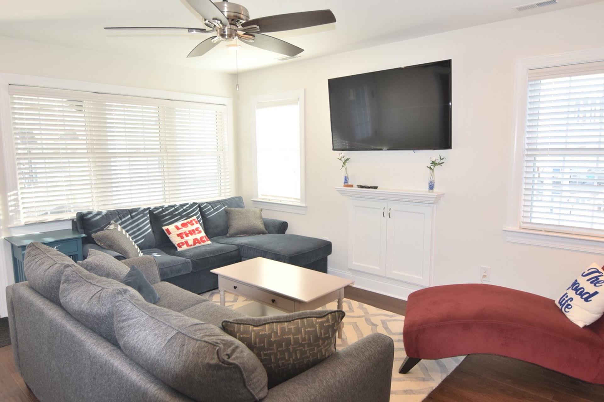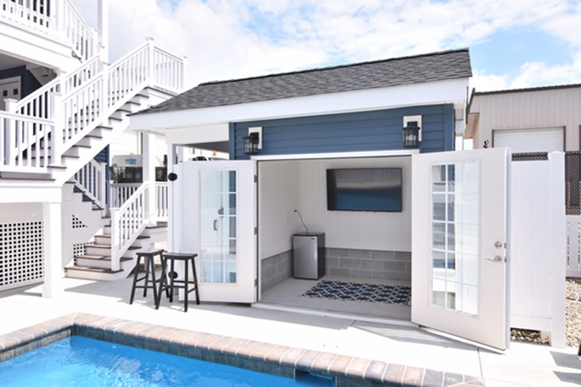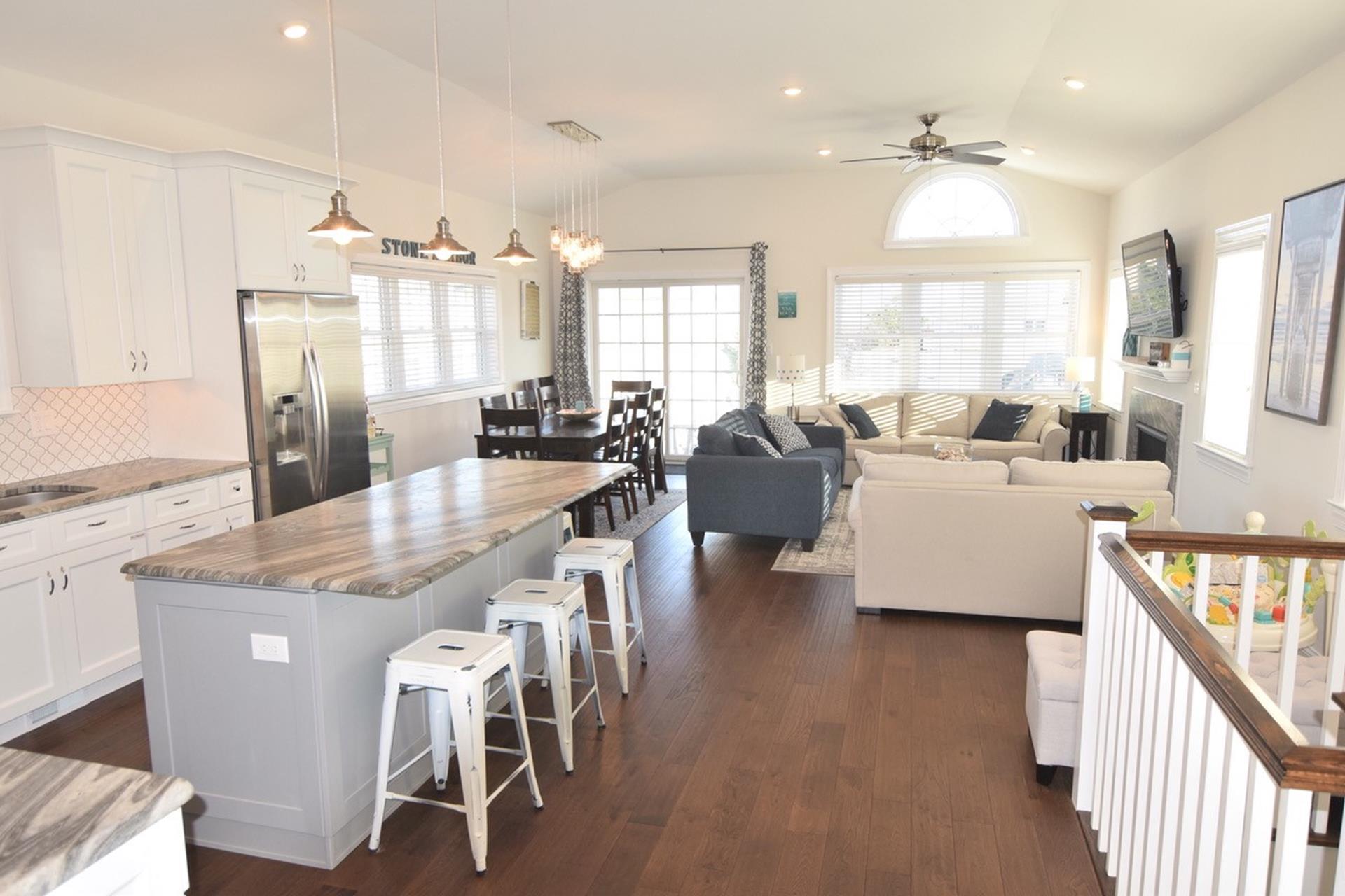 Adorable contemporary home with heated in ground pool, Cabana (with 55 flat screen) and multiple decks with bay and ocean views. Situated across from the bay and a short walk to the beach, recreation area, fine dining, casual dining, fishing and entertainment, a true "walk to everything" location. Features 4 bedroom (2 ensuite), family room and Queen size sleep sofa and 55" flat screen and double bunk room accommodating 4 occupants, this home accommodates up to 12 occupants. First floor ensuite bedroom offers a King bed, 2nd bedroom offers 2 sets of Bunk beds ( all single in size), 3rd bedroom has a Queen bed. A full bath accessed via the hall rounds out the first living level. The second floor features a spacious kitchen with center island dining, living room featuring 55 flat screen TV, dining area (seating for 10), large partially shaded, partially open sundeck with gas grill and access to pool area and cabana via exterior stair system. Easy access from 2nd floor living area and Master Bedroom with king size bed and 47 flat screen (semi private bath shared with living area) to roof top deck via spiral staircase with magnificent sunset and ocean views! This property features oak hardwood flooring throughout, granite countertops in the kitchen with stainless steel appliance package and laundry facility with front-loading washer and dryer. 2 car off-street parking, multiple flat screen TV s and some courtesy beach items.