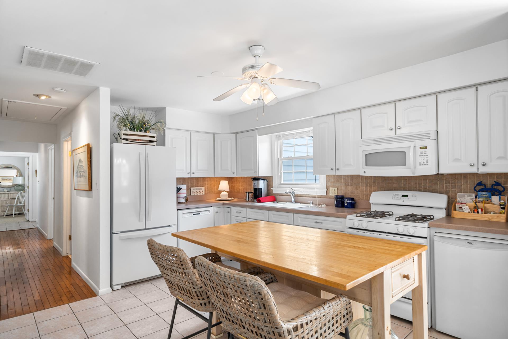 This pristine and absolutely perfect 4 bedroom 2 bath ranch home is the ideal home away from home for your family to enjoy this summer. Short walk to the beach and to a large family recreation area, this location is a great place to hang your hat for the summer. The home has been updated in the past few years with new living furniture, bed linens, carpeting. Bask in the sun on your front porch or read a book in privacy of your own secluded rear deck. This is NOT your typical Avalon ranch home. This four bedroom two bath has everything you could need to enjoy a week in Avalon. Your master bedroom with private bath has a king size bed. The kids share a bedroom with two twin beds. Two guest rooms each offering one queen in each room. This property also supplies high speed wireless internet access and cleaning in between each rental. Enjoy!