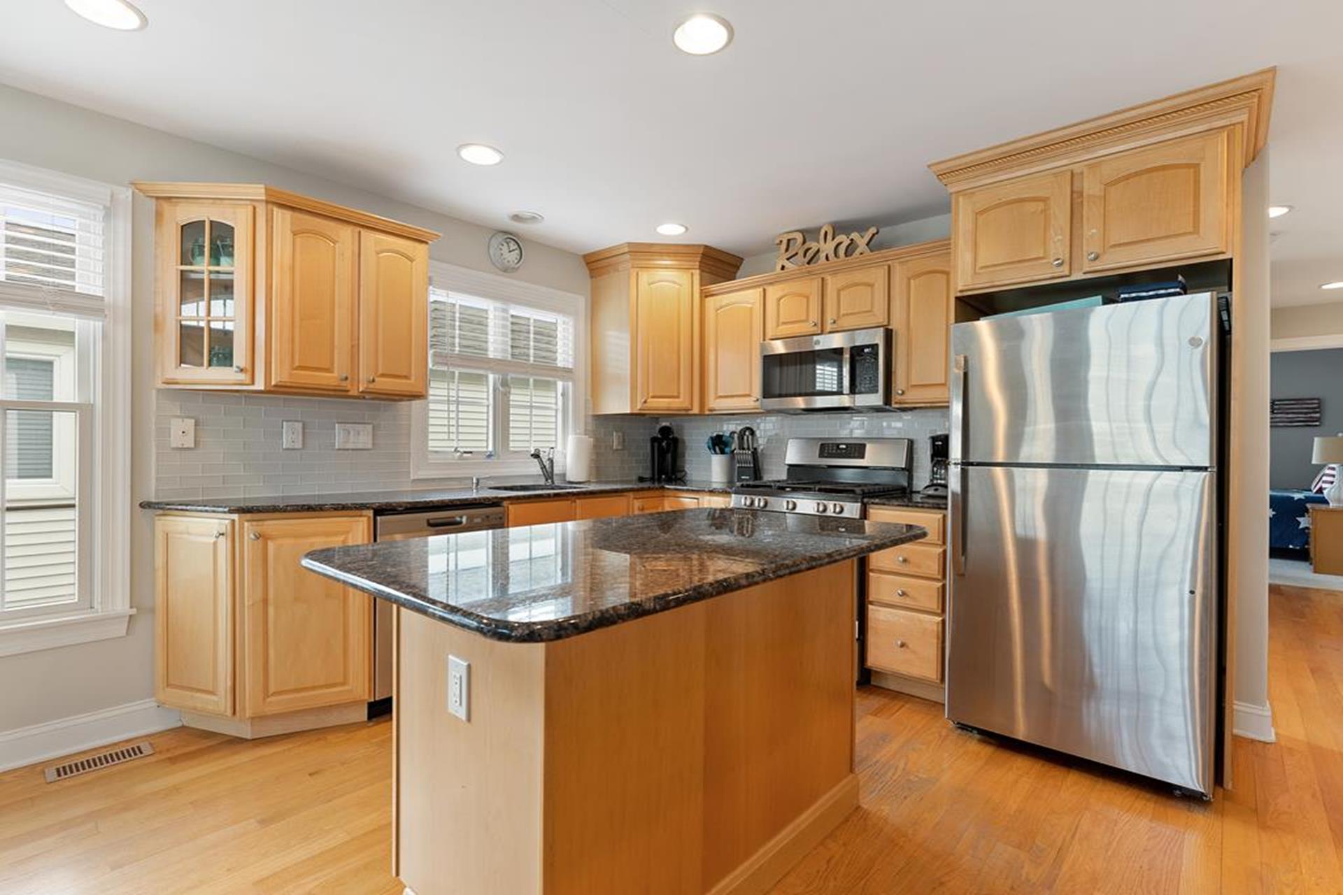 This three story townhome boasts four bedrooms and three and a half bathrooms. Situated steps from the newly renovated pier and dock at 22nd Street and Sixth Avenue. Outdoor enthusiasts will love the convenience of launching kayaks and paddle boards or simply soaking in the picturesque views of Princeton Harbor. The property has been meticulously updated by the owners, featuring fresh paint, new kitchen appliances, stylish furnishings in the first floor bonus room and 4 flat screen TVs for your entertainment needs. Step outside to the patio area, perfect for summer gatherings and creating lasting memories. The first floor offers an ensuite bedroom with a queen size bed. The second level has an ensuite bedroom with a queen size bed, powder room and living space with cathedral ceilings. The well appointed kitchen with a center island is ideal for hosting guests and the adjacent deck provides a charming setting for enjoying meals or drinks outdoors. The third floor features two bedrooms one with a double size bed and a twin size bed and the primary bedroom with a king size bed. There is also a hall bath with a walk in shower. Store your beach and bay essentials, bikes and surf boards in the attached garage, which also has an additional fridge for your convenience. Stay connected with wireless internet, grill up a feast on the gas grill, rinse off in the enclosed outdoor shower and enjoy the comfort of central air conditioning. With off street parking for two cars, you will have everything you need for a perfect vacation.