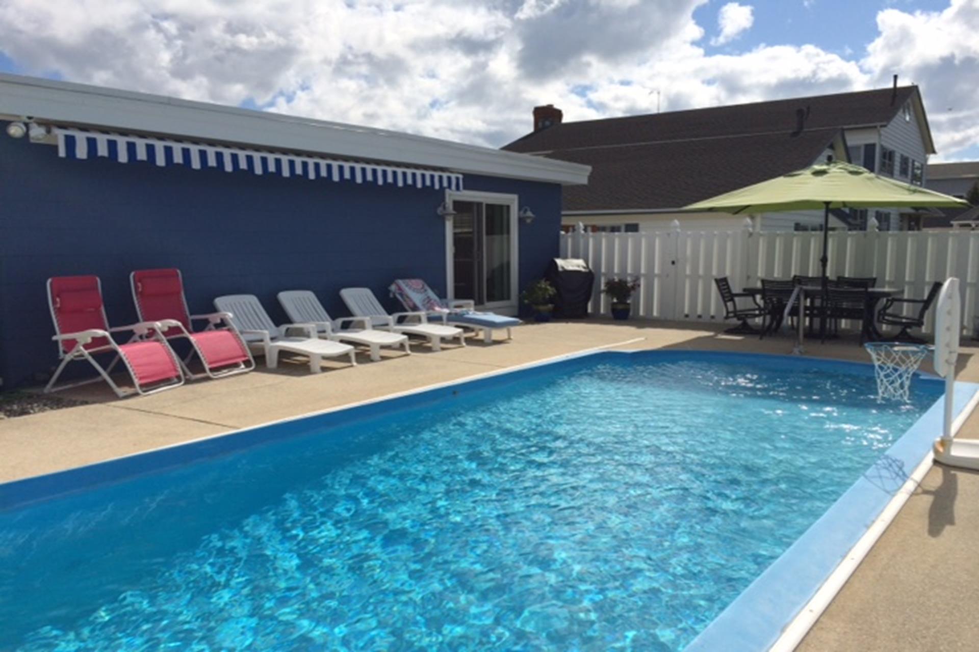A special find in Avalon...this 4 bedroom and 2 bath rancher with inground heated swimming pool for your enjoyment. Enter the home into a cozy family room area. This home offers a bedroom with two twin beds, a bedroom with a Queen, a bedroom with two twin beds and a master bedroom with King bed and private bathroom. The living room area is bright and open with access to the rear pool area, there is a kitchen and dining area along with a full hall bathroom. 3 of the 4 bedrooms are equipped with window unit with the 4th bedroom having a free standing unit and the main living area has large unit to cool main living spaces. All bedrooms outfitted with ceiling fans including living area and kitchen. Come and enjoy this great home thats within close proximity to town and three and a half block walk to the beach.