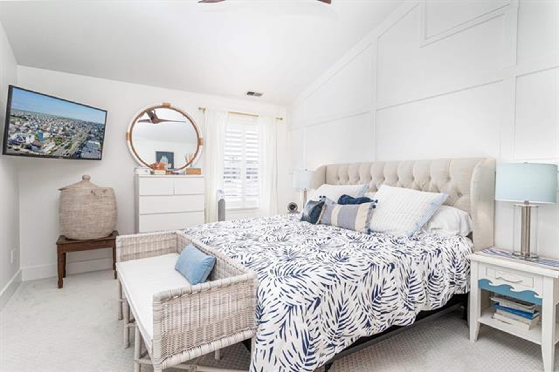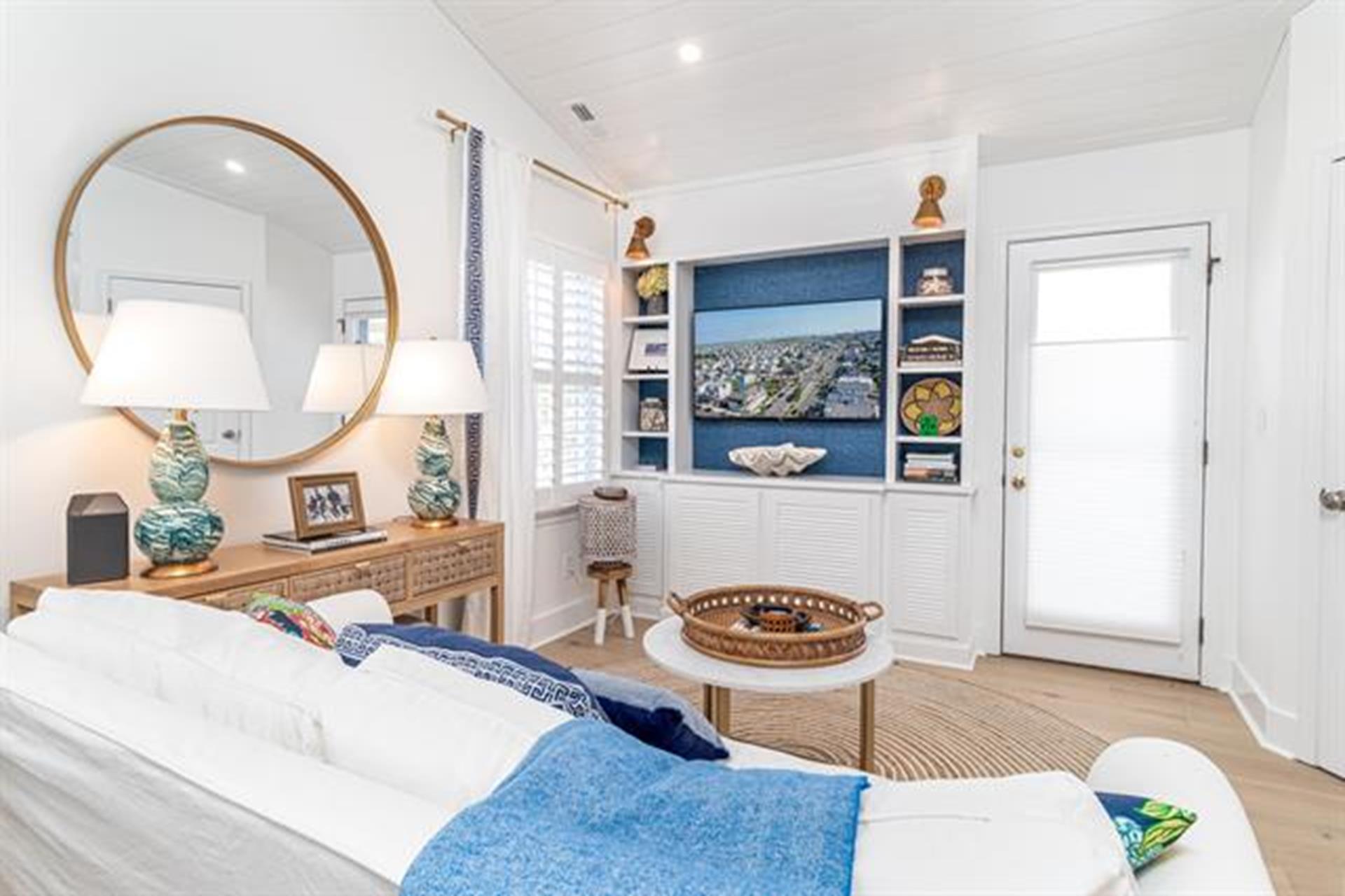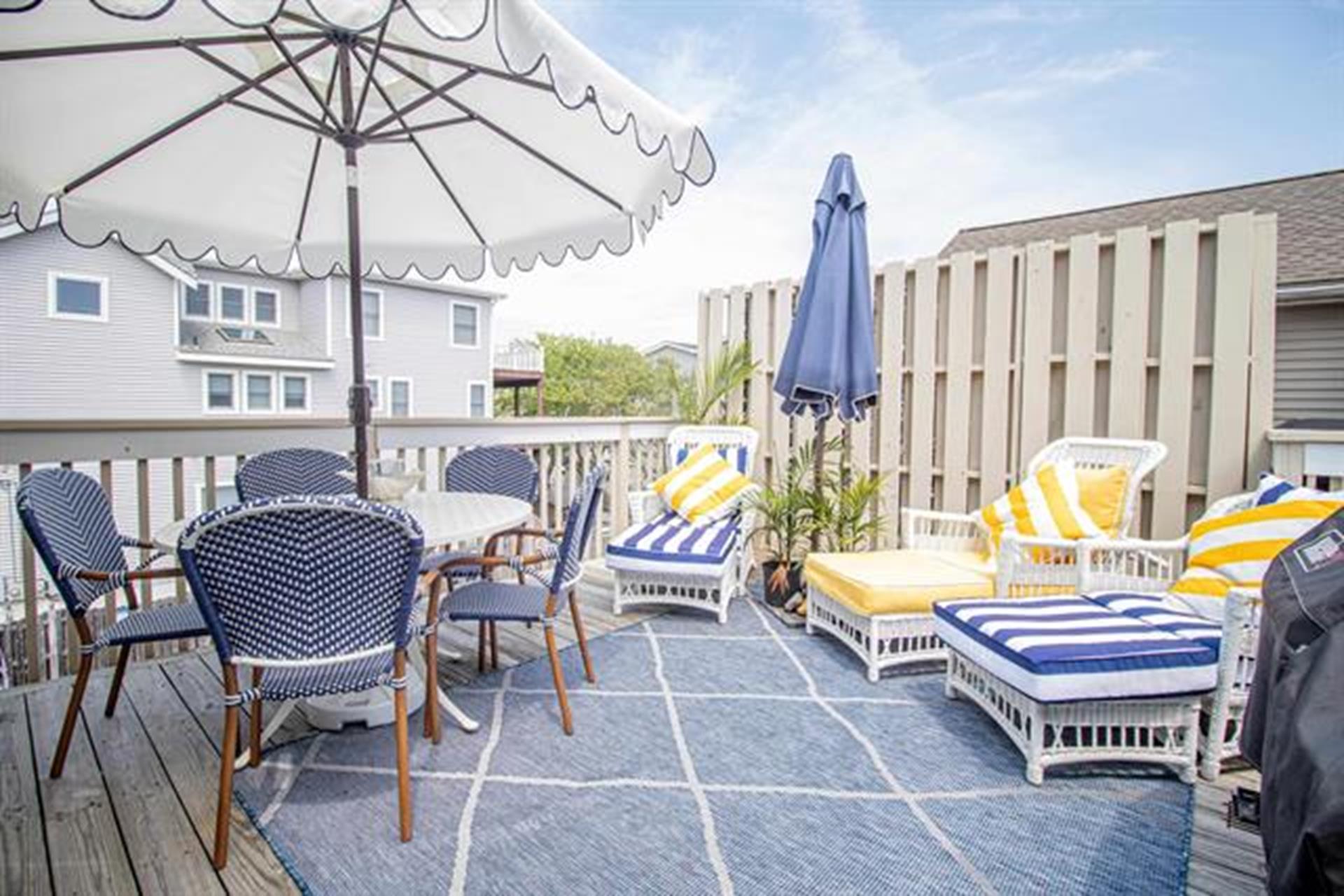 GREAT CONDO WITH IN TOWN LOCATION ONLY THREE BLOCKS TO THE BEACH. Second floor unit offering three bedrooms and two full baths with 1,425 square feet of living space. The unit has engineered wide plank floors, beautiful kitchen cabinets, stunning Super White quartz countertops, stainless steel appliances, ice maker, beverage fridge and custom tiled baths. There are two, private expansive sun decks on the west side of the home and east side. The front entrance opens to a beautiful vaulted great room with wide plank floors, custom built in, dining banquet seating, kitchen with huge center island, plenty of seating around the center island, primary bedroom with custom bath, two additional bedrooms, hall bath and laundry. The decorator furnishings have many Serena Lily pieces. The property is situated on the corner of 28th Street and Dune Drive. The 28th Street beach is guarded and is also a raft beach. For the surfers, 30thStreet is only two blocks away.