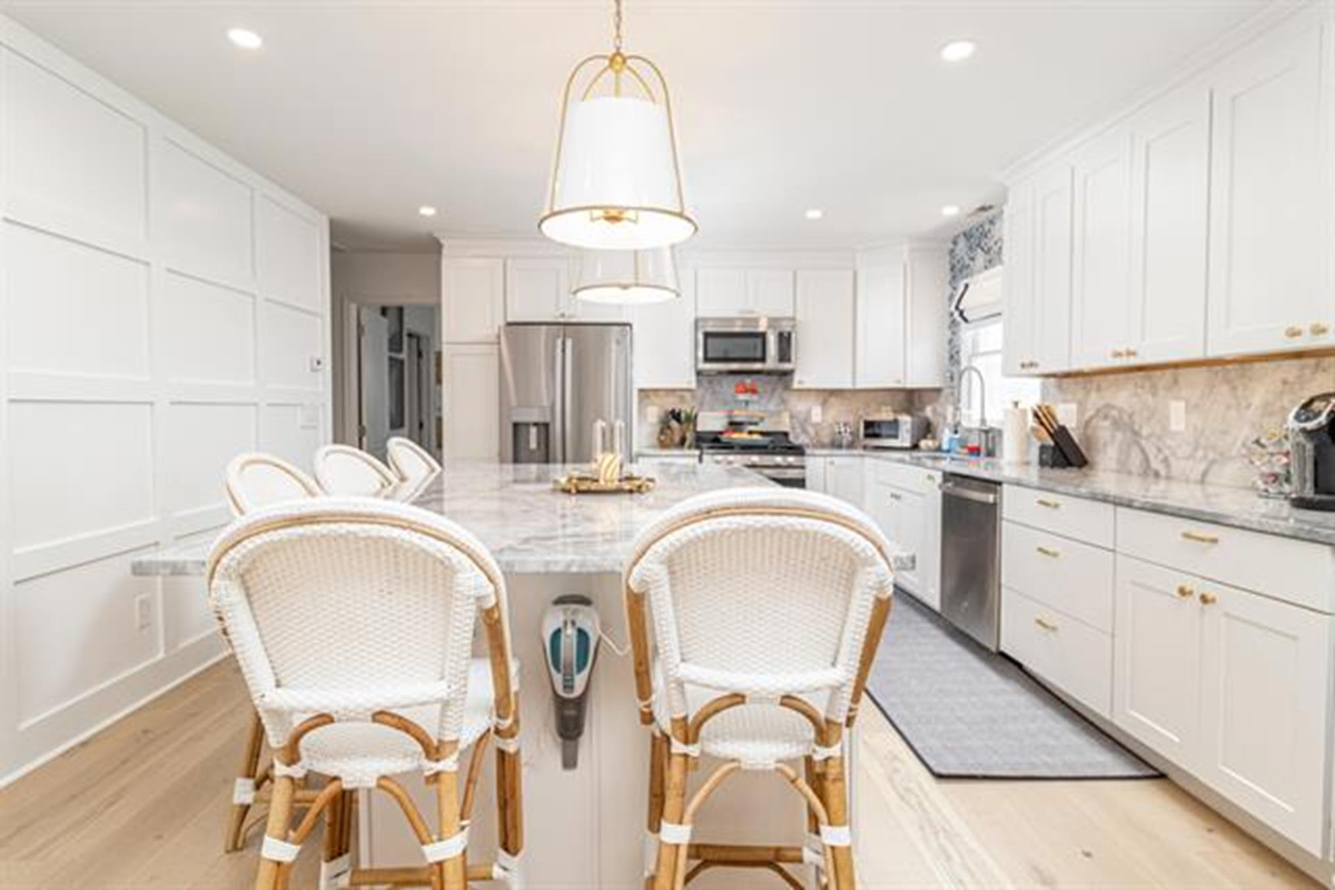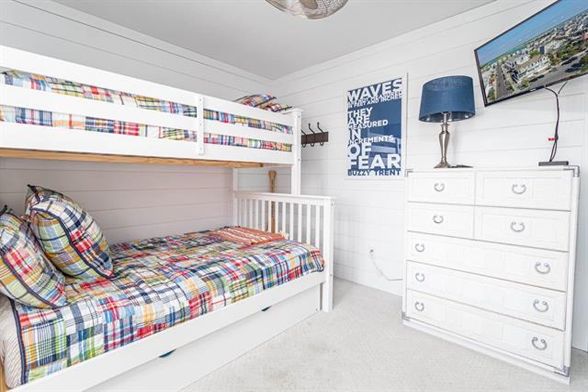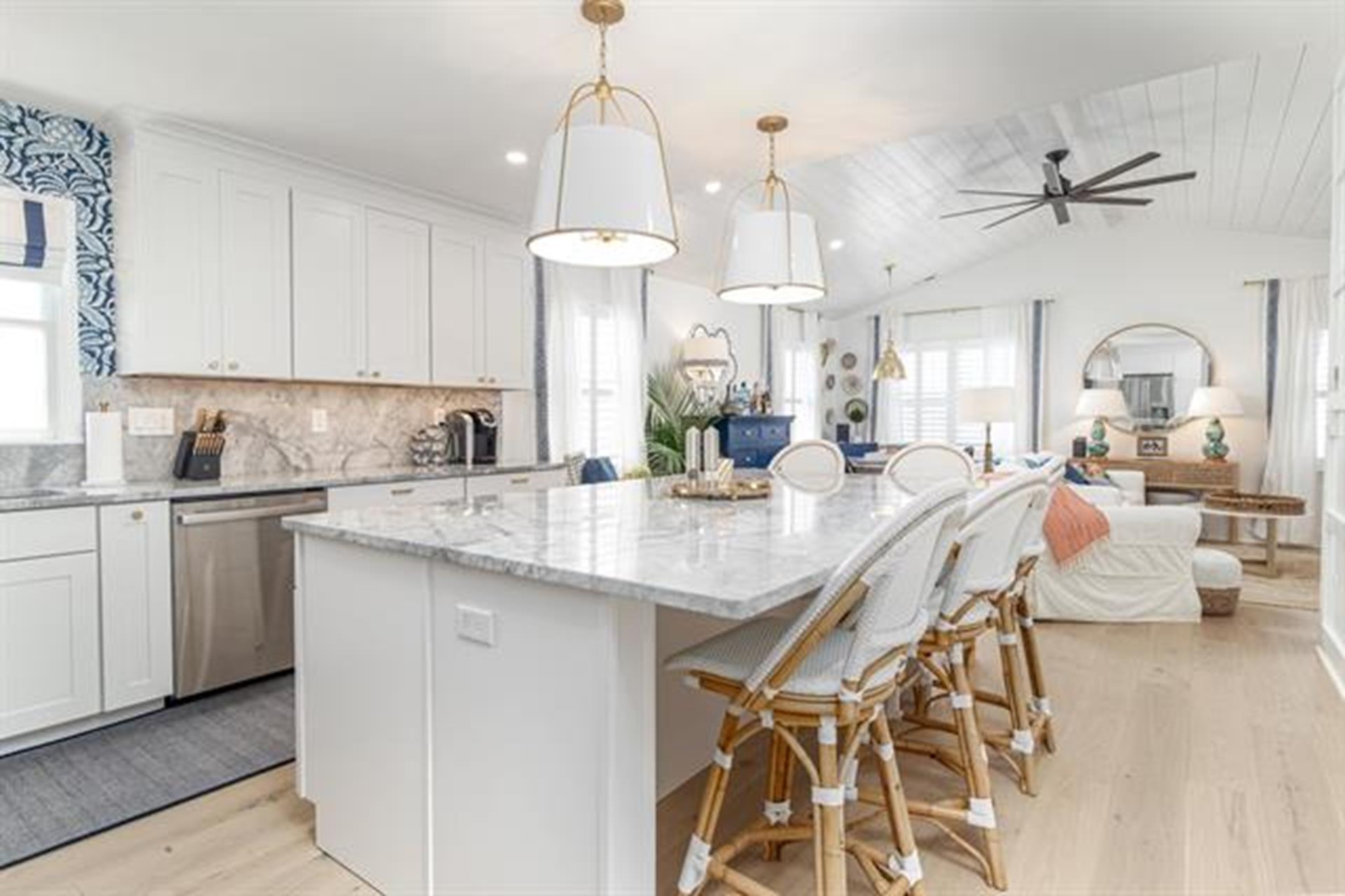 GREAT CONDO WITH IN TOWN LOCATION ONLY THREE BLOCKS TO THE BEACH. Second floor unit offering three bedrooms and two full baths with 1,425 square feet of living space. The unit has engineered wide plank floors, beautiful kitchen cabinets, stunning Super White quartz countertops, stainless steel appliances, ice maker, beverage fridge and custom tiled baths. There are two, private expansive sun decks on the west side of the home and east side. The front entrance opens to a beautiful vaulted great room with wide plank floors, custom built in, dining banquet seating, kitchen with huge center island, plenty of seating around the center island, primary bedroom with custom bath, two additional bedrooms, hall bath and laundry. The decorator furnishings have many Serena Lily pieces. The property is situated on the corner of 28th Street and Dune Drive. The 28th Street beach is guarded and is also a raft beach. For the surfers, 30thStreet is only two blocks away.