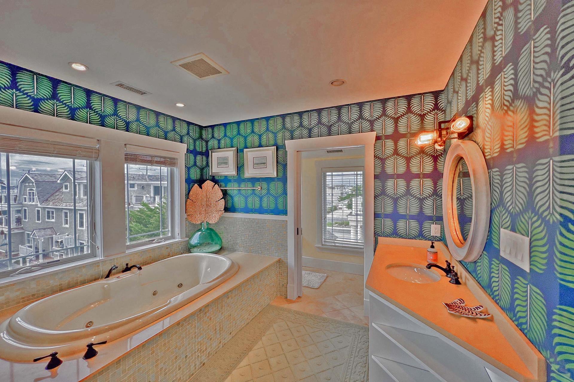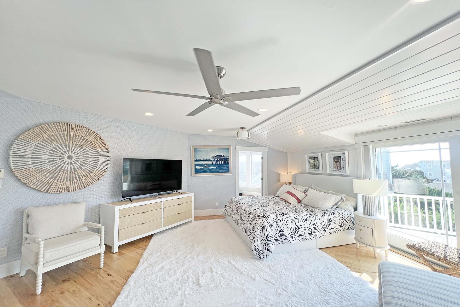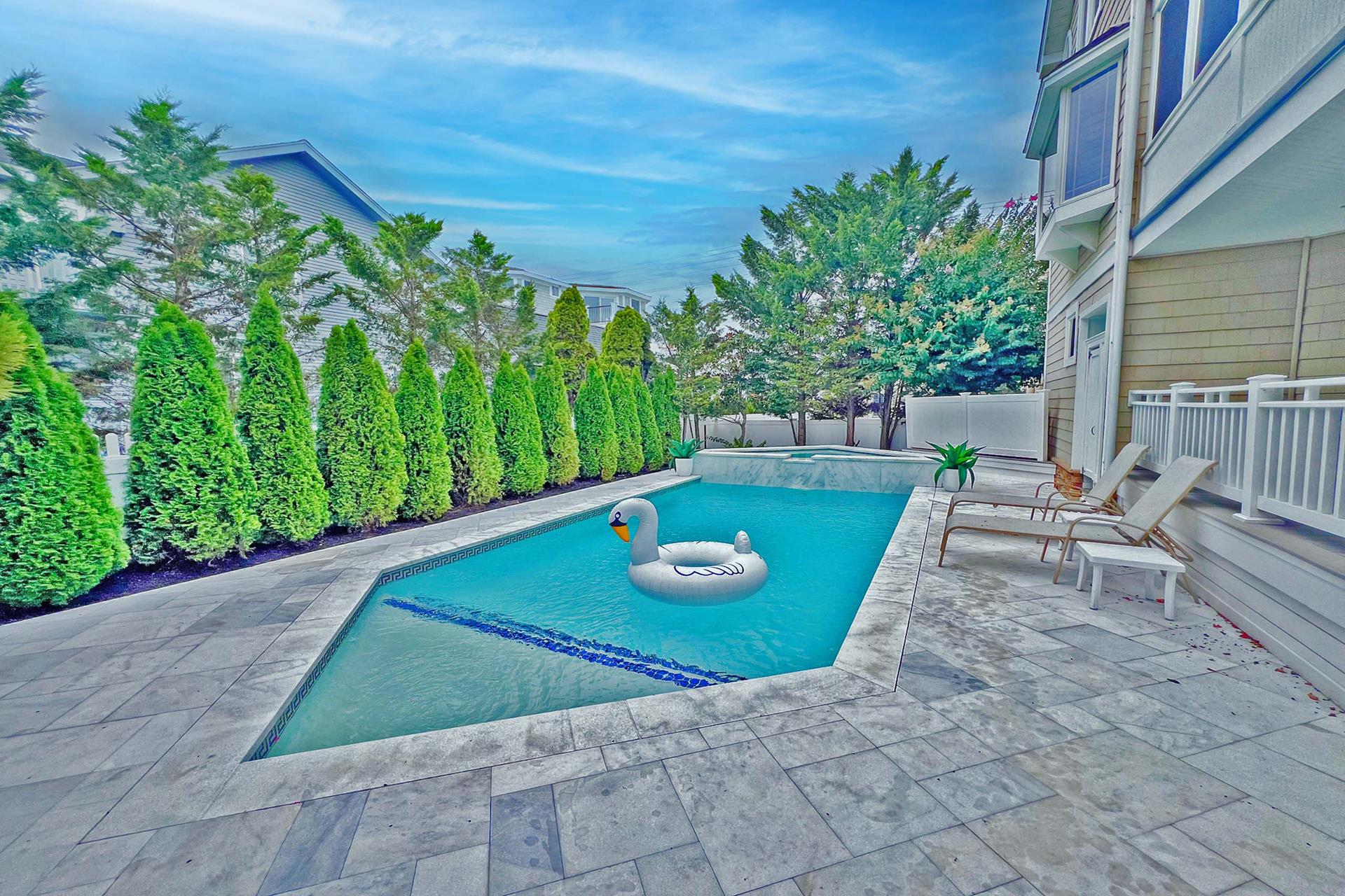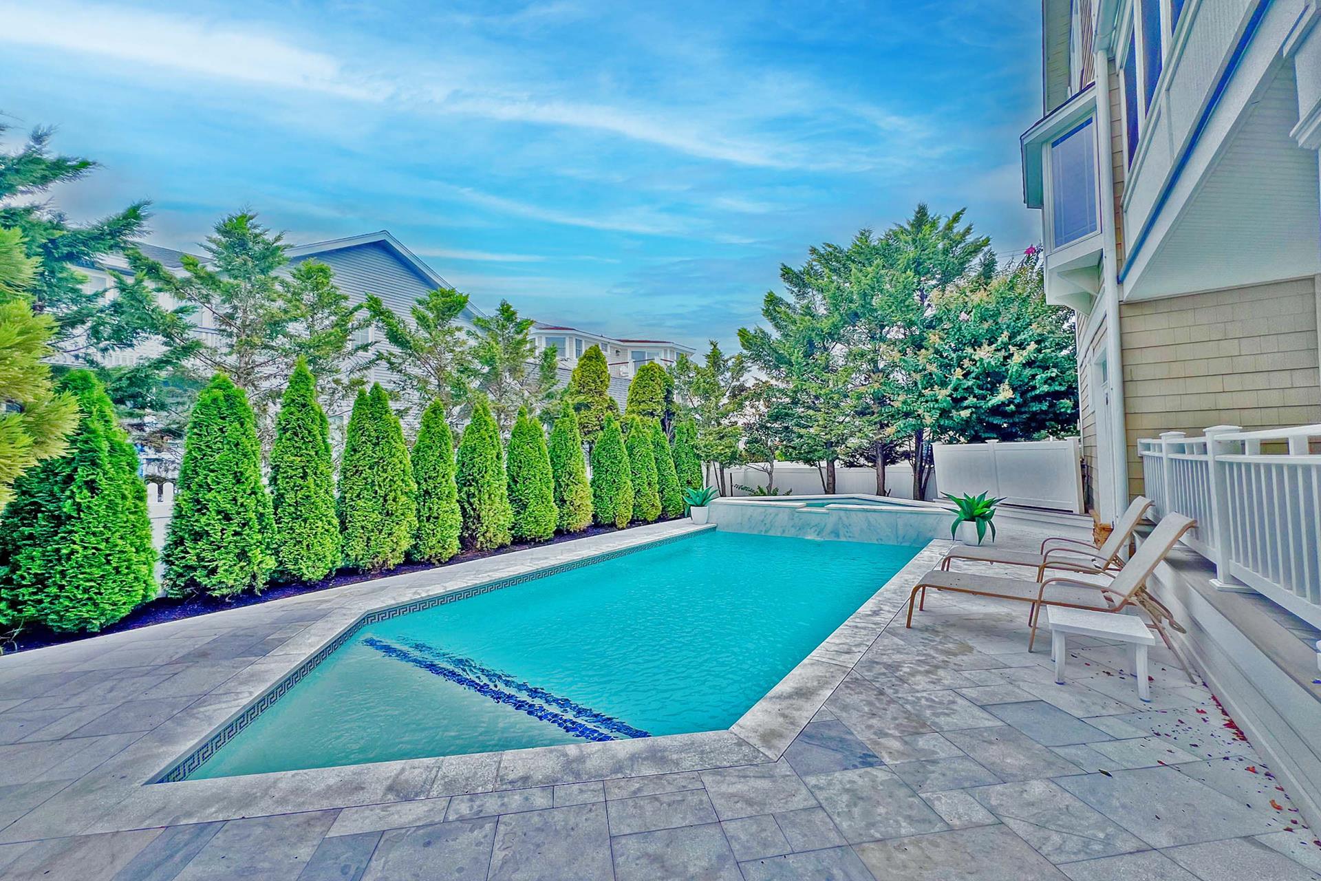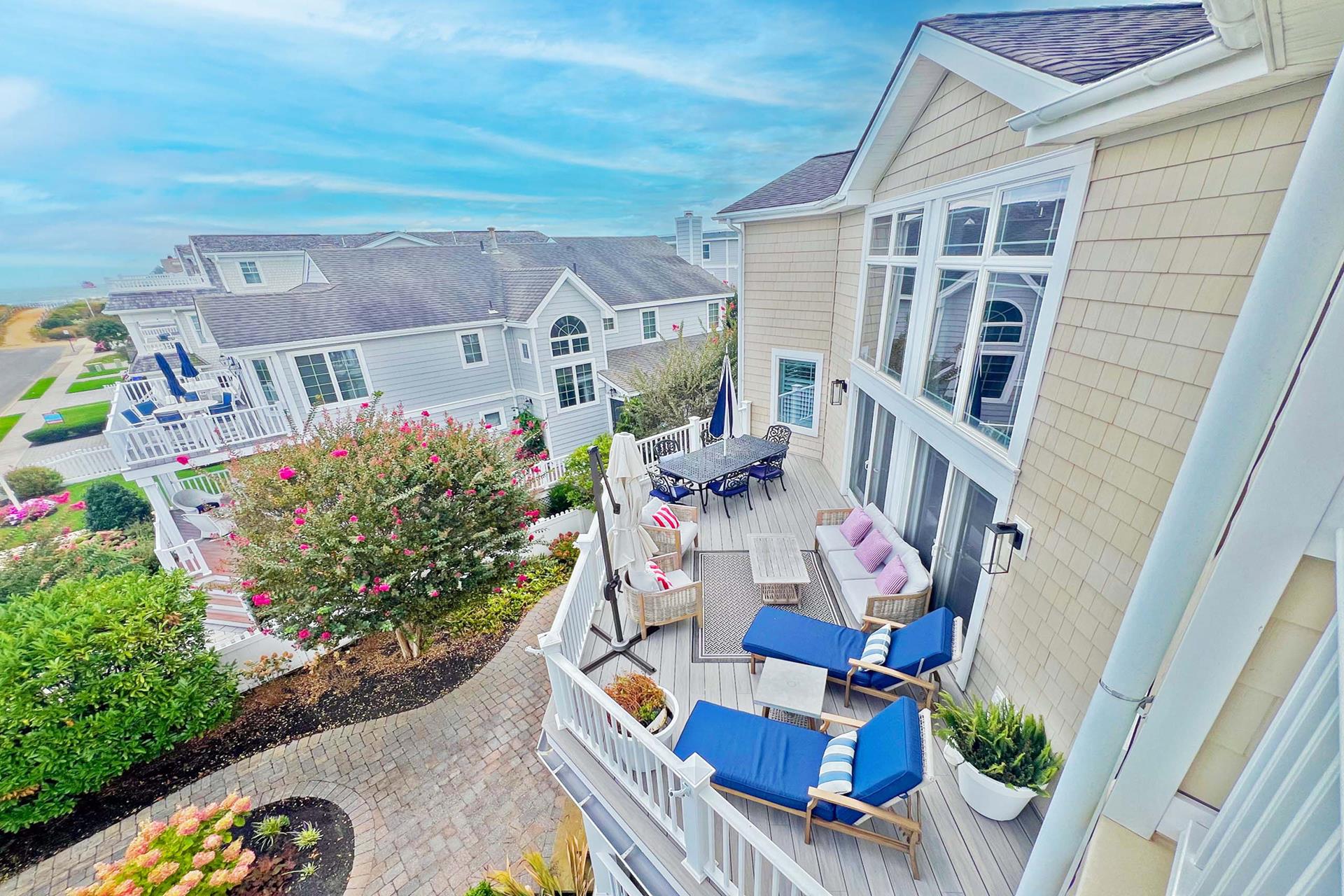 Sensational three story, beach block upside down home with ocean views. Second floor great room area features vaulted ceilings in the living area with ample sunlight and flat screen television, custom gourmet kitchen with stainless steel appliances comfortable dining area. The second floor hosts an office space/6th bedroom with king bed. The first floor has bedroom with a queen bed, a bedroom with bunk bed (twin over double) and a bedroom with another queen The third floor has master bedroom with king bed and twin day bed and second bedroom with king bed. Retreat to the rear yard with large inground swimming pool to relax and enjoy. Elevator available ($1,500 elevator security deposit) with access at the garage level. House has 6 bedrooms in total. 3 on the 1st floor, 1 on the 2nd behind the living room and 2 upstairs (master suite upstairs). All bathrooms have walk in showers with the en-suite bathrooms except one on the first floor has a tub and shower.!