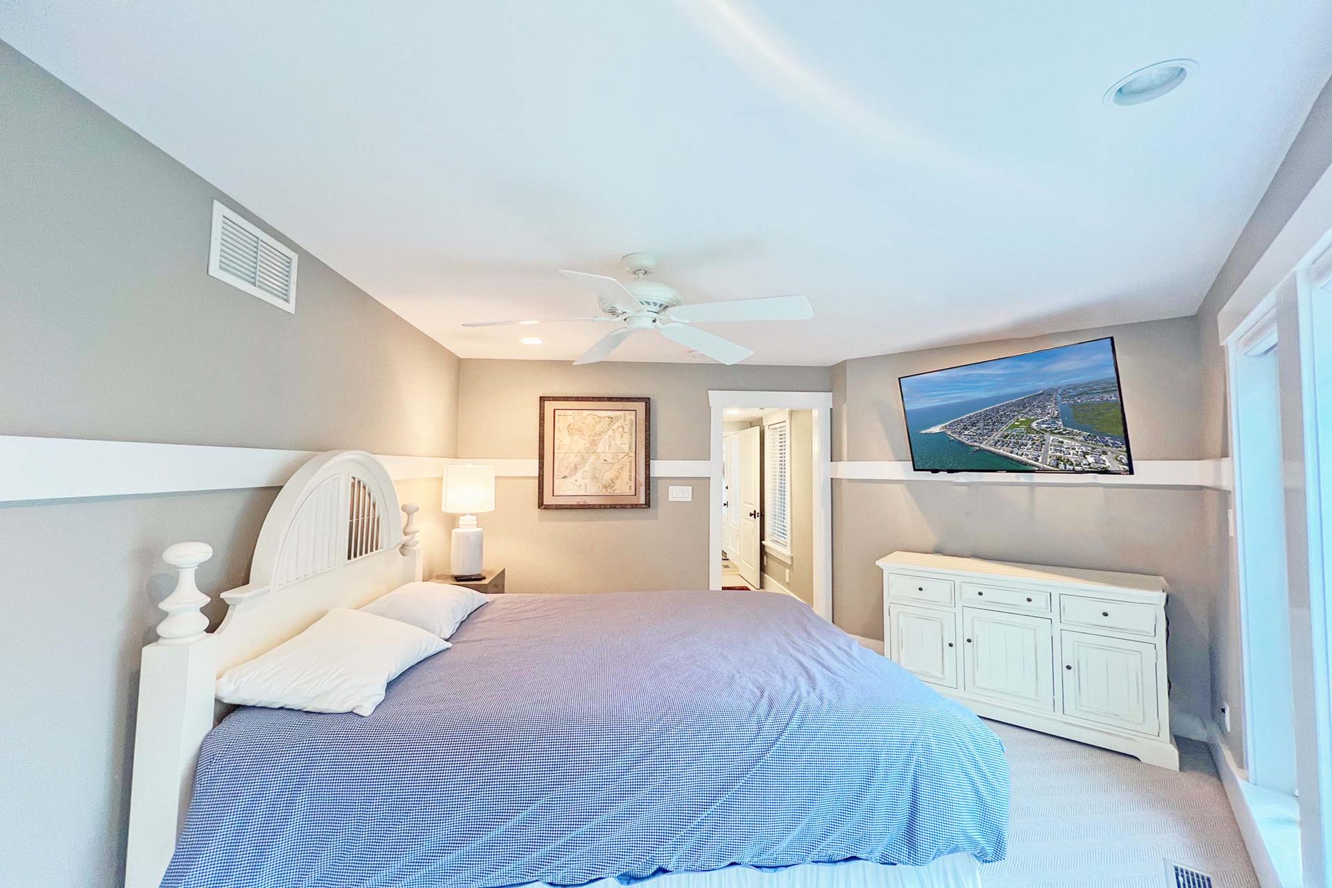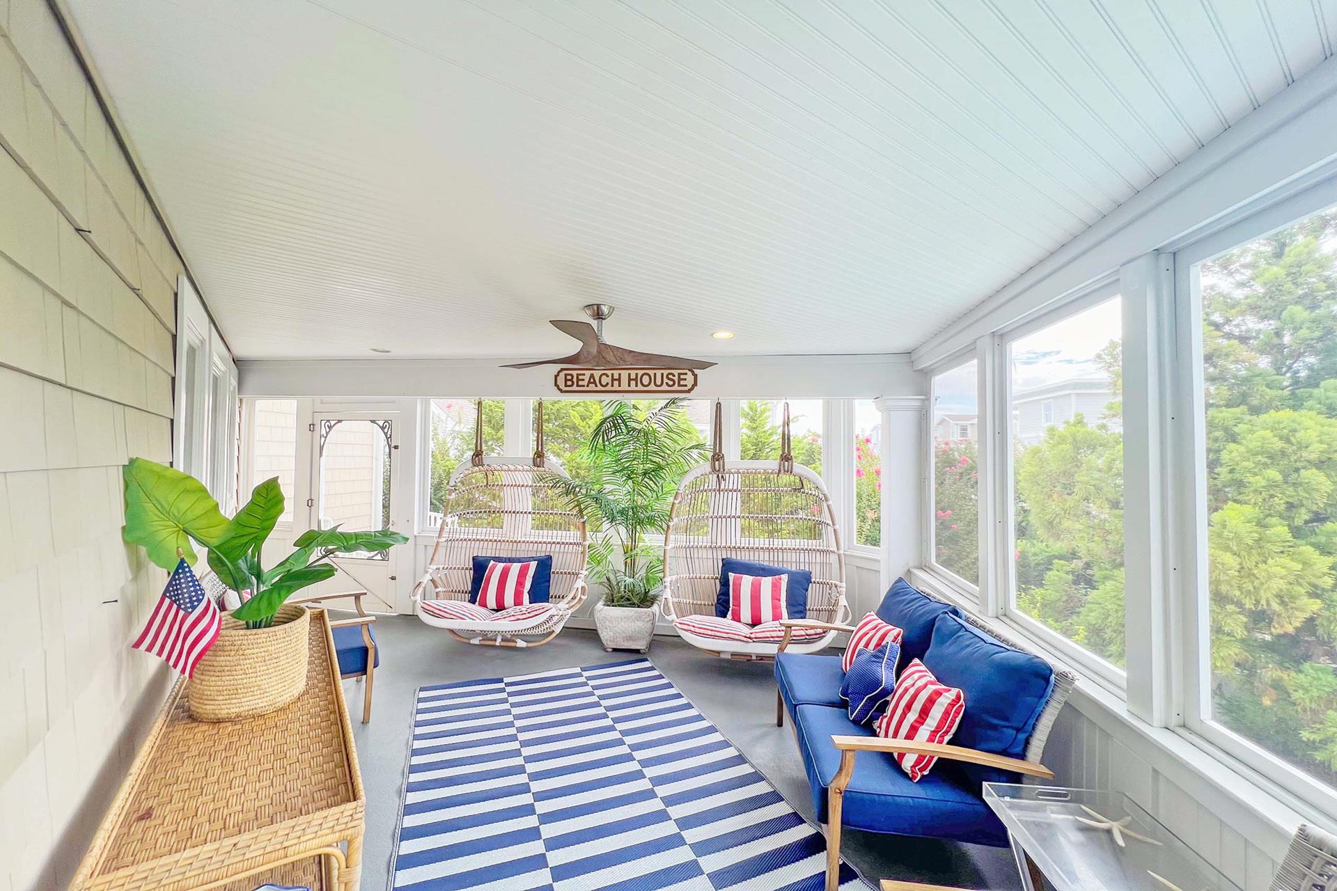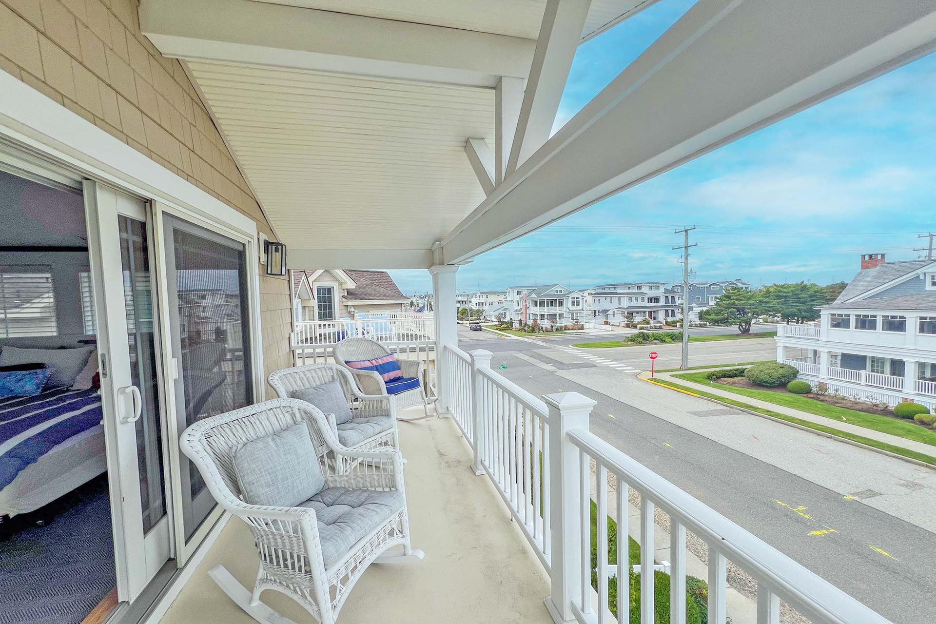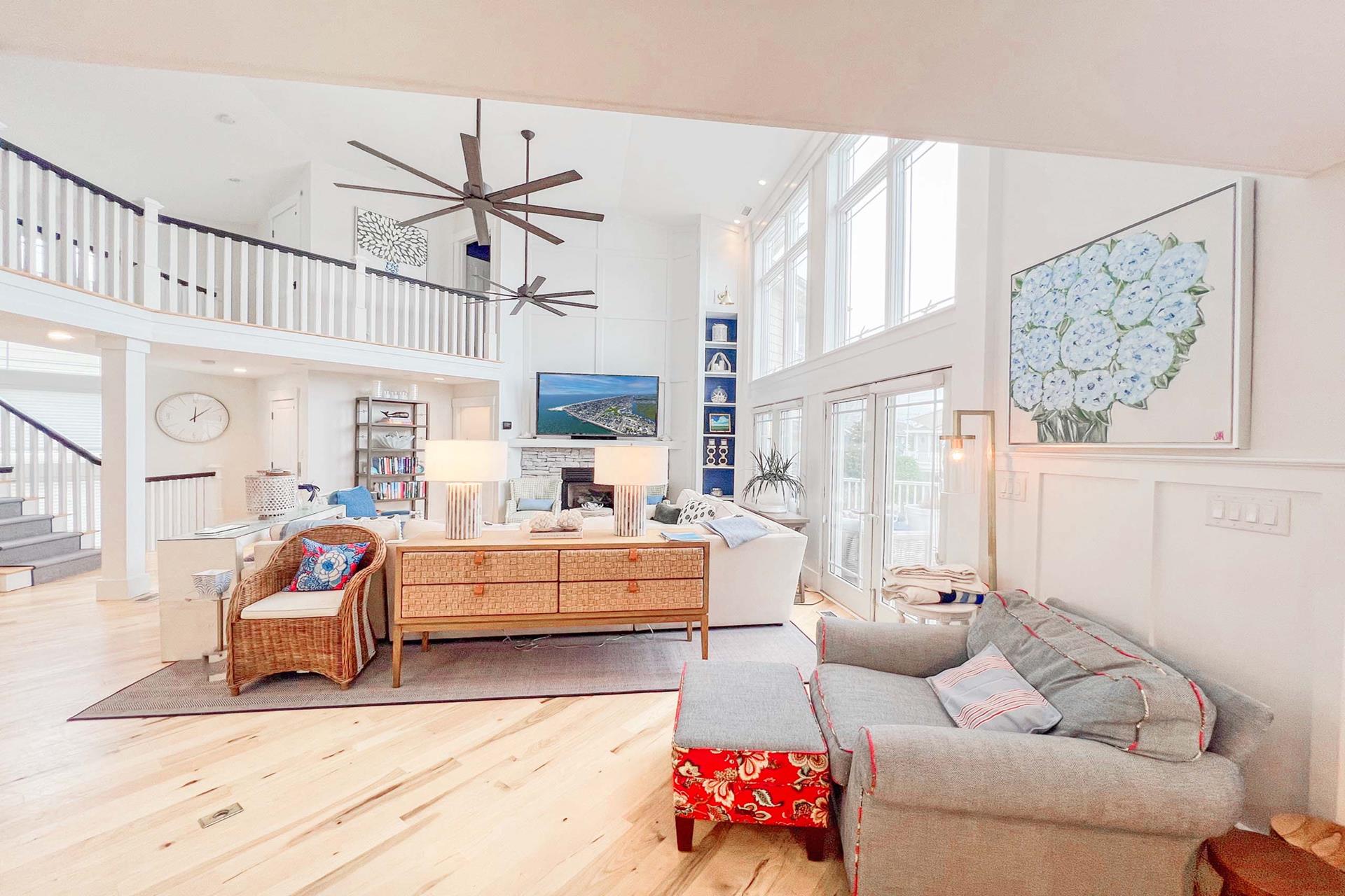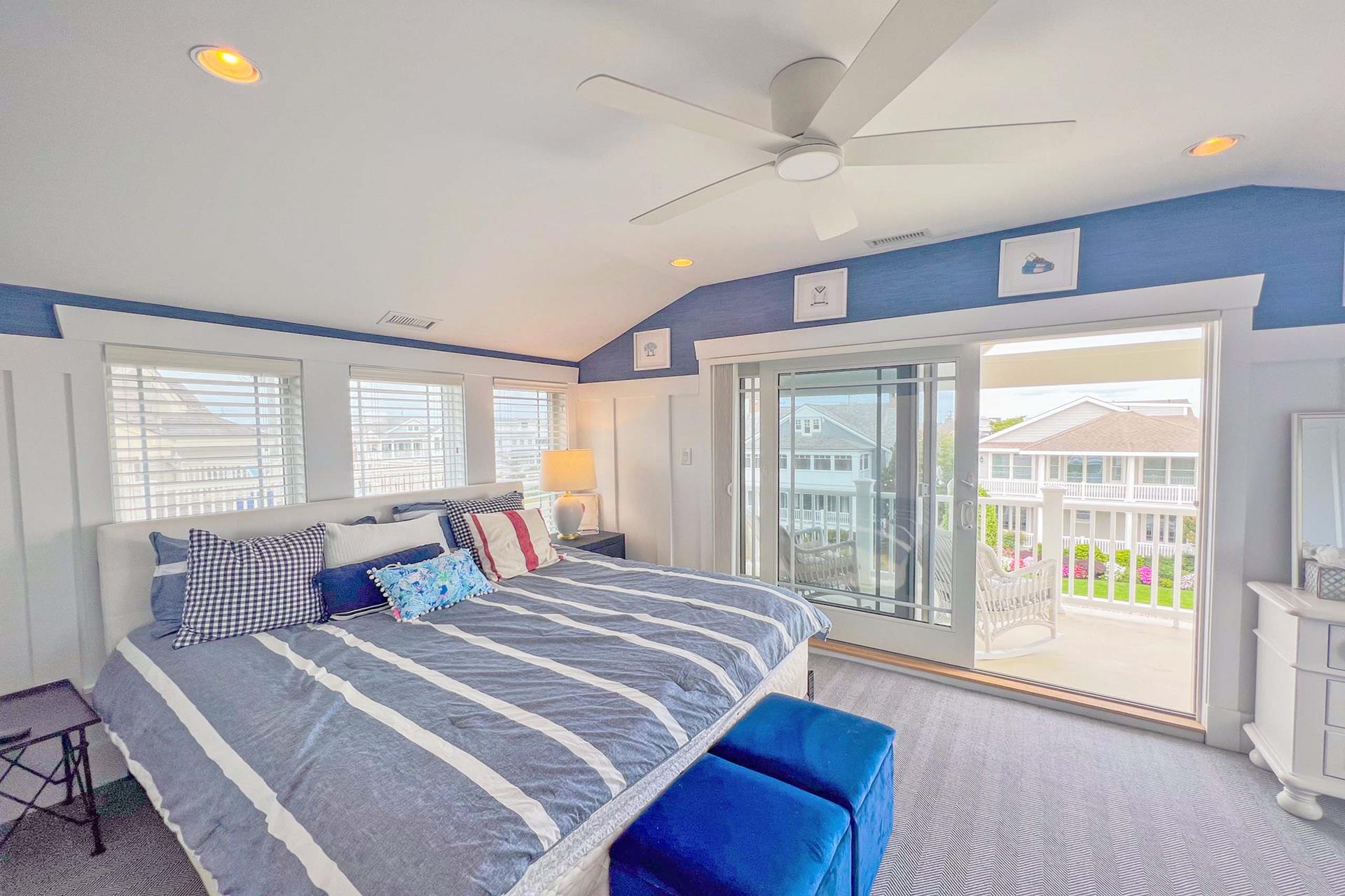 Sensational three story, beach block upside down home with ocean views. Second floor great room area features vaulted ceilings in the living area with ample sunlight and flat screen television, custom gourmet kitchen with stainless steel appliances comfortable dining area. The second floor hosts an office space/6th bedroom with king bed. The first floor has bedroom with a queen bed, a bedroom with bunk bed (twin over double) and a bedroom with another queen The third floor has master bedroom with king bed and twin day bed and second bedroom with king bed. Retreat to the rear yard with large inground swimming pool to relax and enjoy. Elevator available ($1,500 elevator security deposit) with access at the garage level. House has 6 bedrooms in total. 3 on the 1st floor, 1 on the 2nd behind the living room and 2 upstairs (master suite upstairs). All bathrooms have walk in showers with the en-suite bathrooms except one on the first floor has a tub and shower.!