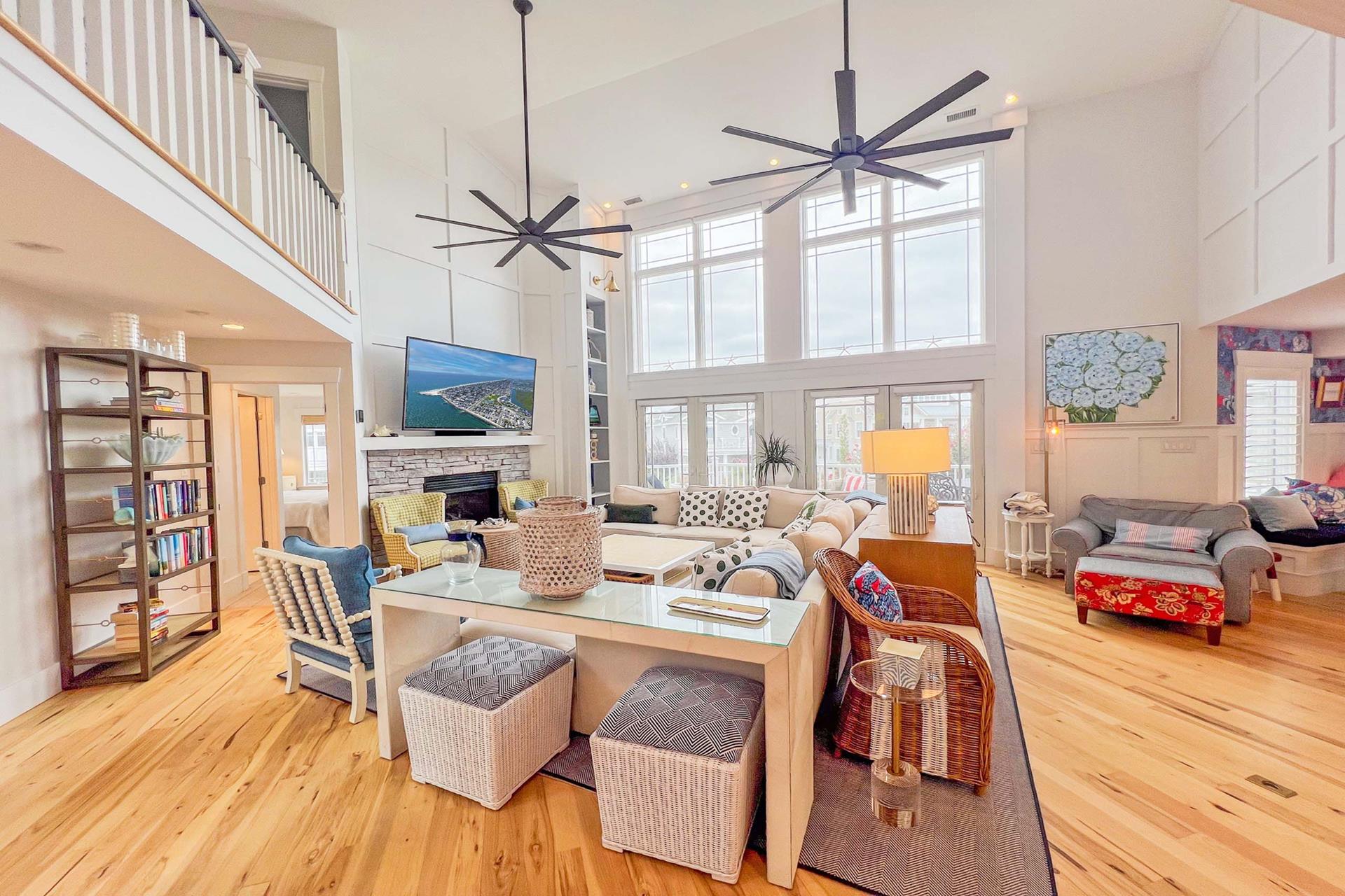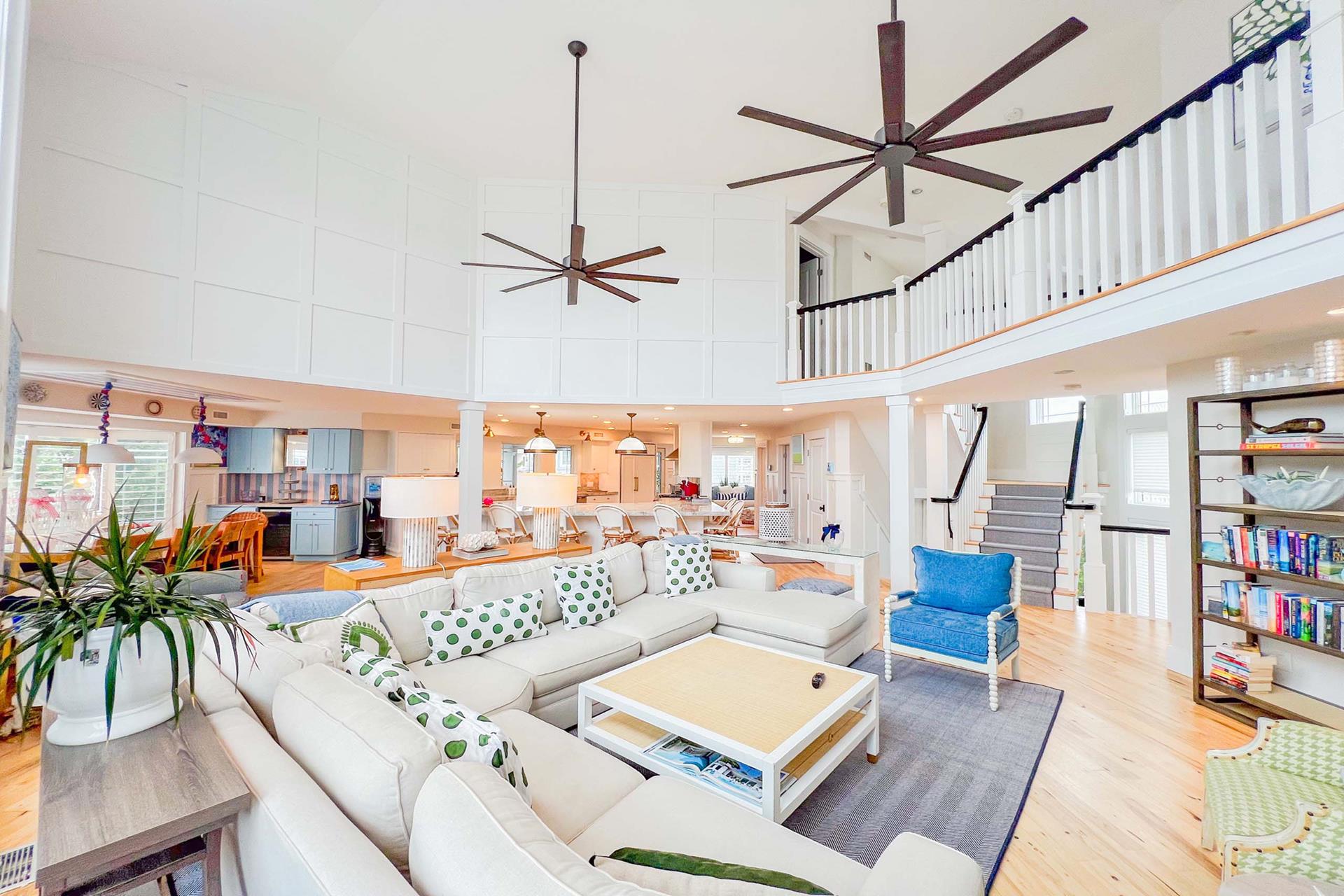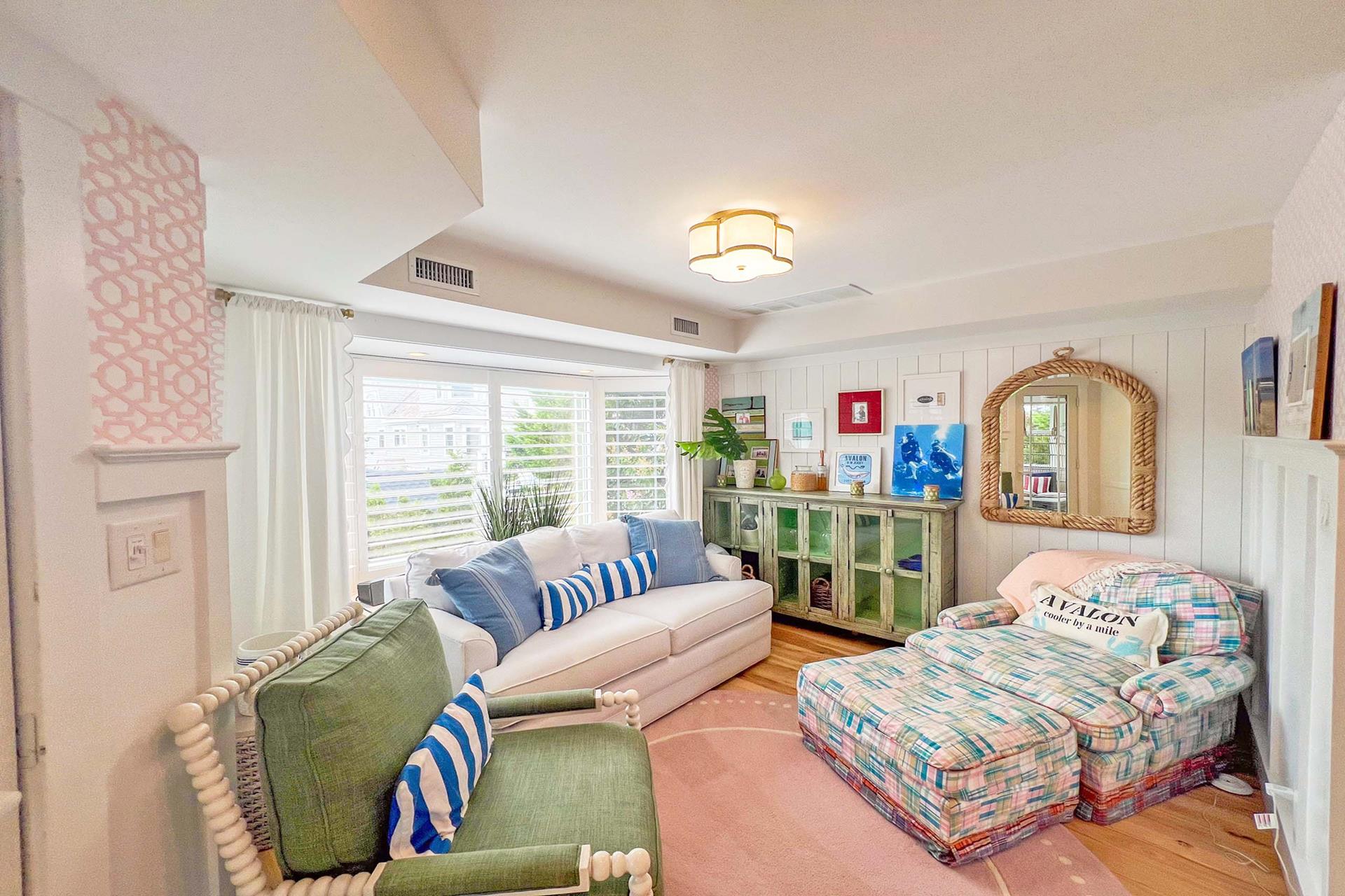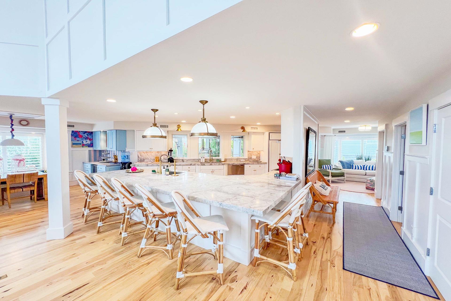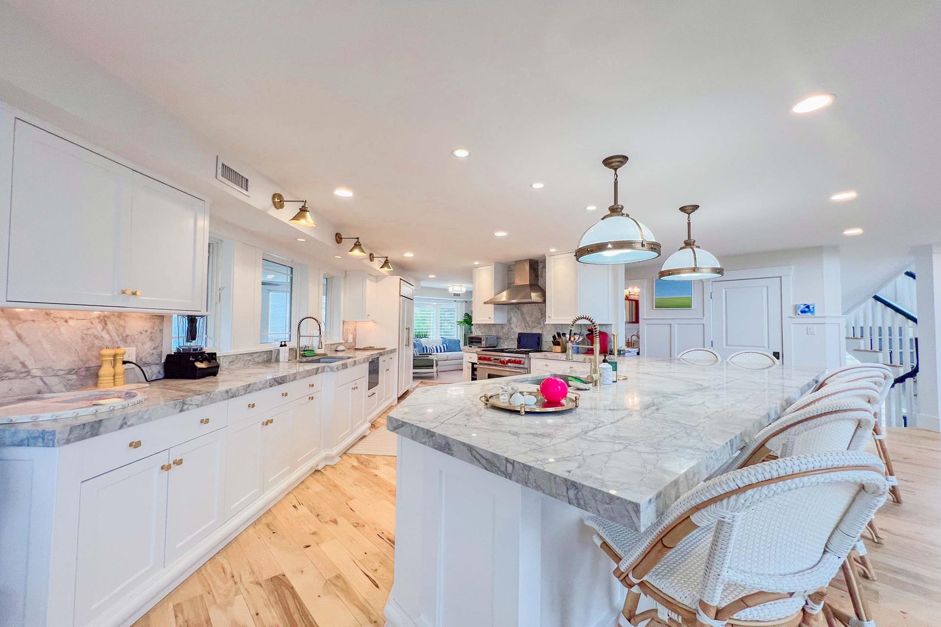 Sensational three story, beach block upside down home with ocean views. Second floor great room area features vaulted ceilings in the living area with ample sunlight and flat screen television, custom gourmet kitchen with stainless steel appliances comfortable dining area. The second floor hosts an office space/6th bedroom with king bed. The first floor has bedroom with a queen bed, a bedroom with bunk bed (twin over double) and a bedroom with another queen The third floor has master bedroom with king bed and twin day bed and second bedroom with king bed. Retreat to the rear yard with large inground swimming pool to relax and enjoy. Elevator available ($1,500 elevator security deposit) with access at the garage level. House has 6 bedrooms in total. 3 on the 1st floor, 1 on the 2nd behind the living room and 2 upstairs (master suite upstairs). All bathrooms have walk in showers with the en-suite bathrooms except one on the first floor has a tub and shower.!