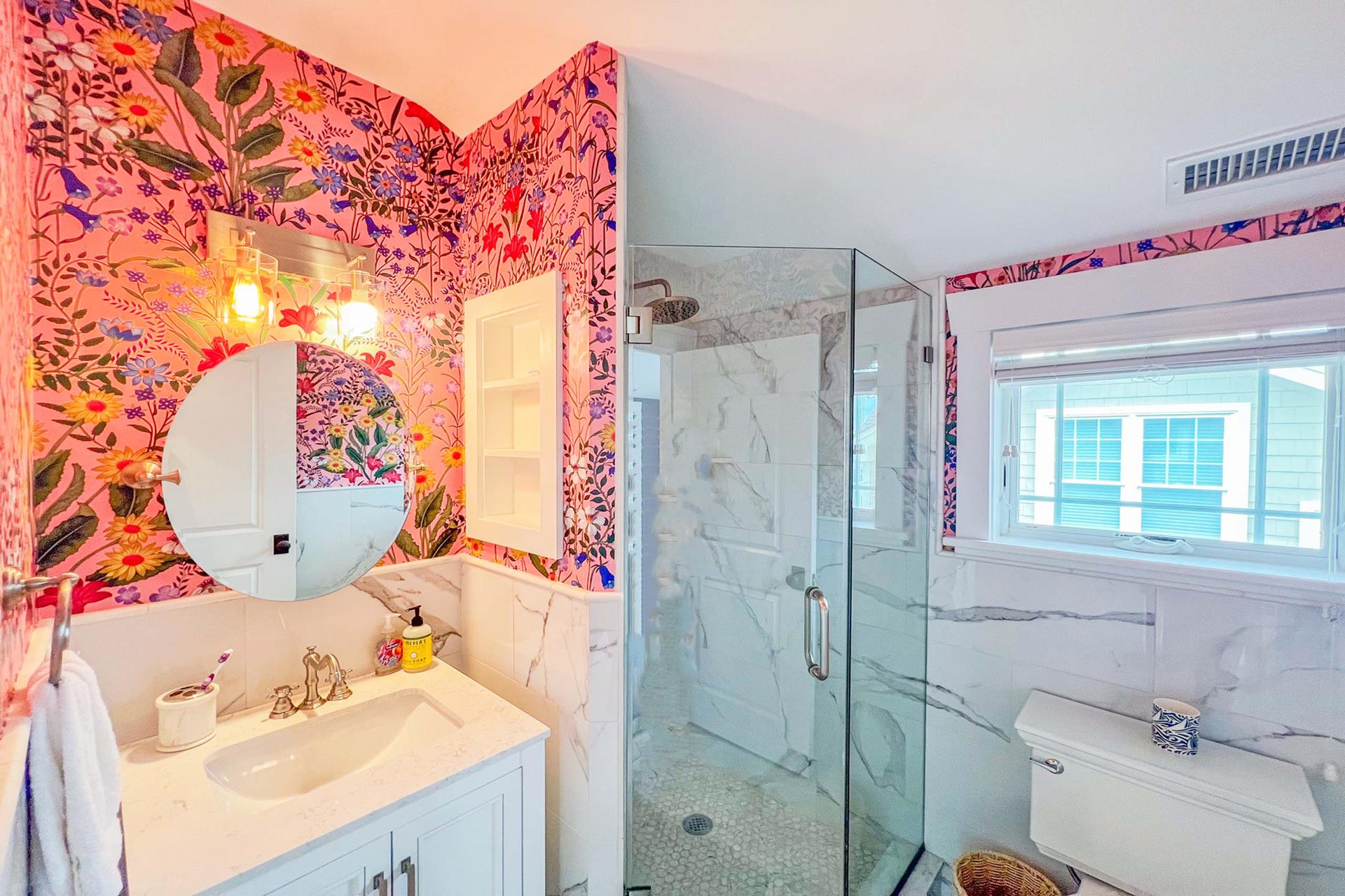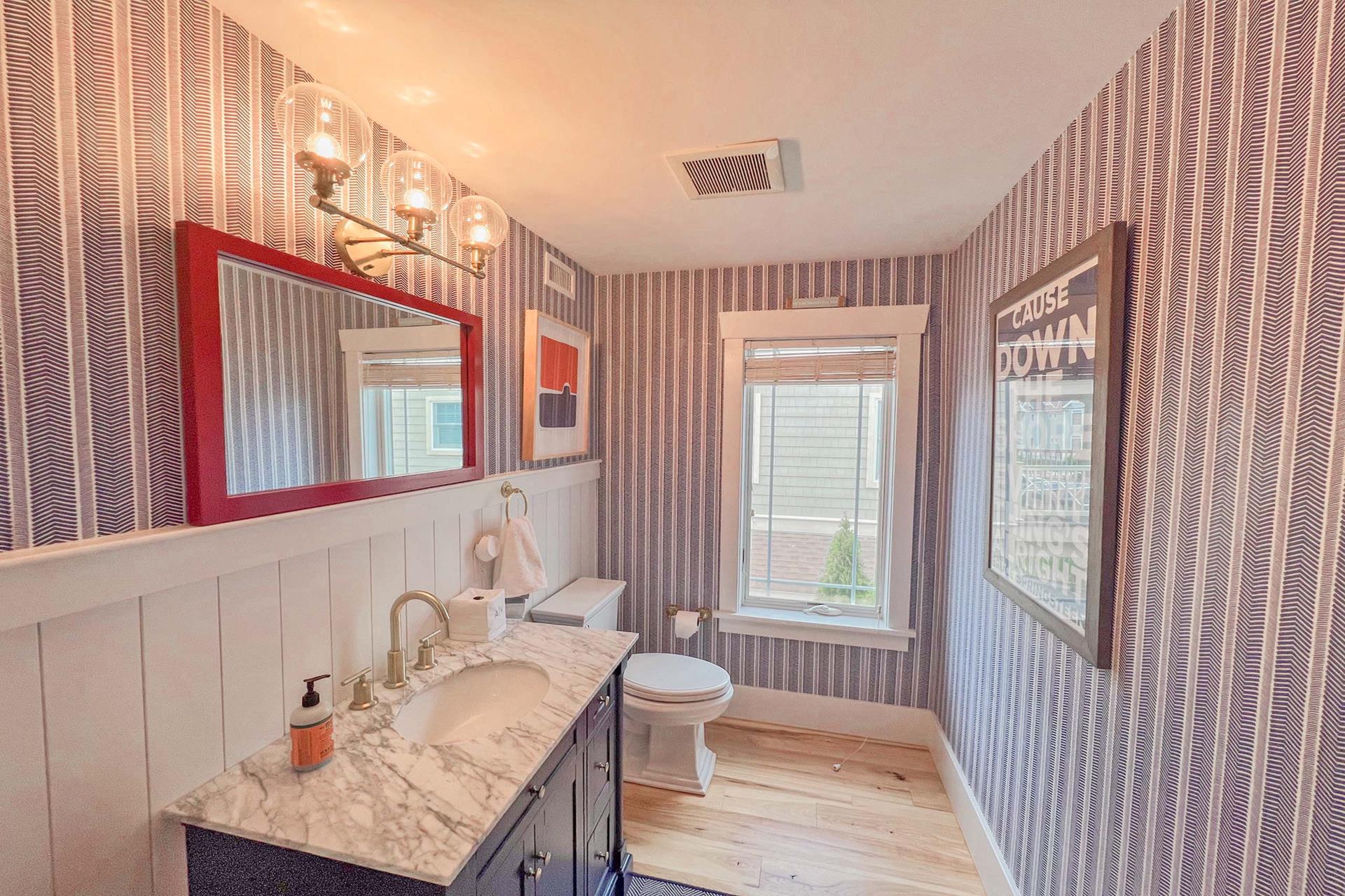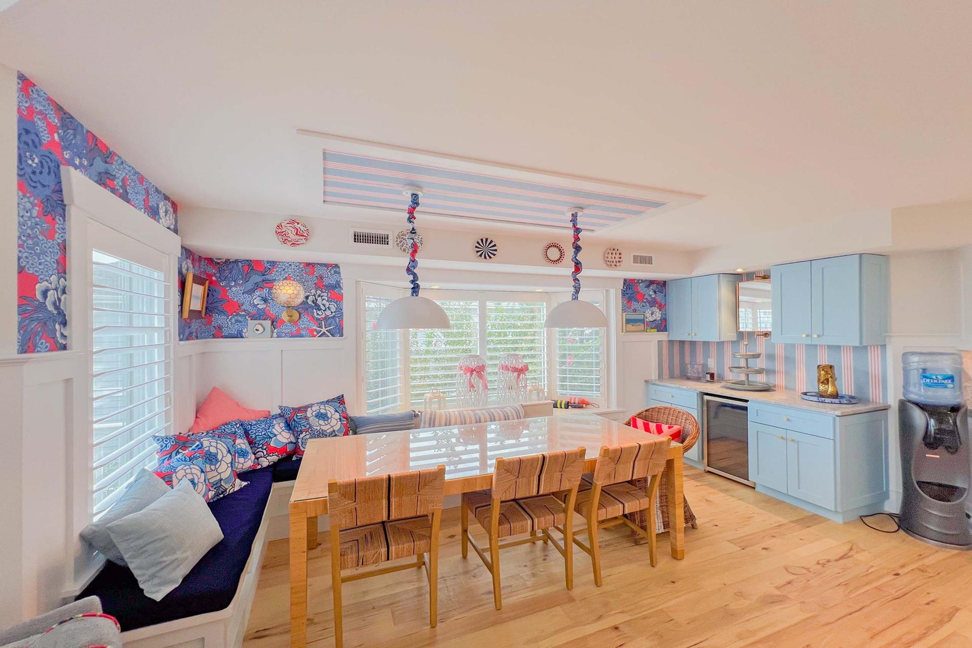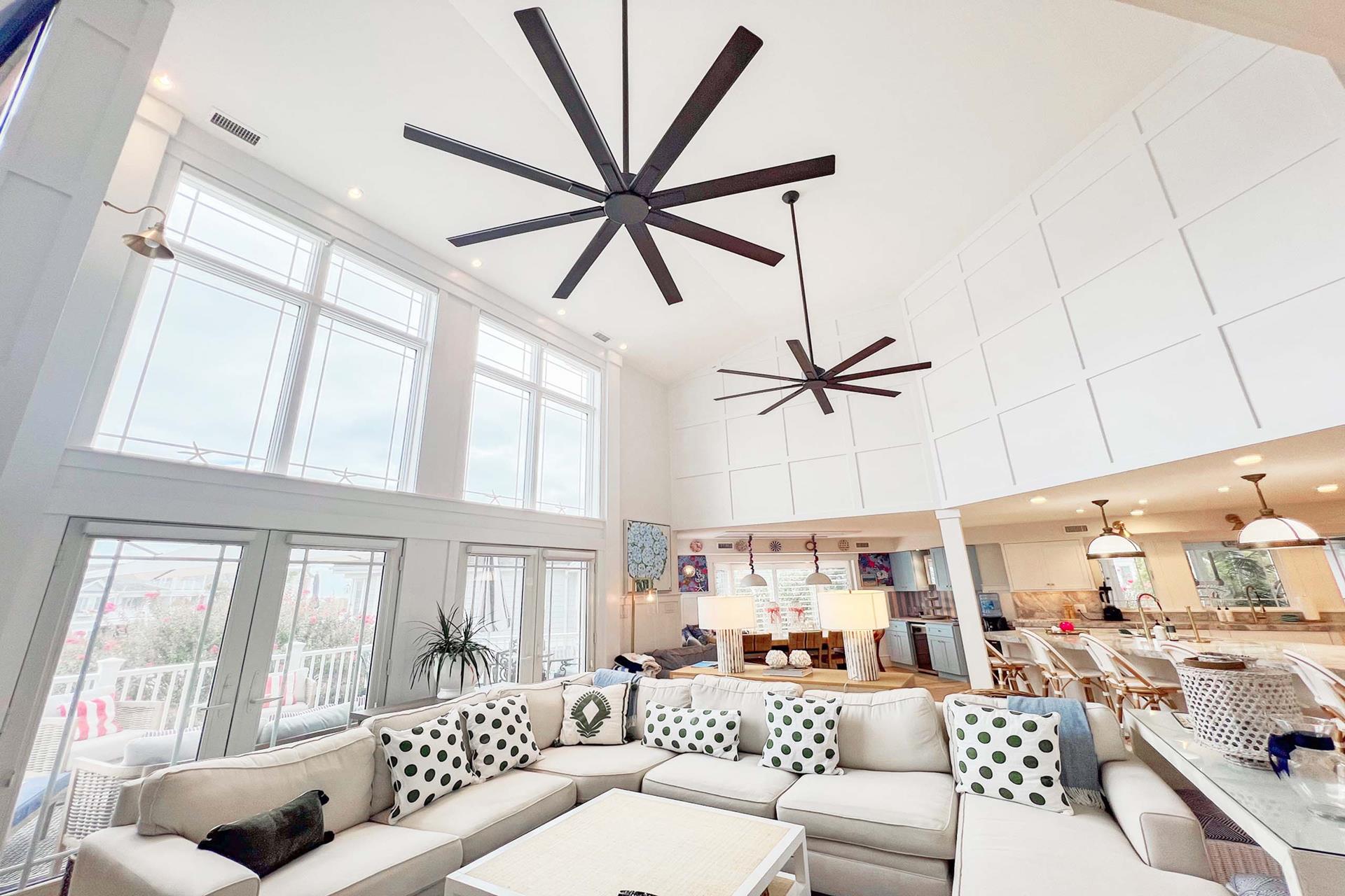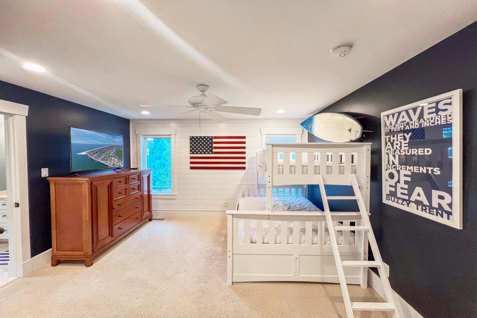 Sensational three story, beach block upside down home with ocean views. Second floor great room area features vaulted ceilings in the living area with ample sunlight and flat screen television, custom gourmet kitchen with stainless steel appliances comfortable dining area. The second floor hosts an office space/6th bedroom with king bed. The first floor has bedroom with a queen bed, a bedroom with bunk bed (twin over double) and a bedroom with another queen The third floor has master bedroom with king bed and twin day bed and second bedroom with king bed. Retreat to the rear yard with large inground swimming pool to relax and enjoy. Elevator available ($1,500 elevator security deposit) with access at the garage level. House has 6 bedrooms in total. 3 on the 1st floor, 1 on the 2nd behind the living room and 2 upstairs (master suite upstairs). All bathrooms have walk in showers with the en-suite bathrooms except one on the first floor has a tub and shower.!