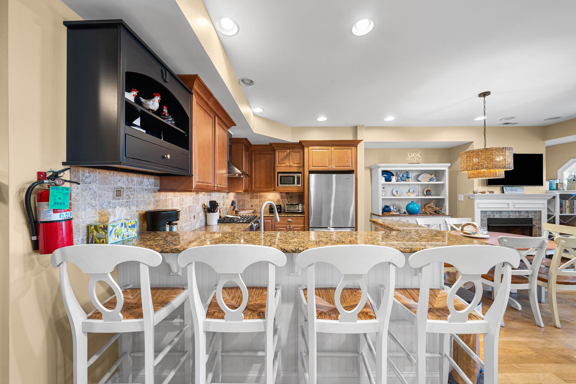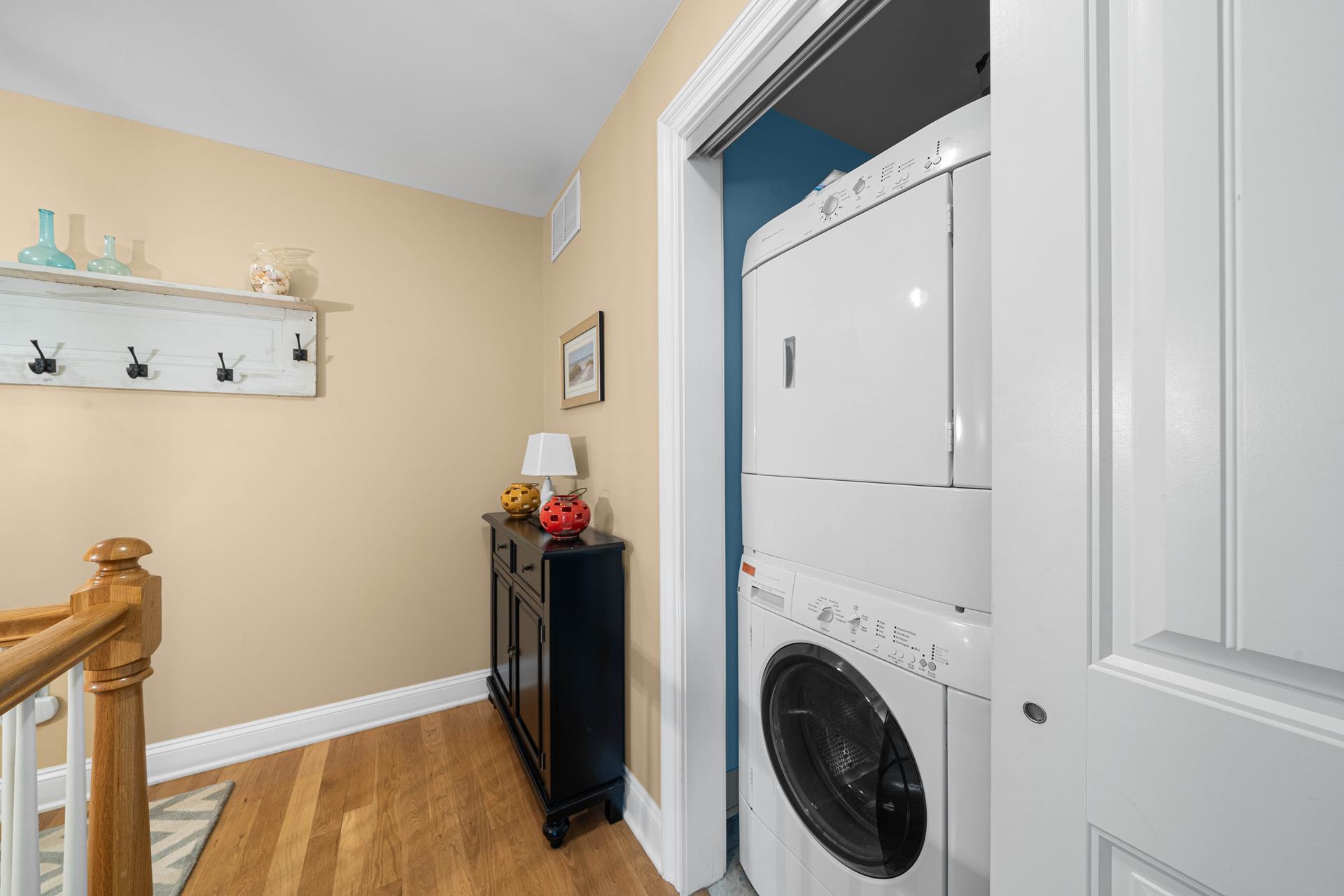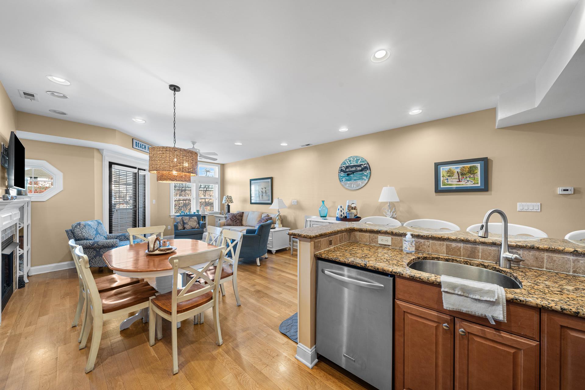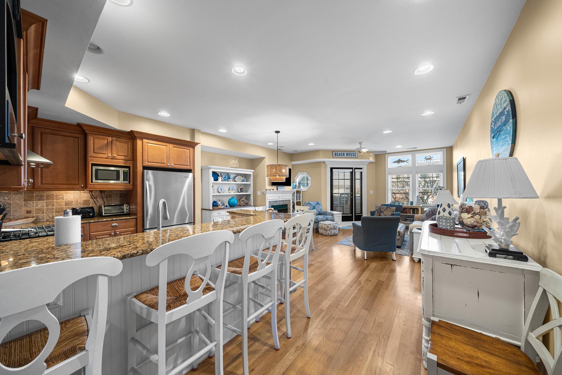 Popular Avalon Breezes townhome centrally located to town and the beach! The floor plan offers a nice, open kitchen/dining/living area, 3 generous size bedrooms (2 with private bathrooms) and two decks. The richly appointed interior features a custom paint palette, hardwood flooring, granite counters in the bathrooms, a beautiful custom kitchen featuring a two tiered granite counter and 4 stools, a tumbled marble backsplash, custom cabinetry and stainless steel appliances including a gas range with stainless steel hood. There is a ceiling fan in each bedroom and also in the living area. The master suite is exceptionally large and offers a private deck, a high ceiling and a jetted tub. The first floor of this unit offers one bedroom & a hall bathroom and the kitchen/dining/living area with a deck off the living area. The second floor offers 2 bedrooms, each with its own private bathroom. There is a stacked washer/dryer in the laundry closet. The exterior "common area" includes: off street parking for one car, a common outdoor shower, an elevator, and a stairwell that locks for security (push button security code). The Avalon Breezes Condominiums span from 20th Street to 21st Street. This unit is the 3rd unit from the 21st Street end. This unit s assigned (and numbered) storage area will be available for the tenant s use (for beach chair storage). This is the ideal park~n~walk location; only 3 blocks from the beach & boardwalk! ALL TV'S AT THIS LOCATION OFFER STREAMING SERVICE ONLY - NO CABLE.
