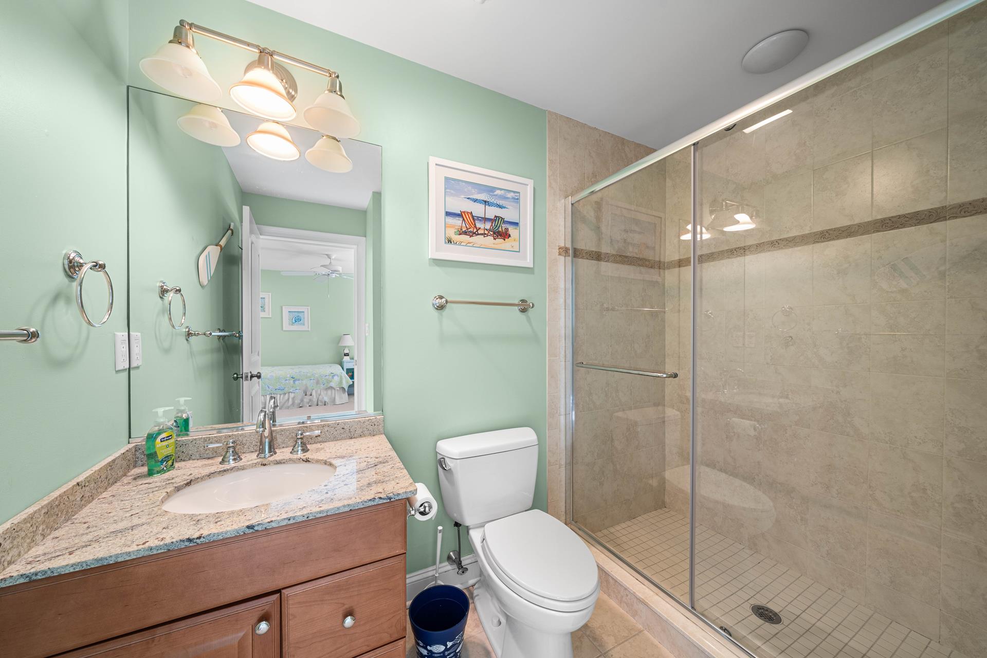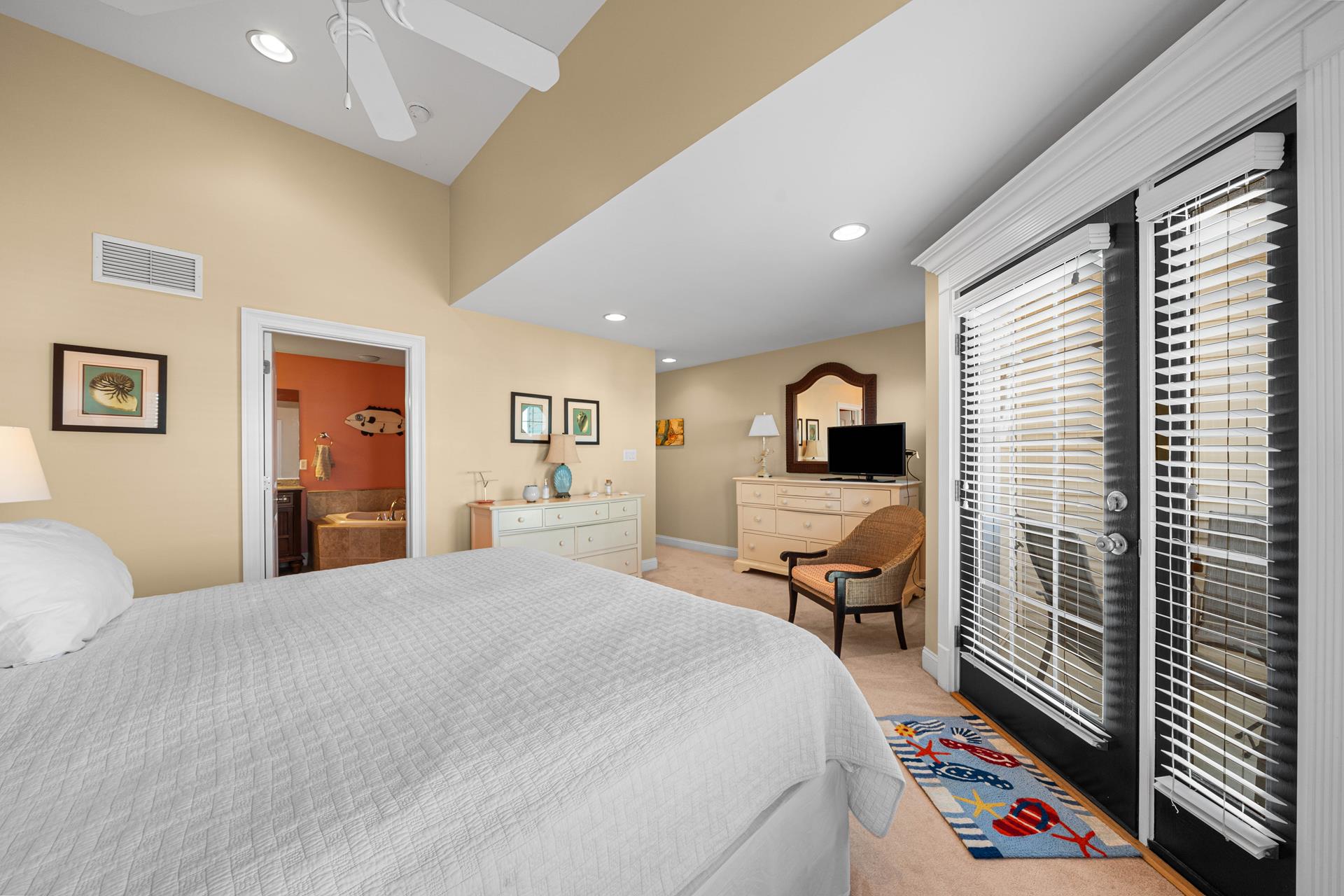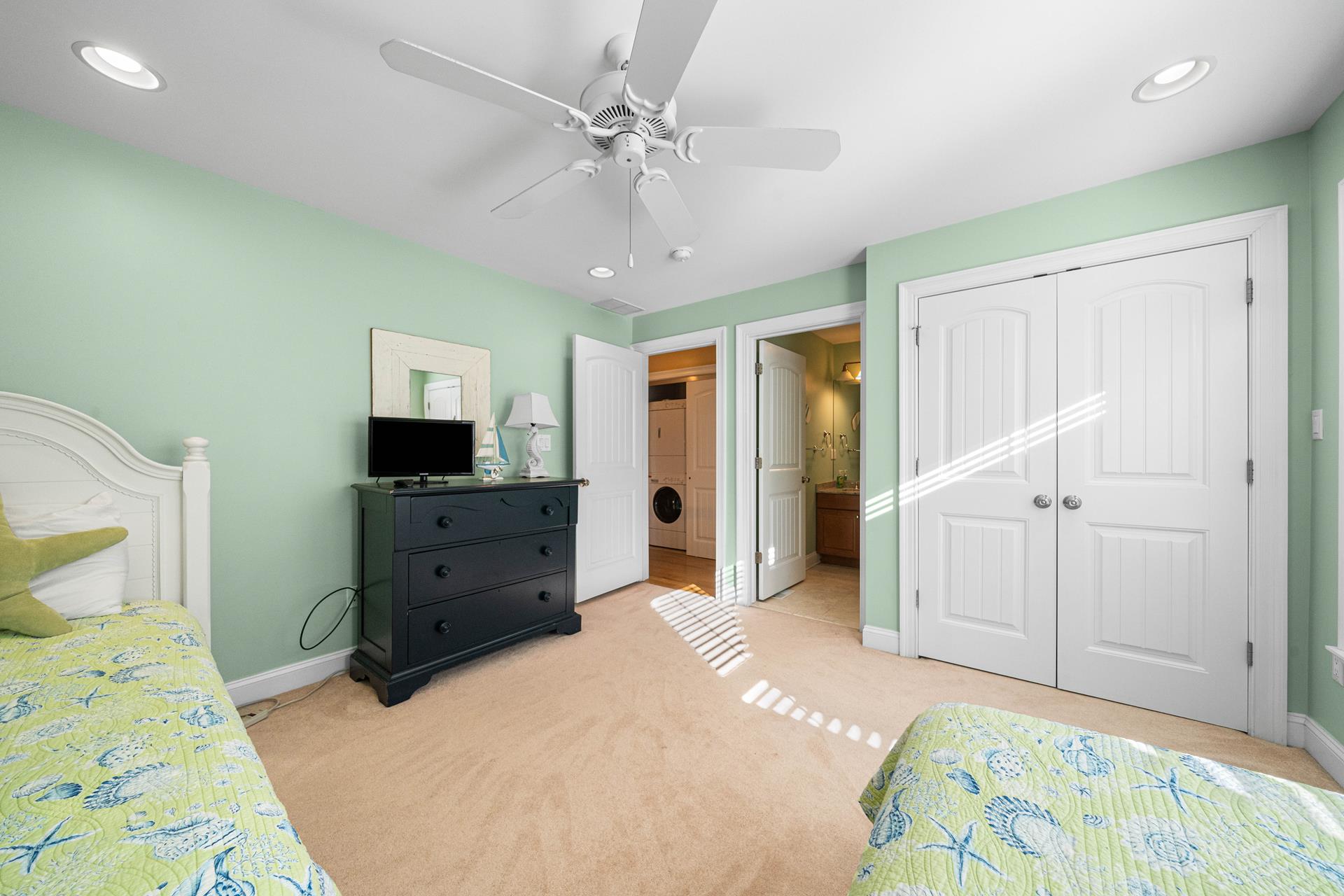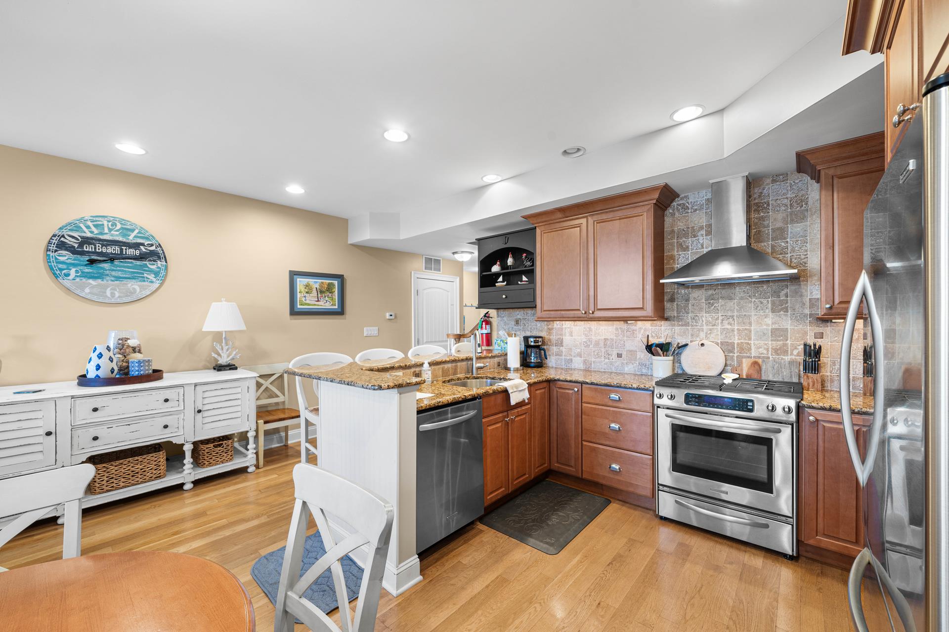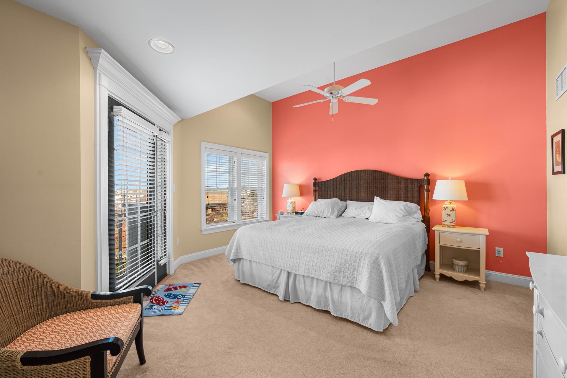 Popular Avalon Breezes townhome centrally located to town and the beach! The floor plan offers a nice, open kitchen/dining/living area, 3 generous size bedrooms (2 with private bathrooms) and two decks. The richly appointed interior features a custom paint palette, hardwood flooring, granite counters in the bathrooms, a beautiful custom kitchen featuring a two tiered granite counter and 4 stools, a tumbled marble backsplash, custom cabinetry and stainless steel appliances including a gas range with stainless steel hood. There is a ceiling fan in each bedroom and also in the living area. The master suite is exceptionally large and offers a private deck, a high ceiling and a jetted tub. The first floor of this unit offers one bedroom & a hall bathroom and the kitchen/dining/living area with a deck off the living area. The second floor offers 2 bedrooms, each with its own private bathroom. There is a stacked washer/dryer in the laundry closet. The exterior "common area" includes: off street parking for one car, a common outdoor shower, an elevator, and a stairwell that locks for security (push button security code). The Avalon Breezes Condominiums span from 20th Street to 21st Street. This unit is the 3rd unit from the 21st Street end. This unit s assigned (and numbered) storage area will be available for the tenant s use (for beach chair storage). This is the ideal park~n~walk location; only 3 blocks from the beach & boardwalk! ALL TV'S AT THIS LOCATION OFFER STREAMING SERVICE ONLY - NO CABLE.