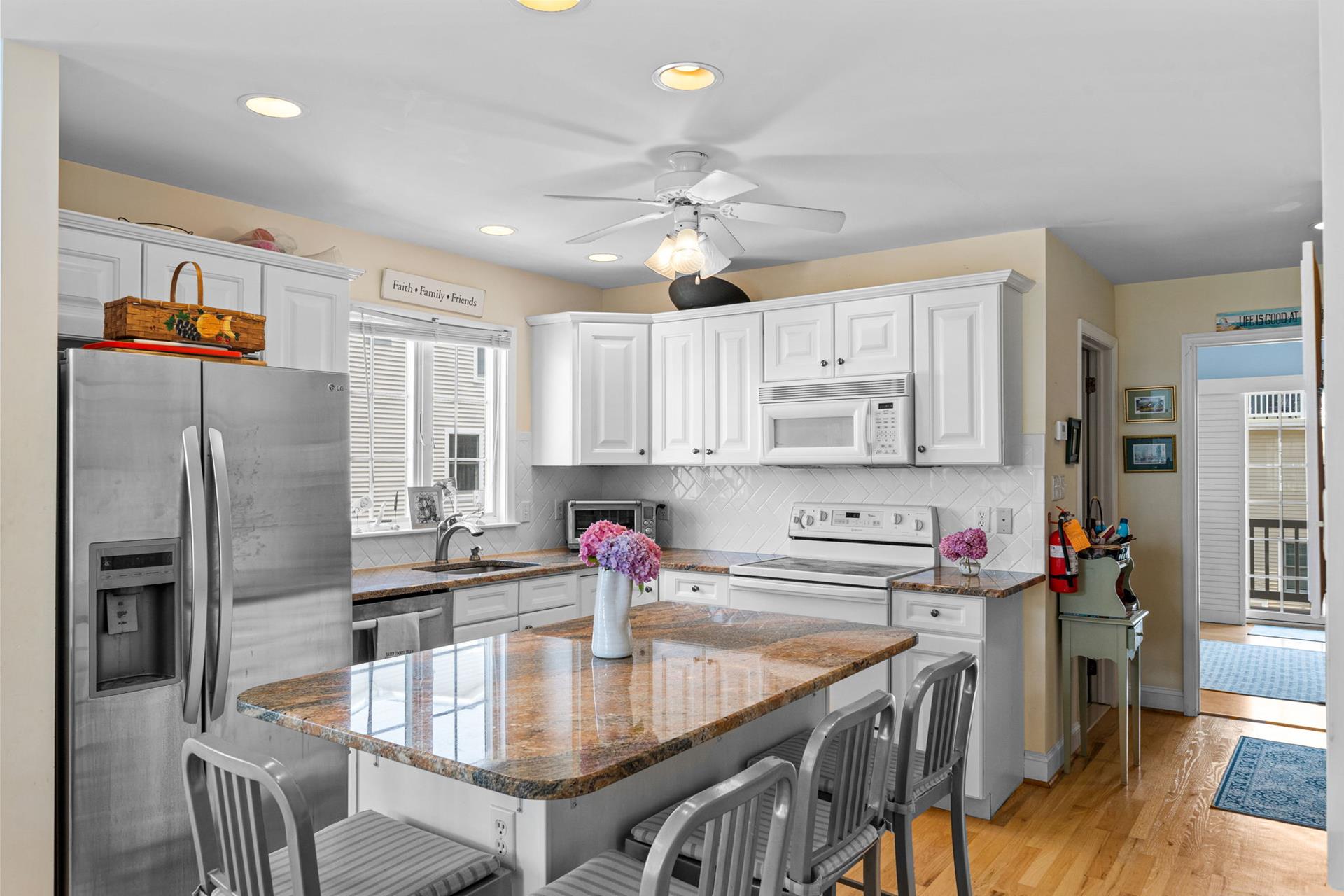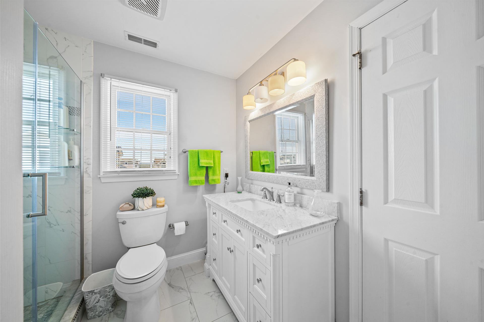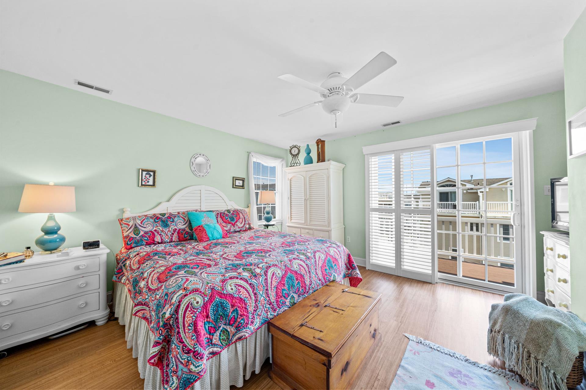 Beautiful Sunsets are yours when you rent this 5 bedroom 3 bath townhome. Comfortable and cozy the first floor offers one bedroom with a trundle, hall bath and a rear bedroom with a king and sliders to a private deck. The second floor opens up to a beautiful great room with cathedral ceiling, gas fireplace, spacious dining and lounging area. Plantations shutters cover the sliders leading to the front deck where you will enjoy an evening barbecue as you sip your cocktails and watch the sun set. Also on this floor you will find a hall bath and a rear bedroom with a queen bed and a private deck. The third floor completes this winning package with a set of twins in the front bedroom, hall bath and a rear bedroom with a king and a private deck. Enjoy the outside shower, off street parking, and central location. Call today and reserve your perfect seashore rental. This property does not have traditional cable and uses streaming services.