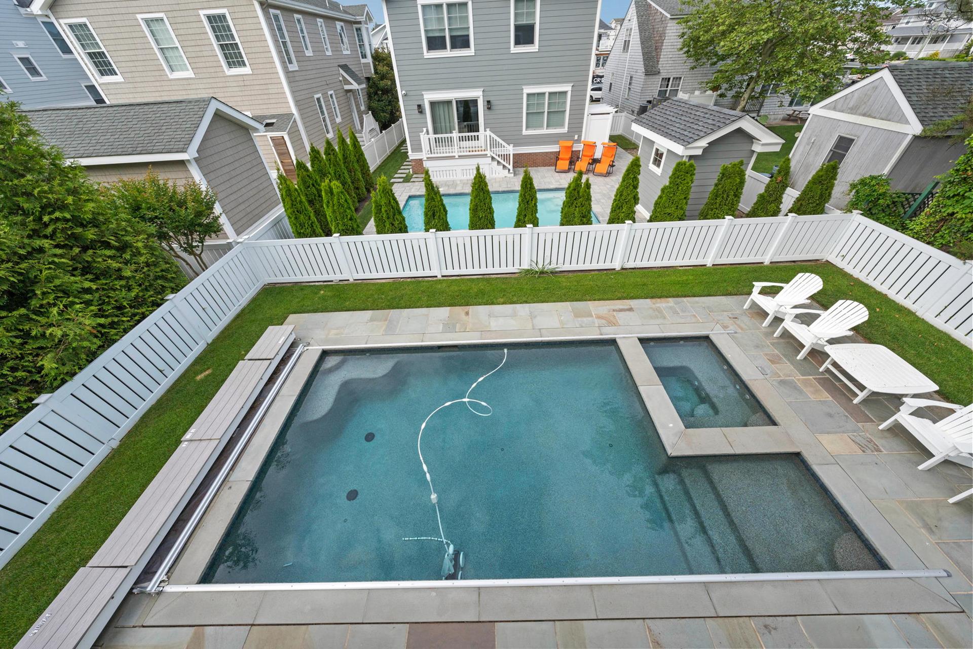 Exceptionally well maintained home custom built in 2006 meticulously fresh and up to date. Quality upgrades at time of construction enhanced the practical needs of large family use. A total of 5 spacious bedrooms, and 5 full baths. 1st floor: family room with wet bar and refrigerator, and access to the covered porch. A salt water heated pool (with hot tub) was added in 2012 by Avalon Pools and blue stone surround and fenced in rear yard.Saltwater pool and spa are heated. Convenient rear yard/pool access from the side utility room door (outside shower is also nearby). In the 2nd floor great room, a HUGE granite top center island is ideal for entertaining. Upgraded appliances complete this space. Spacious dining area (and architectural windows). Living room allows ample seating for guests. French doors to the sunny front deck (5 decks/porches total). Gas fireplace with marble surround. 3rd floor master suite with double vanity, an oversized shower (seamless glass door) and private sun deck. 1 car garage, and paver driveway. Seashore elegant, and tastefully furnished (including electronics, deck/pool furniture, beach chairs, kitchen ware, and window treatments). Ready to relax and enjoy.
