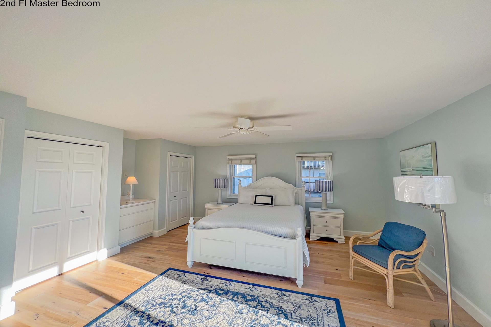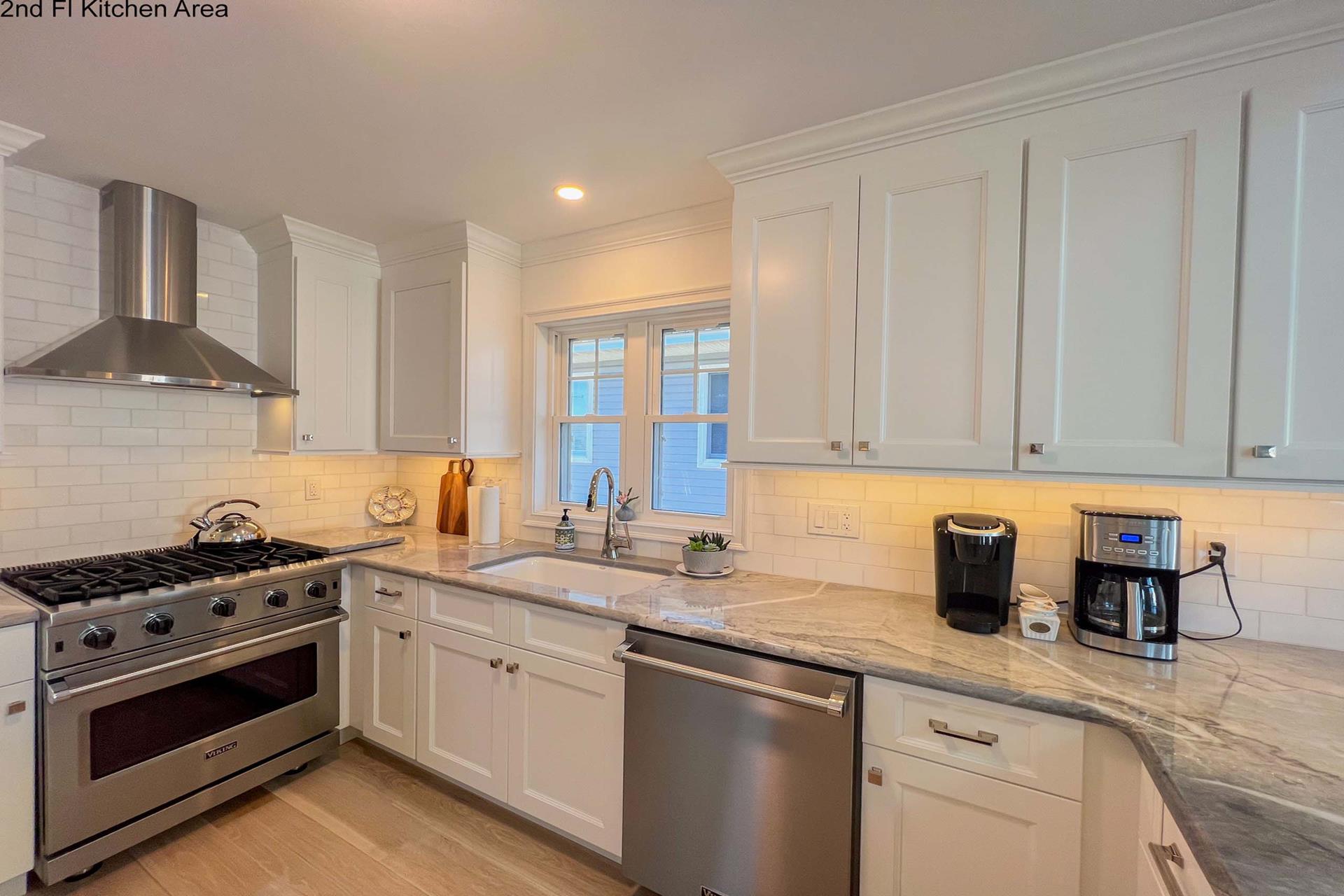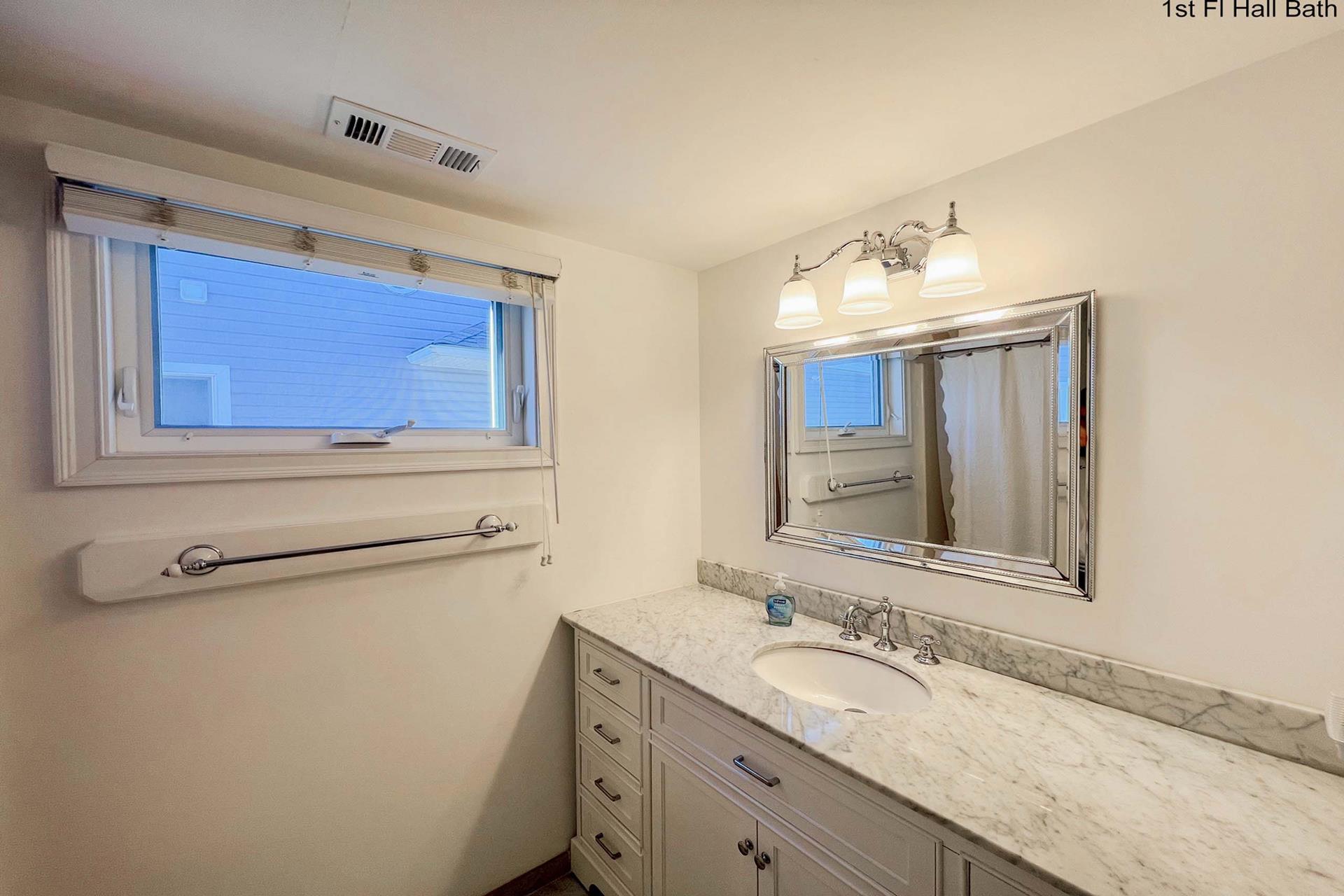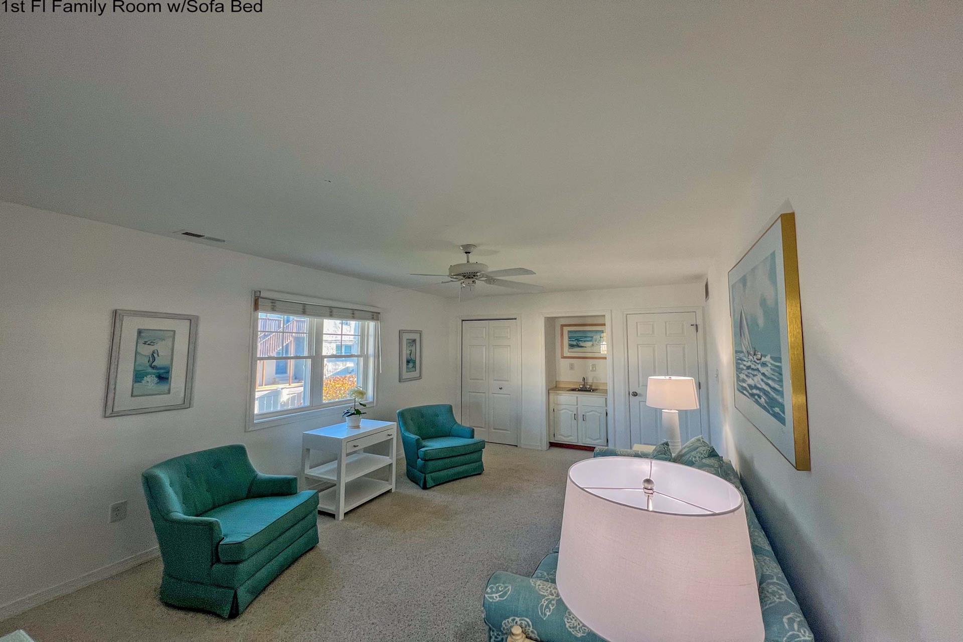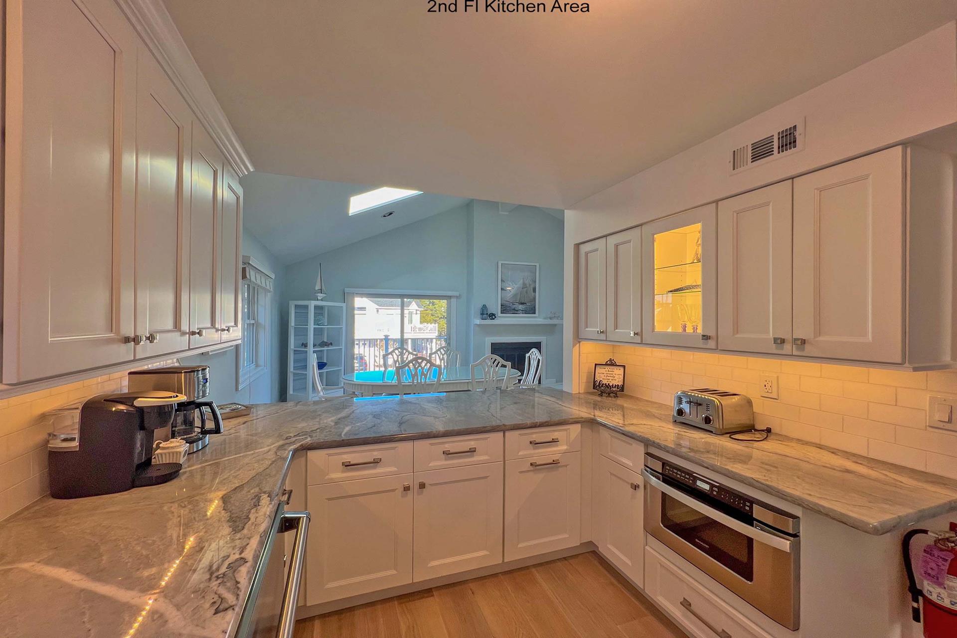 One short block to Avalon s beaches and within minutes from town and boardwalk. This 4 bedroom, 2.5 bath home has all the amenities and charm needed for a relaxing vacation...ocean views, front and rear decks! Enter the first floor foyer and directly ahead is the utility room. To the left you will find the Southeast bedroom which has twin beds. The Southwest bedroom has a queen sized bed. To the North side of the first floor you will find the family room with queen sofa bed, TV, ceiling fan and sink. On the Northwest side is a bedroom with 2 twin beds. There is also a full bath (tub/shower) in the hallway. As you go up the stairs to the 2nd floor you will find the living room which has a ceiling fan and slider to deck which provides ocean views. Second floor deck has natural gas grill. There is also a dining area with table to seat 6 and a fully equipped kitchen. As you move to the South side of the 2nd floor there is a half bath (tub/shower) in the hall. The master bedroom is located on the Southeast side of the house. This room has a full bath, ceiling fan and slider to rear deck.