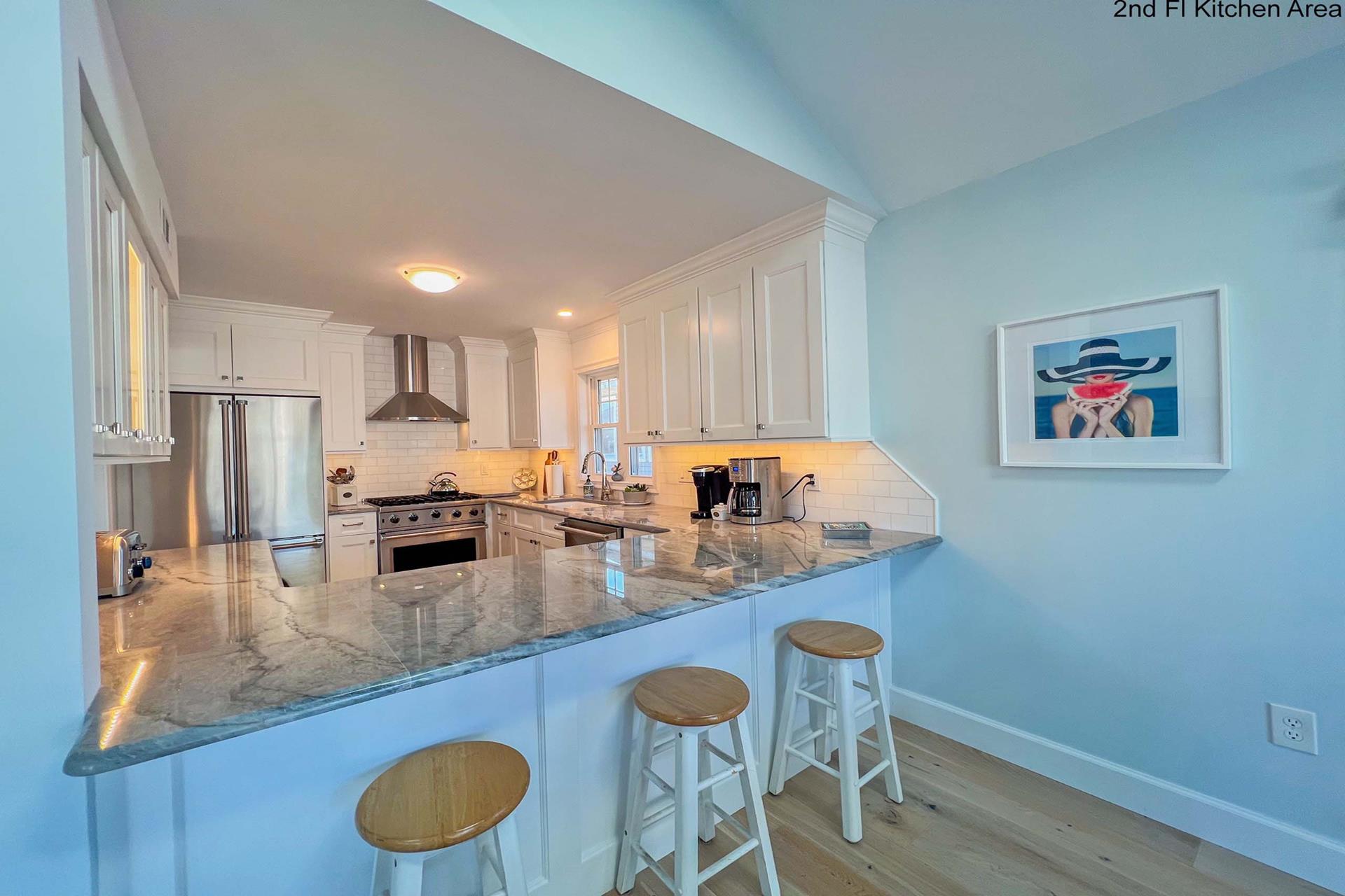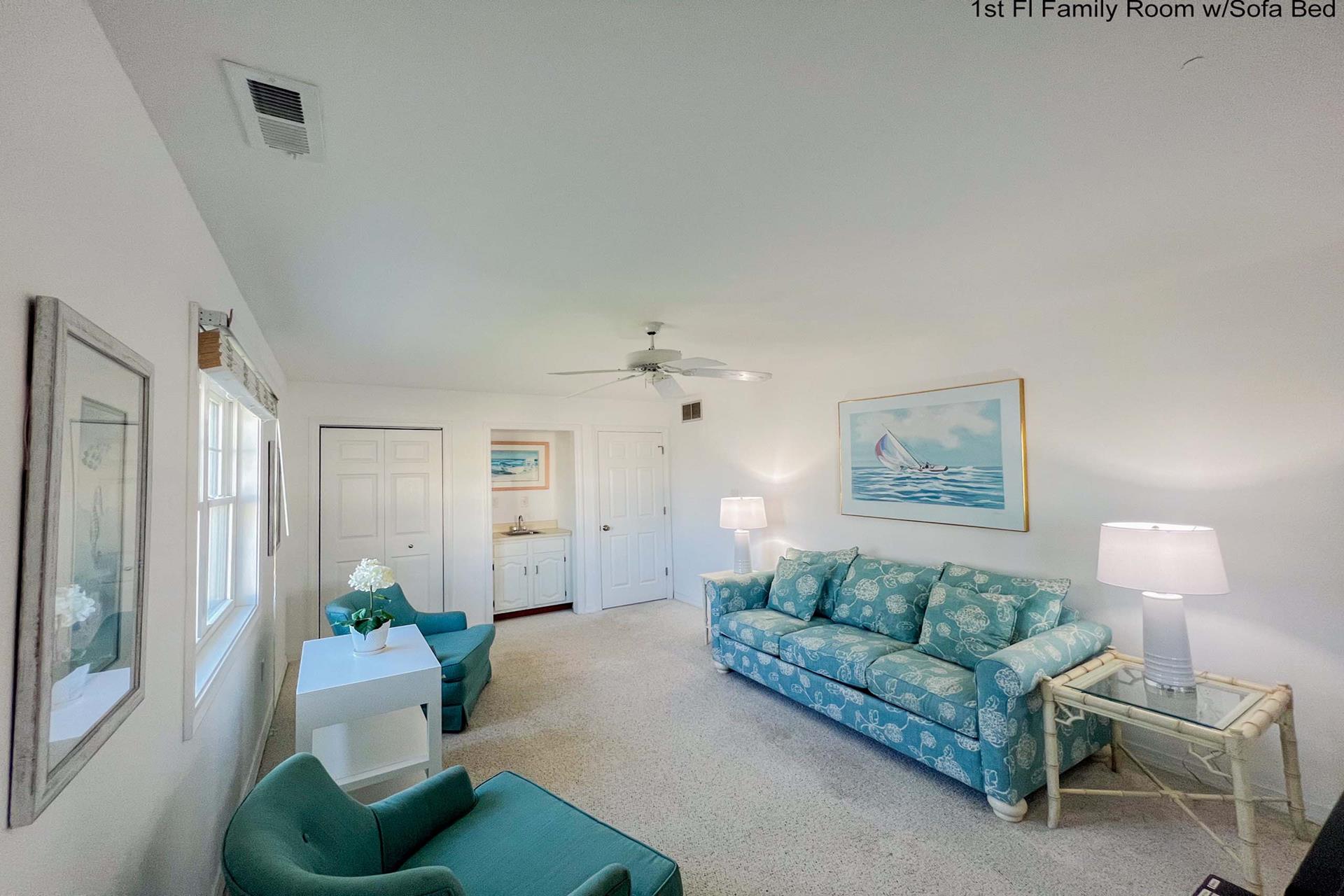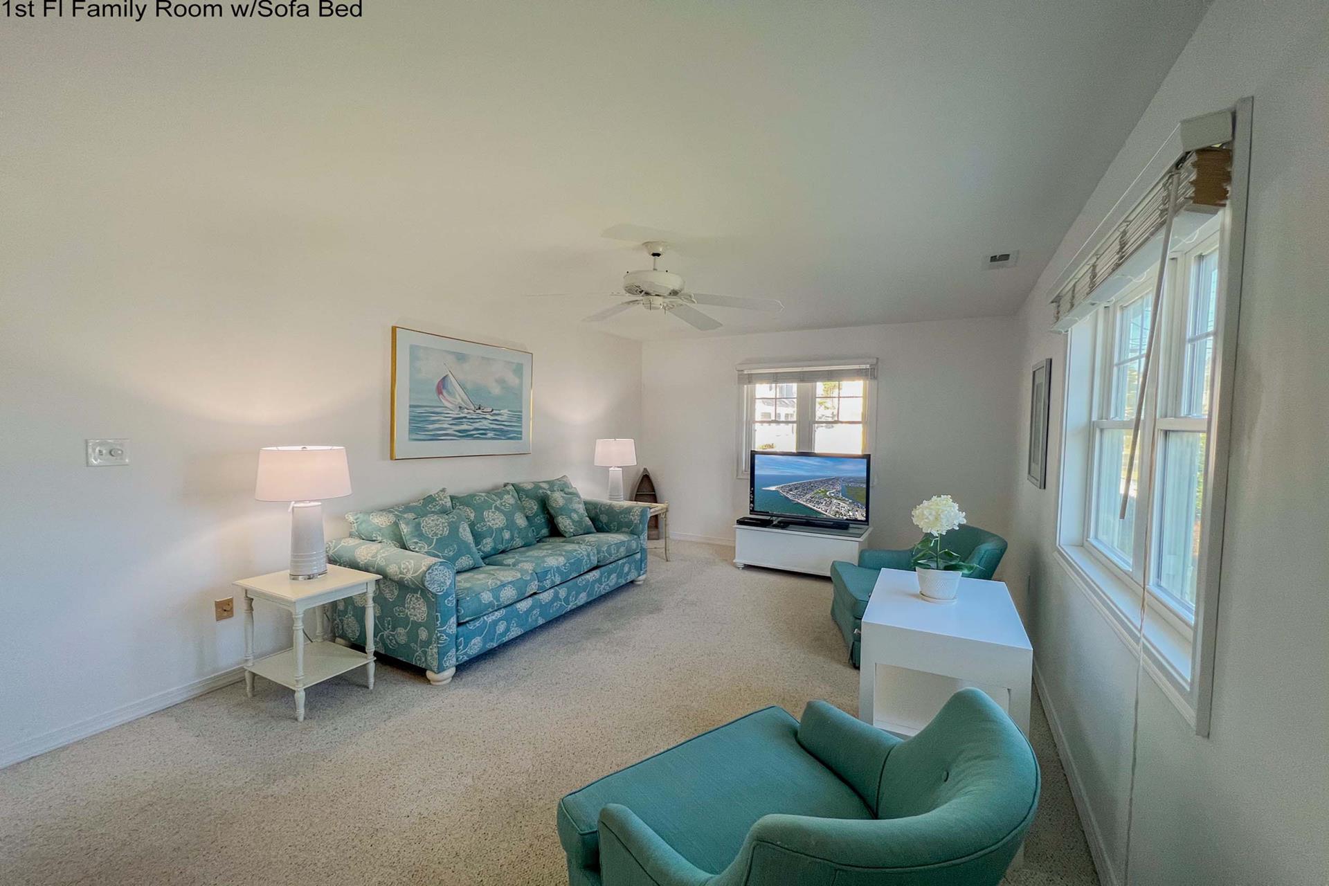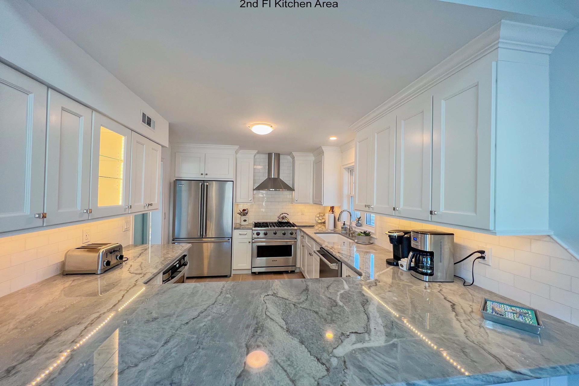 One short block to Avalon s beaches and within minutes from town and boardwalk. This 4 bedroom, 2.5 bath home has all the amenities and charm needed for a relaxing vacation...ocean views, front and rear decks! Enter the first floor foyer and directly ahead is the utility room. To the left you will find the Southeast bedroom which has twin beds. The Southwest bedroom has a queen sized bed. To the North side of the first floor you will find the family room with queen sofa bed, TV, ceiling fan and sink. On the Northwest side is a bedroom with 2 twin beds. There is also a full bath (tub/shower) in the hallway. As you go up the stairs to the 2nd floor you will find the living room which has a ceiling fan and slider to deck which provides ocean views. Second floor deck has natural gas grill. There is also a dining area with table to seat 6 and a fully equipped kitchen. As you move to the South side of the 2nd floor there is a half bath (tub/shower) in the hall. The master bedroom is located on the Southeast side of the house. This room has a full bath, ceiling fan and slider to rear deck.