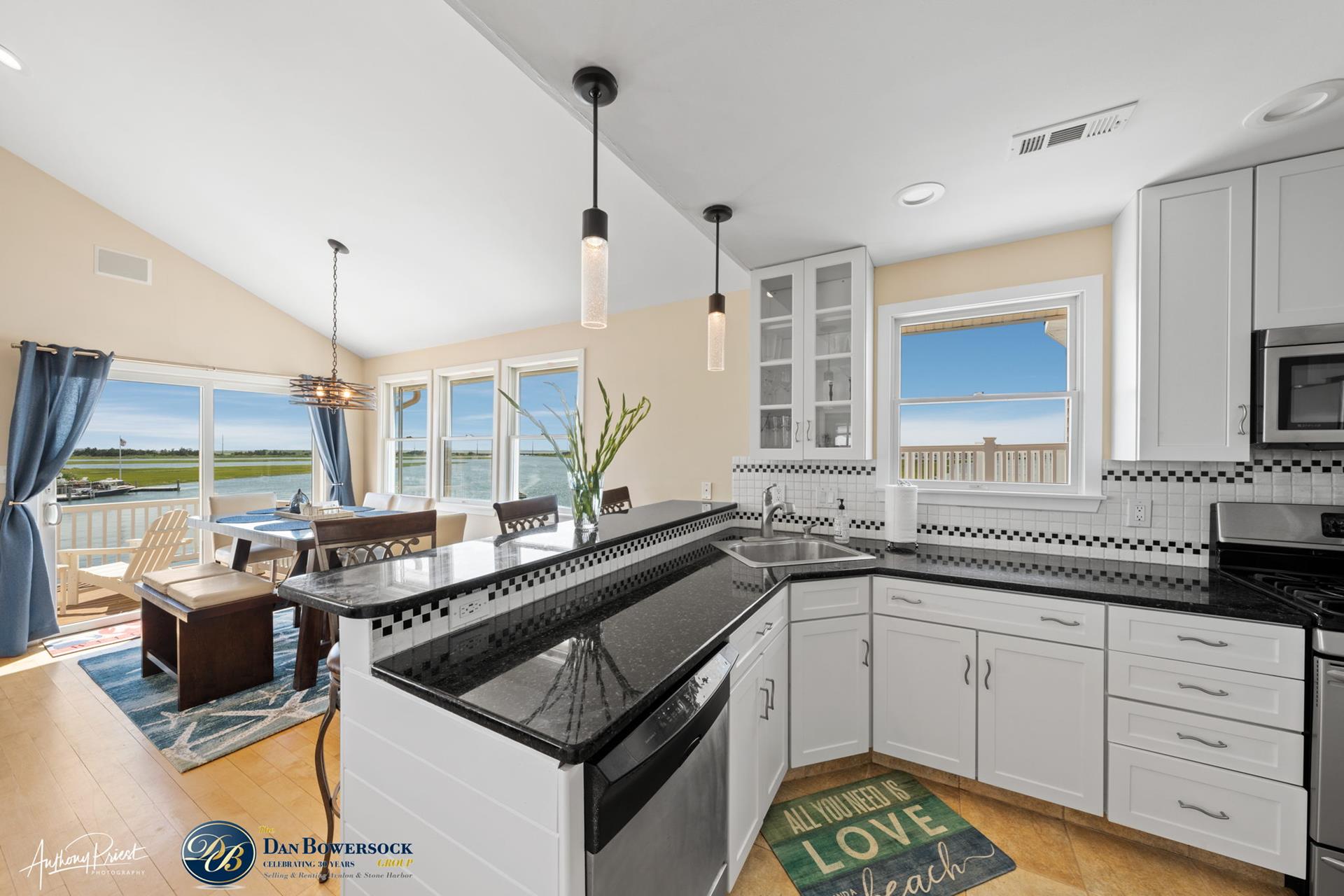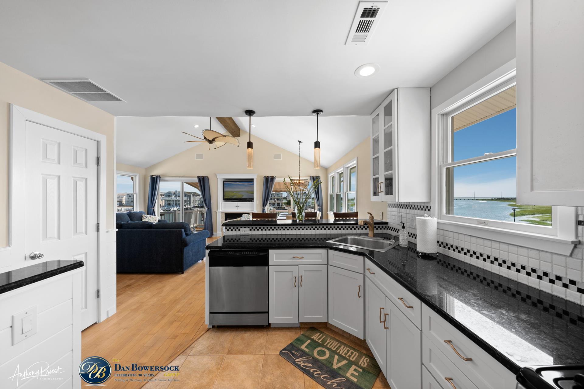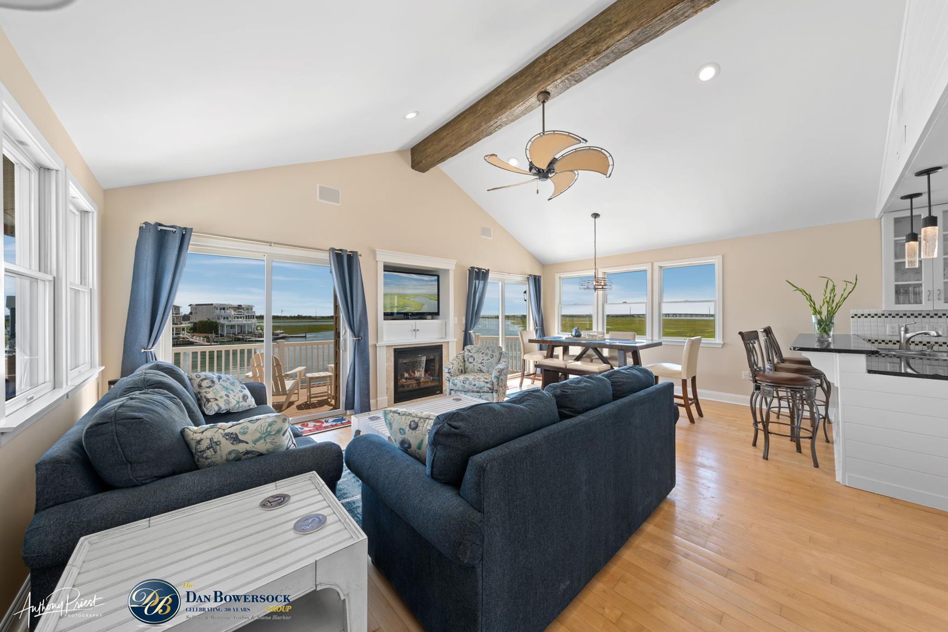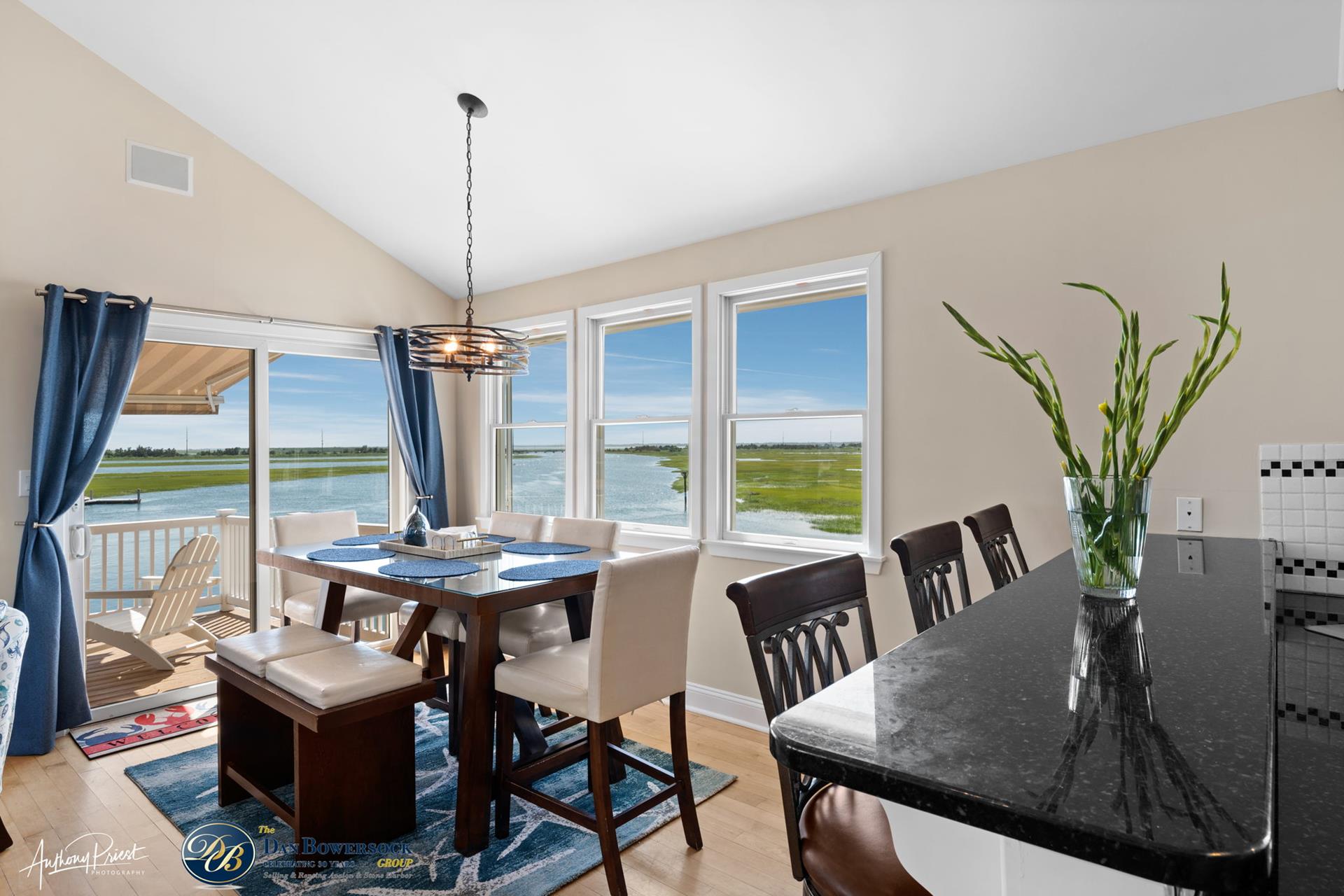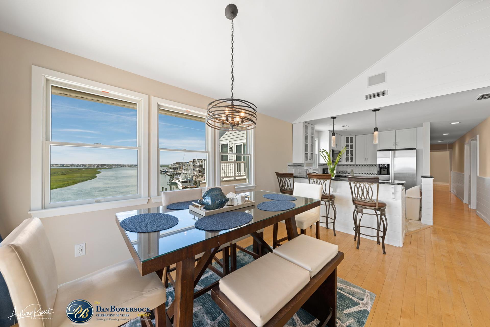 THIS SPECTACULAR, REFURBISHED BAY FRONT condominium will surely be your "Happy Place", and you won't want your vacation to end! This is the top floor unit of a duplex, so you have no one above you! The amazing location offers Southern exposure, refreshing breezes, panoramic views of the bay & wetlands and a sunset to end each day! As shown on the drone photography, this property protrudes out further into the bay than others, and when combined with the extensive use of glass, you'll experience views as far as the eye can see! And being perched on the edge of Princeton Harbor, the Bayfront activity in this area enhances the nautical ambiance as you relax & enjoy the mesmerizing setting! The floating dock is shared with the unit below, and you may use the floating dock for swimming, fishing, launching your paddleboard, and to access the wave runner dock, which is included with the rental! Additional Highlights include: a huge bayside deck with a retractable awning, a wide-open floor plan with a cathedral ceiling above the Living & Dining Areas and also above the huge Master Bedroom, hardwood flooring throughout, granite counters, a shared rear yard, off street parking for one vehicle and of course the fresh, refurbished interior! The extensive refurbishing is complete and includes: a freshly painted interior, new furniture, a new TV in the Living Area, a new clothes washer/dryer, and new outdoor furniture! Contact us today to book your vacation!