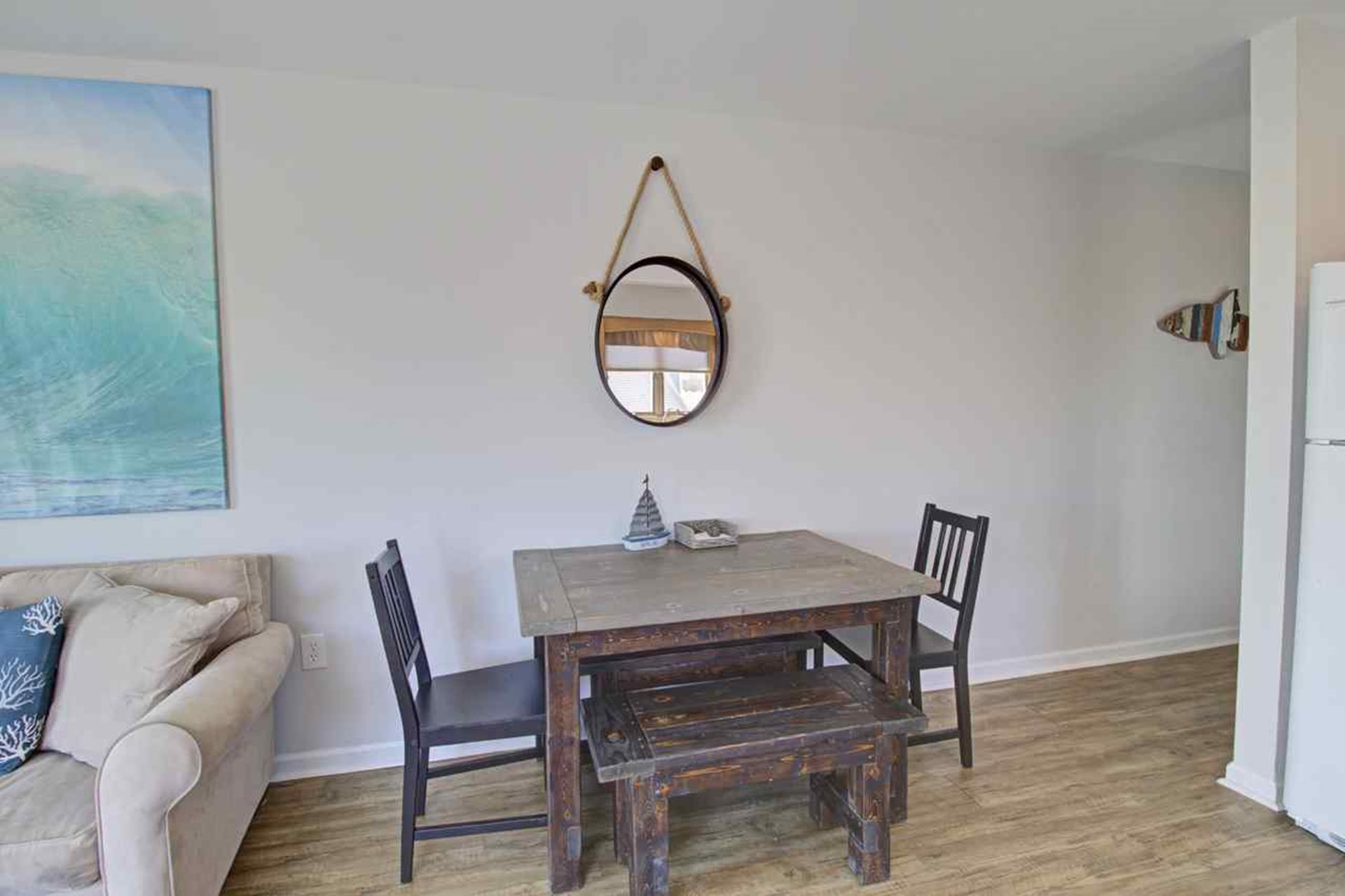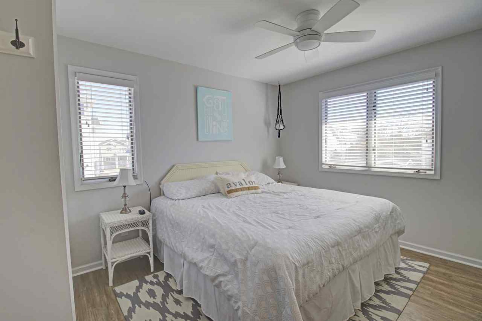 Two story townhome located in the north-end of Avalon offering a sun deck providing a peak of the bay and overlooking the Park that offers a playground, tennis courts, basketball courts, baseball and soccer fields. The 2nd floor features living, dining and kitchen areas, Master Bedroom with King bed and 1 bath. The first floor offers 2 guest bedrooms one having a Queen and the other with two bunk beds. There is a full hall bath and a laundry closet. Owner provides sheets and towels for your convenience!