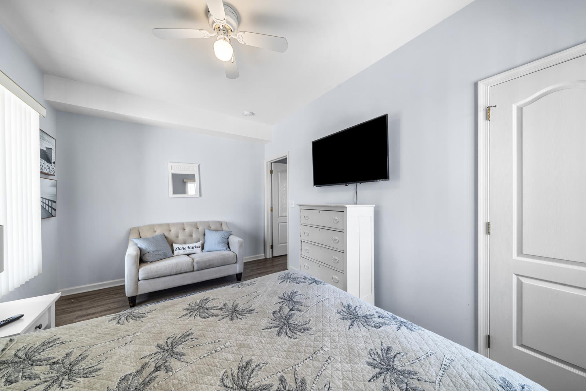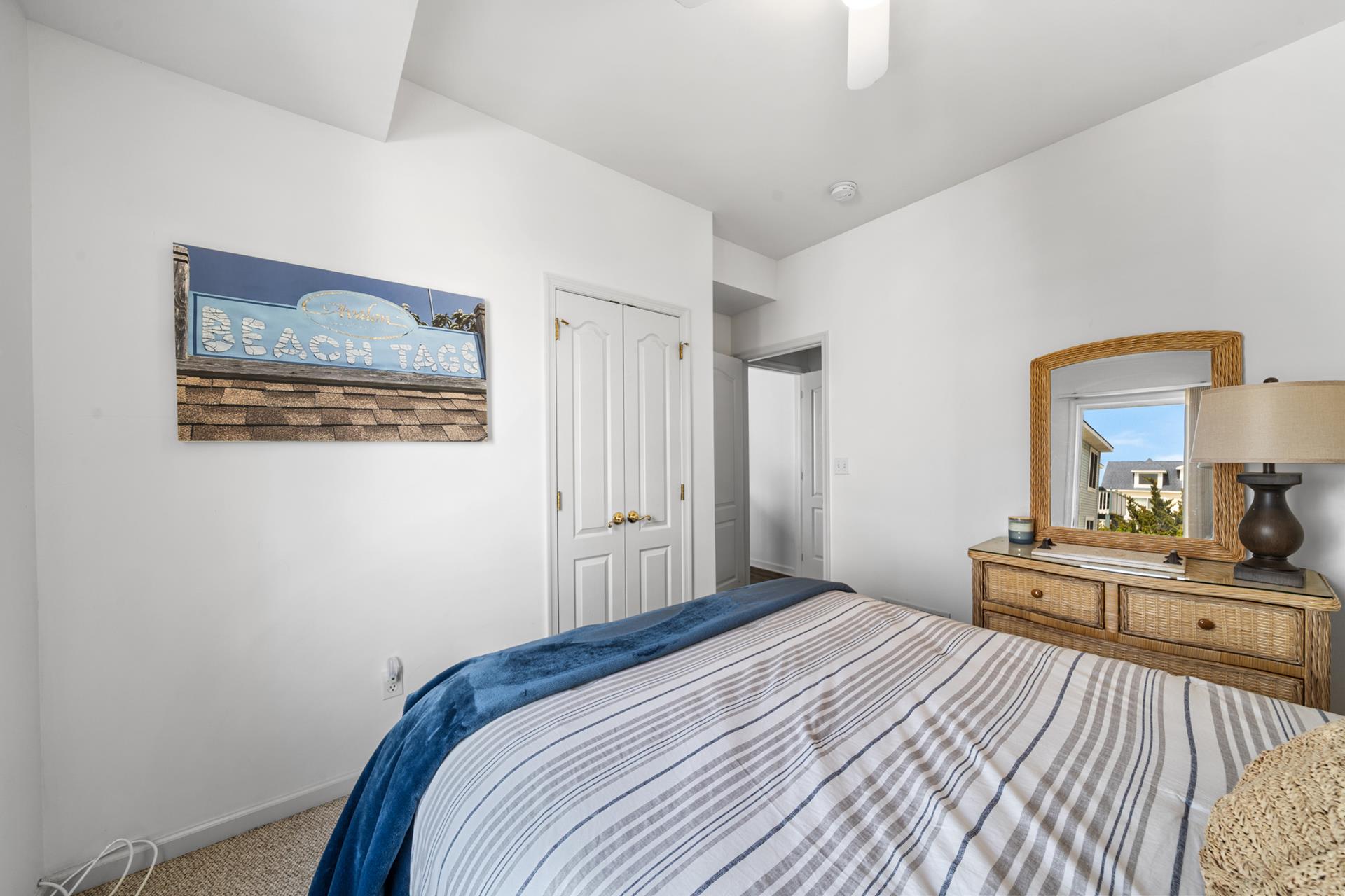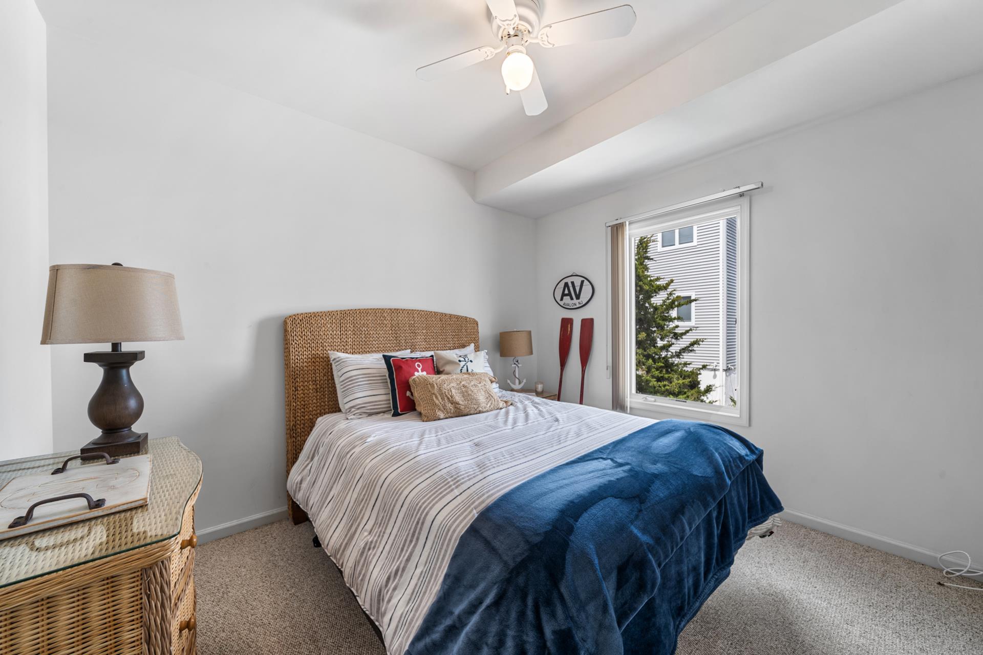 This 4 bedroom 2 bath townhome has just had a new facelift. Painted throughout with a neutral palette and complimented with engineered flooring the home has a completely updated feeling and appearance. The great room and master bedroom share the third floor with a spacious deck off the great room offering some bay views across the street. The vaulted ceiling throughout the third floor bring lots of additional light into the rooms. The second floor offers two additional bedrooms one ensuite shared bath and a third bedroom. An excellent vacation rental. This is a great family rental, plenty of space for the kids as well as the adults ! You can all enjoy sitting on the deck and enjoying a bay breeze ! You will not be sorry you rented this very clean and well maintained townhome !