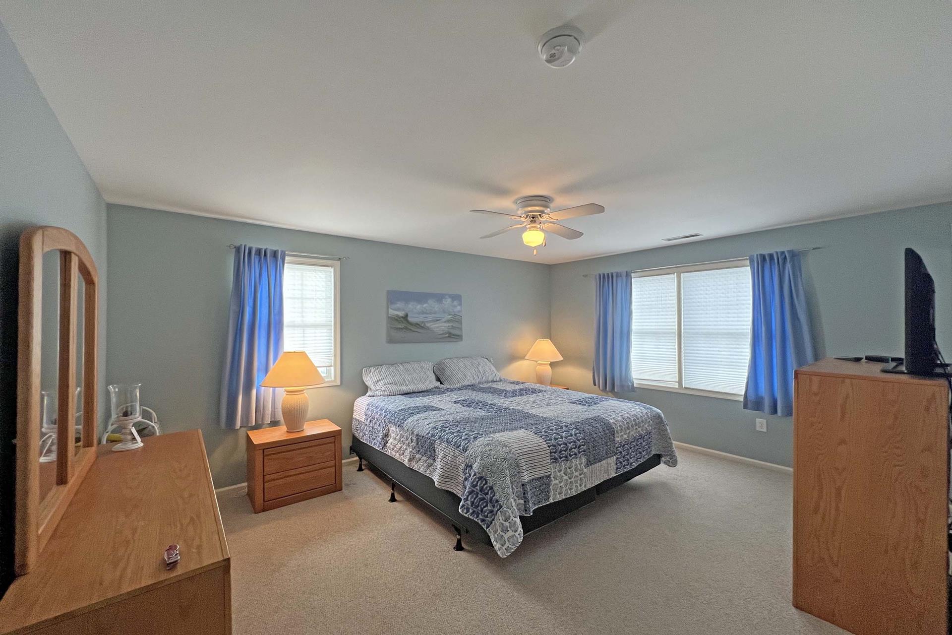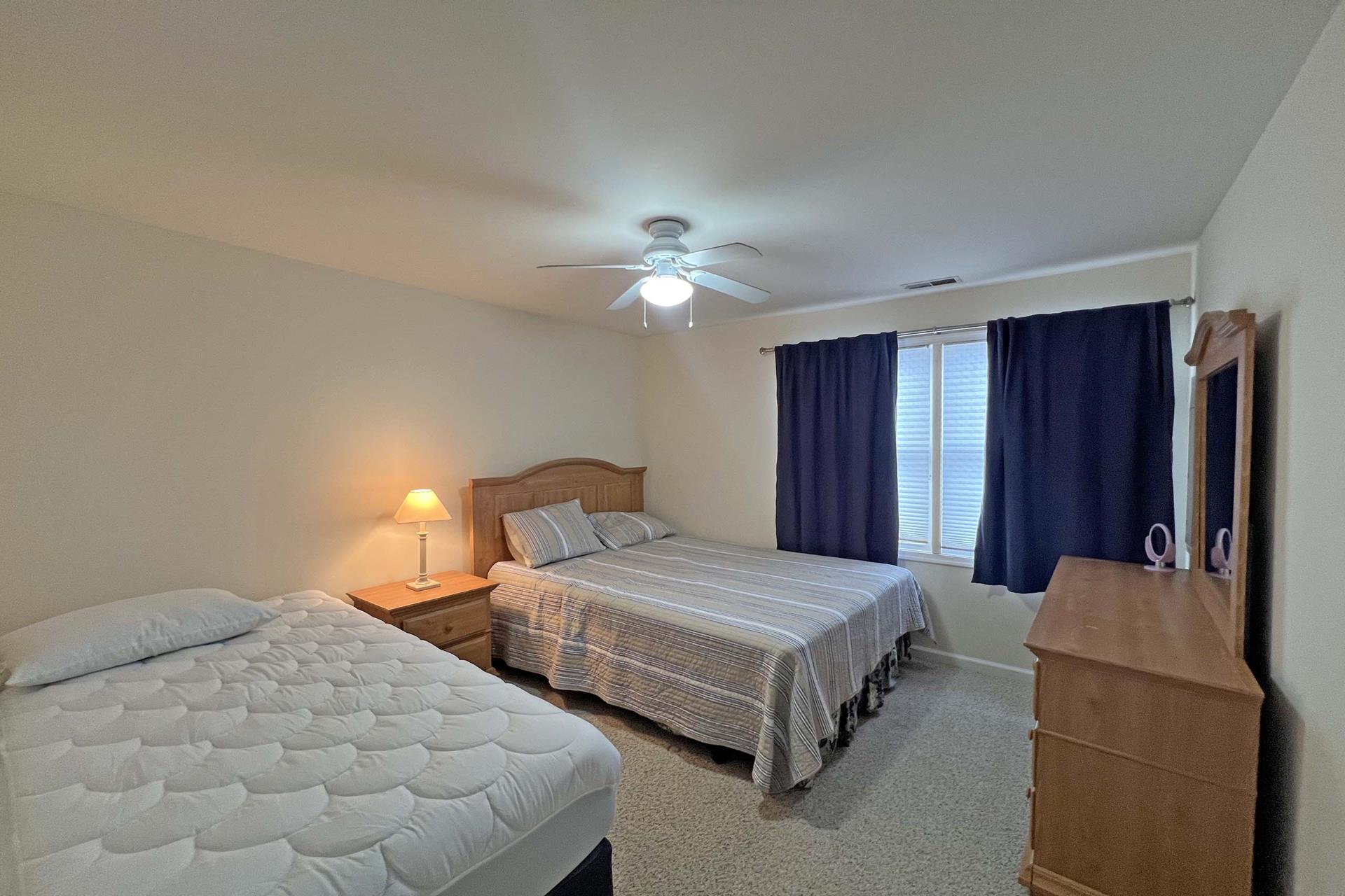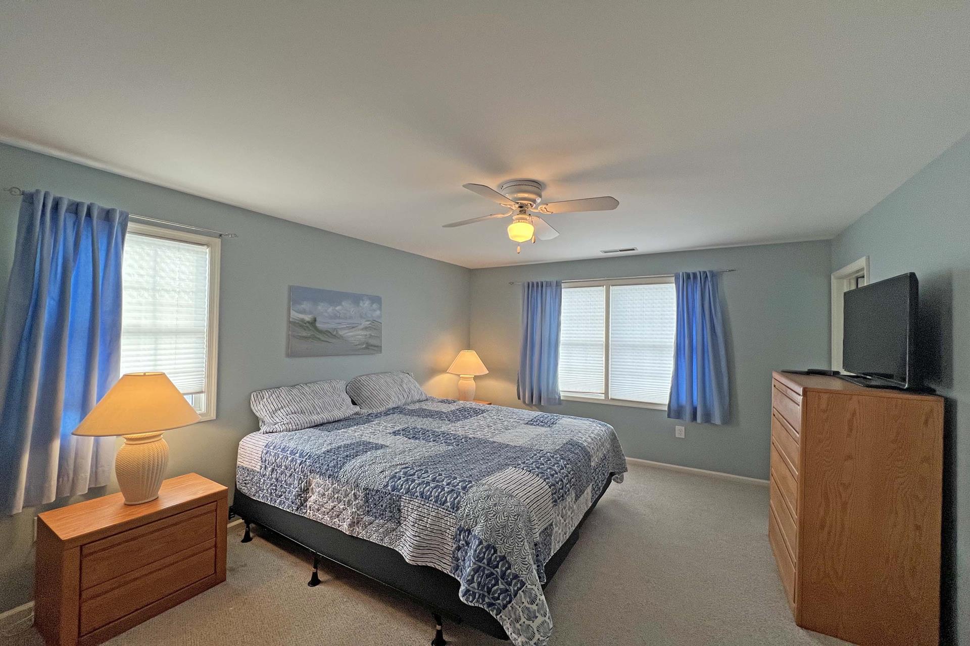 4 bedroom, 2 1/2 bath townhome in Avalon. The first floor features 3 bedrooms...the front bedroom has a Queen bed, the other a queen with a twin and the third bedroom with a bunk bed (double on bottom and single on top) and a single bed. There is also a closet in the hallway which has the washer and dryer and a full bath further down the hallway. The second floor has the great room which includes living room with queen sofa bed with TV, slider to deck and ceiling fan, kitchen with center island and tiled floor and dining area. On the South side of the second floor is main bedroom with a king sized bed with ceiling fan and TV. Great location! Just a short walk to the beach and steps to shopping and town.