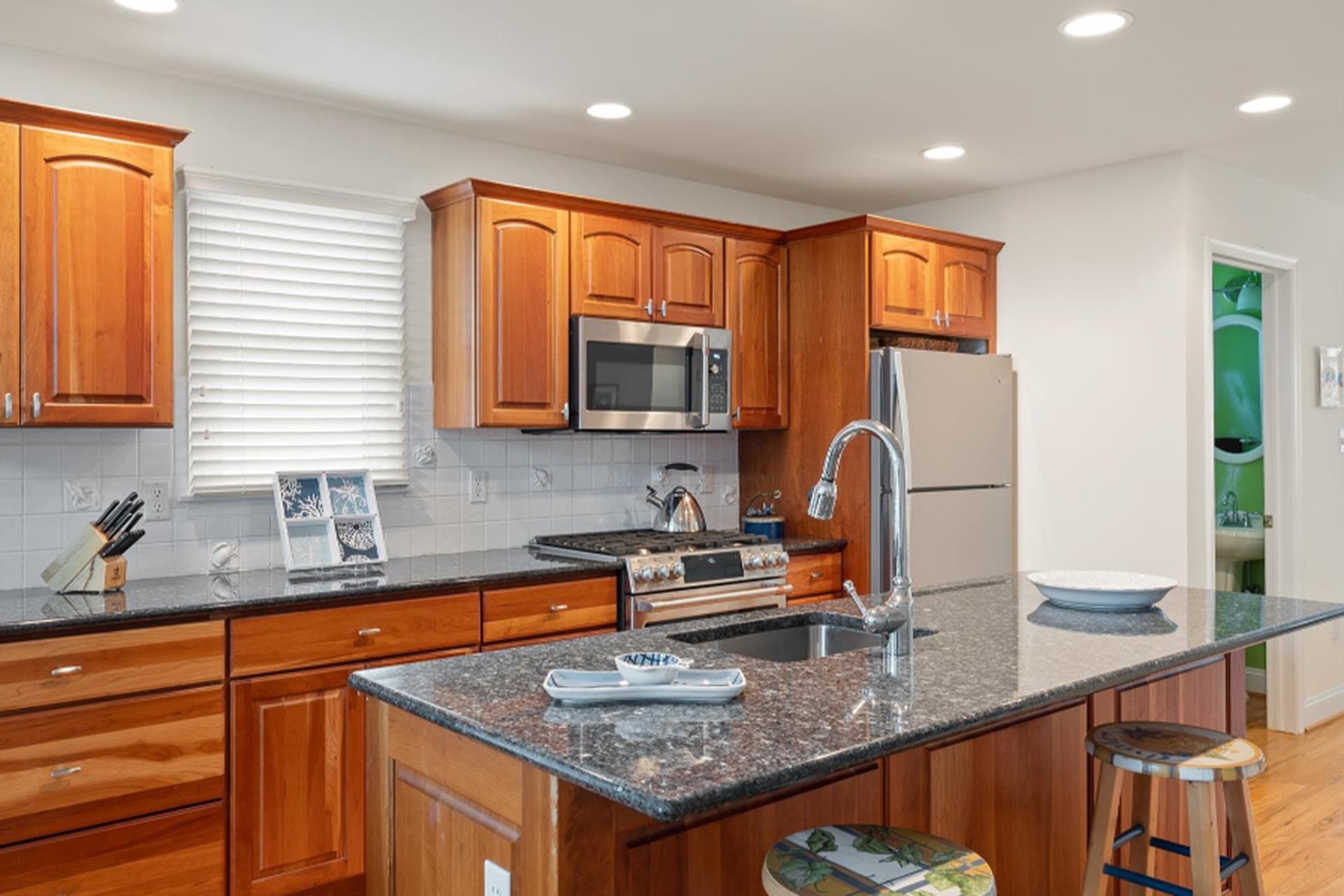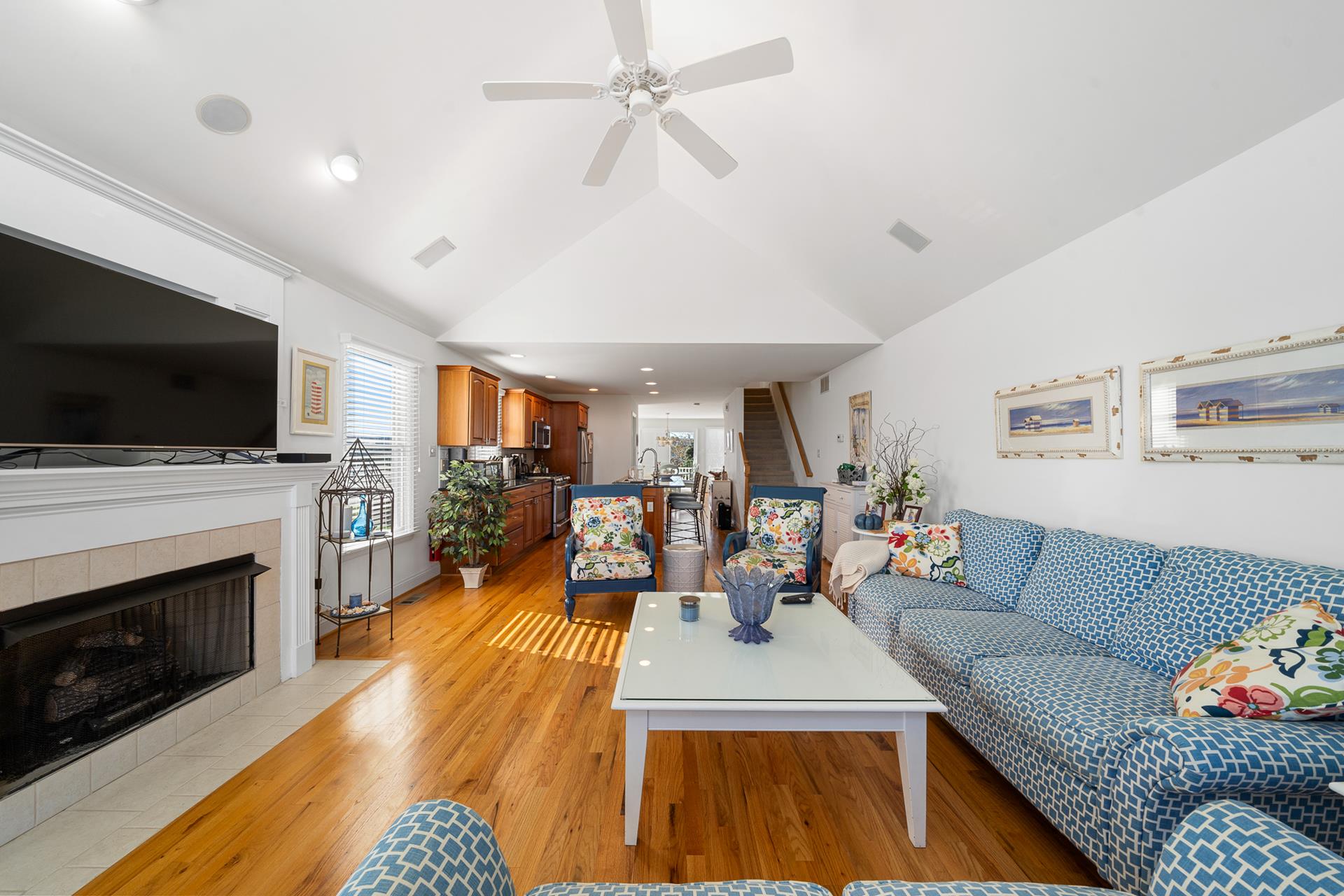 LOCATION, LOCATION, LOCATION! This property affords your family convenient access to the Avalon Business District, the beach & boardwalk just under 3 blocks away! The oceanfront boardwalk spans about half a mile (21st to 32nd Street) and is the perfect setting for a relaxing walk or invigorating run! Also, at 29th Street and the beach, you will find restrooms, ice cream, food and a playground. This location is also just around the corner from Public recreational facilities at the Avalon Elementary School (30th Street), including a track, exercise stations and a basketball court. And next to the recreation area is Avalon s Award-winning Library! This beautiful 4 bedroom, 2 1/2 bath townhouse features three levels of living and ample deck space! The first floor was just recently redone offering new hardwood flooring, new bedroom furniture and a partially renovated bathroom. There are 3 bedrooms (2 bedrooms w/queen bed in each & 1 bedroom w/bunkbeds Twin/double) and 1 bathroom located on the first floor as well as the laundry closet. The 2nd floor great room area offers a unique living space as the Living Room, Kitchen and Dining area span the entire 2nd floor. This creates a spacious Dining area for the entire family to enjoy and a sliding door leading to a back deck. The Kitchen offers granite countertops and stainless-steel appliances, and the Living Area offers an inviting space with vaulted ceiling and a sliding door leading out the street side deck. There is also a Powder Room on this level. The 3rd floor is reserved for the private Master Suite. There is a sliding door leading to a private, southern-exposed deck, where you can enjoy the open-air atmosphere and bay & sunset views! As a bonus, this property enjoys refreshing breezes from the prevailing southerly winds!