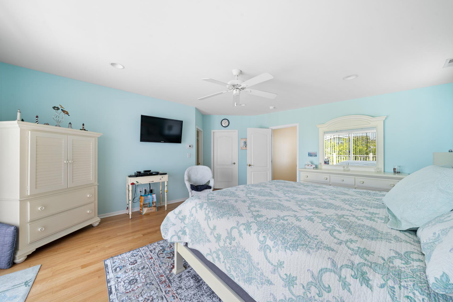 When you enter the property, you step into the first-floor family room offering a wet bar with a sliding door to the front deck with a flat screen TV, and a large deck with swing and seating.
