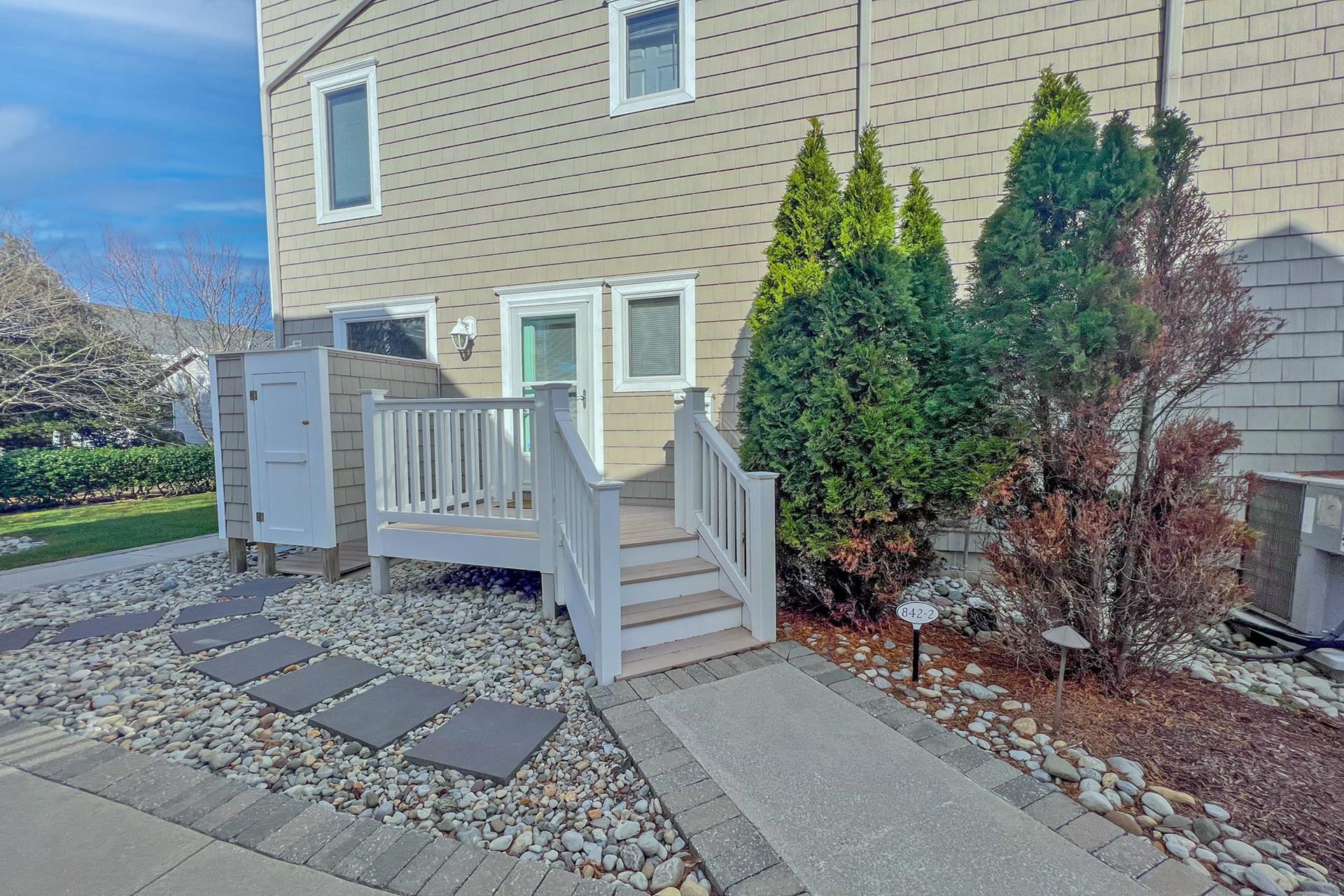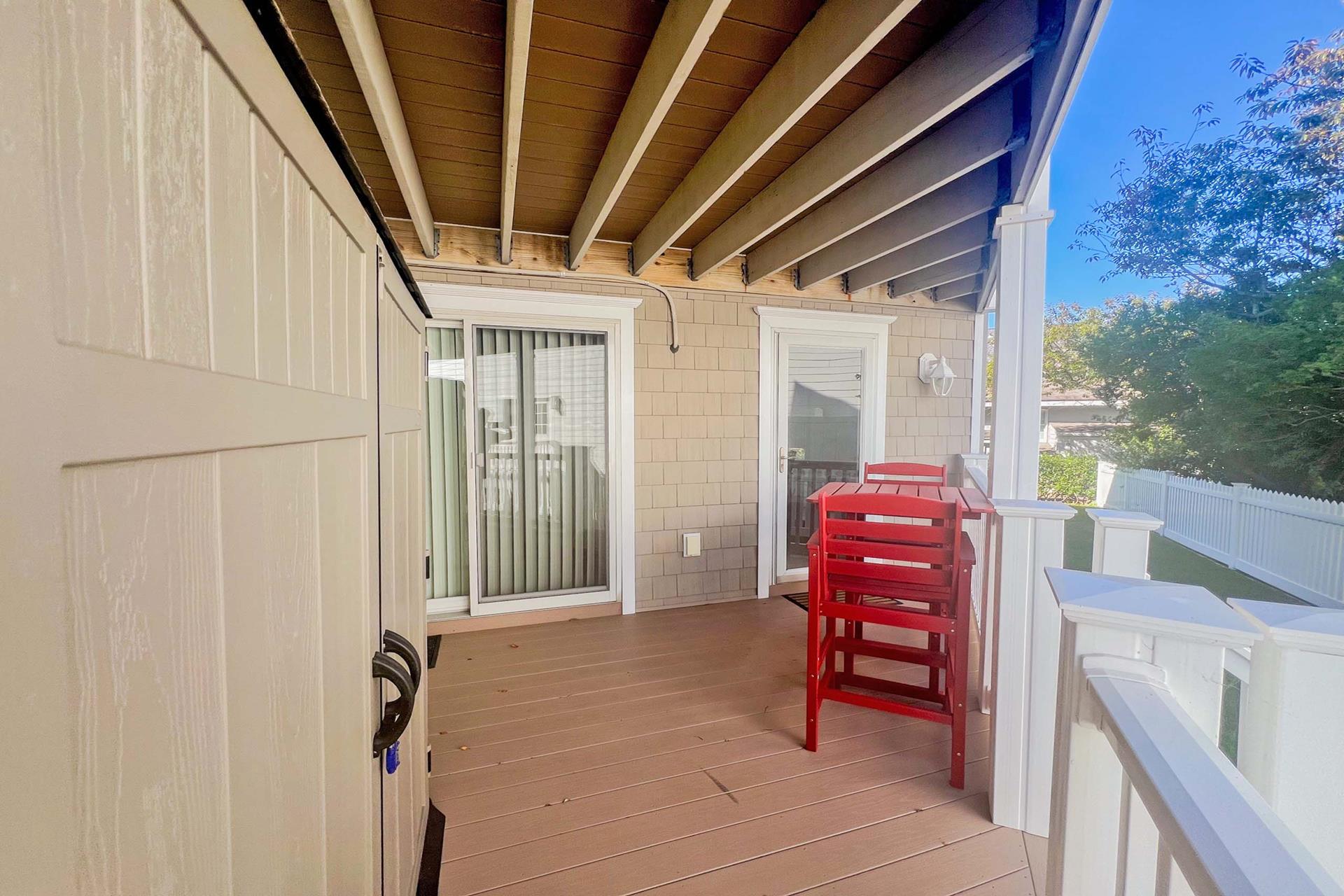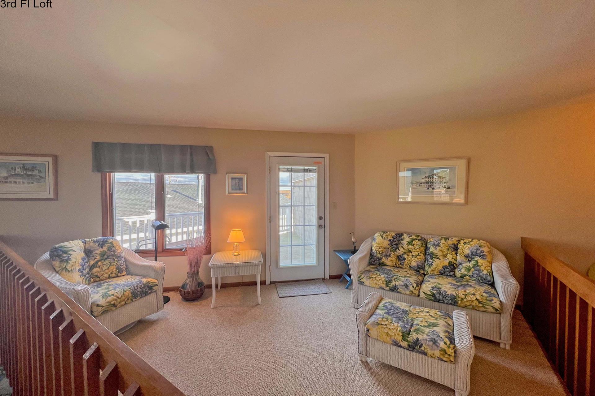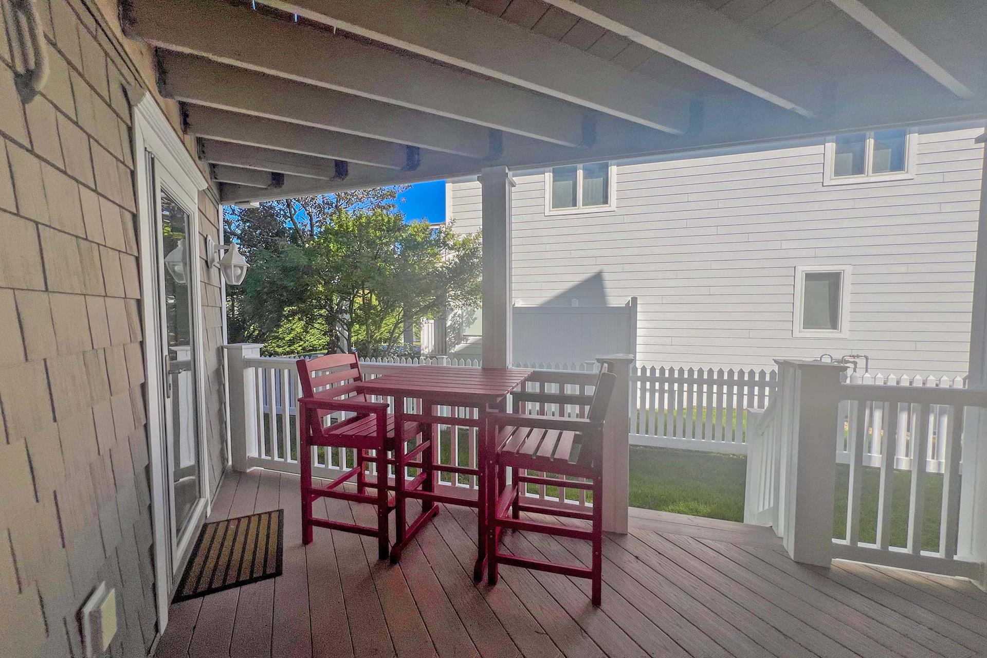This trendy townhouse offers 4 bedrooms and 3 baths. The first floor has two bedrooms each with access to the same deck. The one bedroom has two single beds and the second bedroom has a Queen size bed. There is also a full bath and laundry room on the first level.