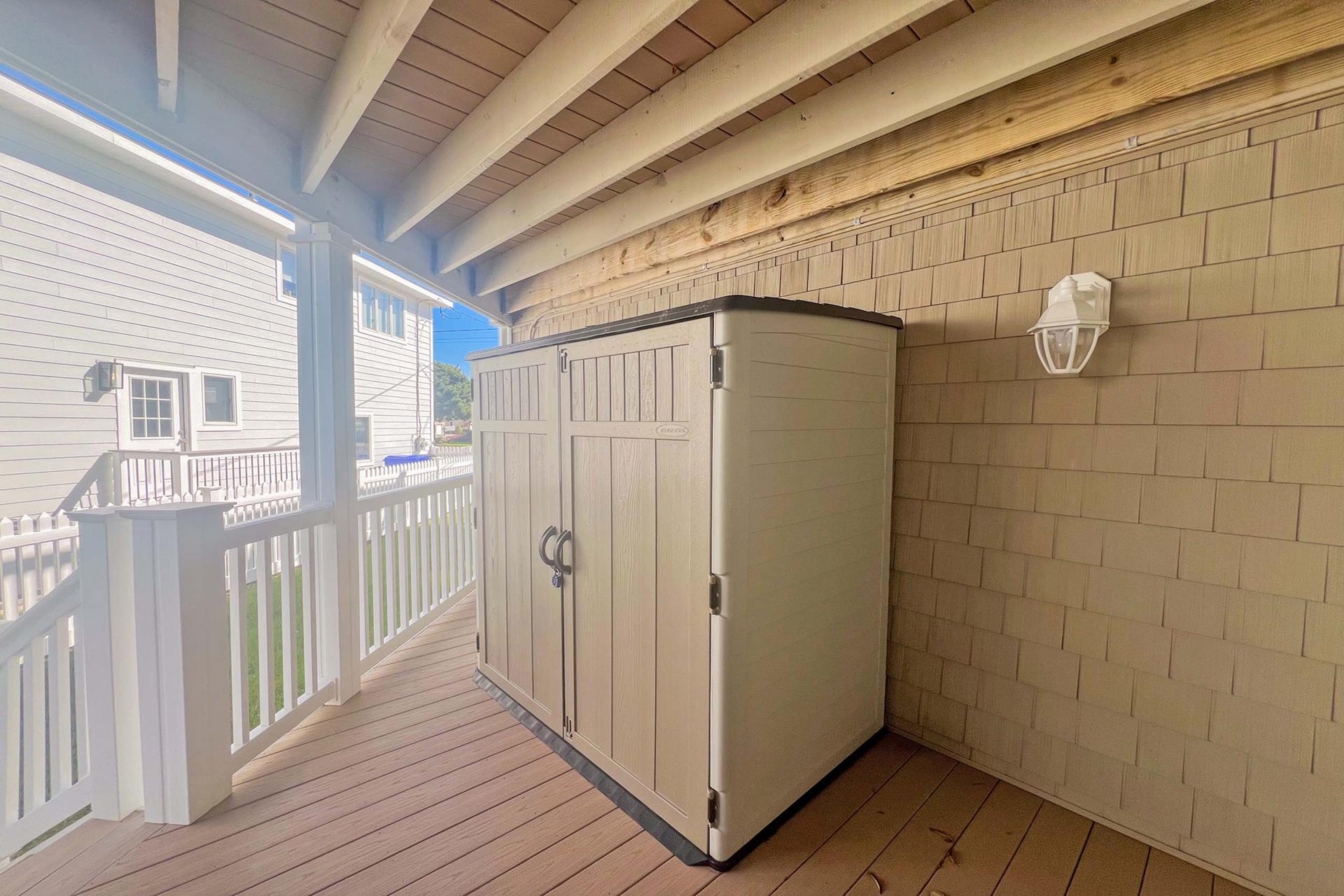 The second floor has a living/dining area, a deck off the living area, kitchen and 2nd floor full bath, and a bedroom with Queen bed that has direct access to the full hallway bath. The third floor has a sitting area with deck, master bedroom and full bath. This home is only a short walk to the 9th street beach and only a few blocks from the recreational field. There is a $200 cleaning fee applicable to all leases in addition to the rent. The home has youtube tv instead of cable service. This unit is the REAR unit and is not one of the front units of the complex.