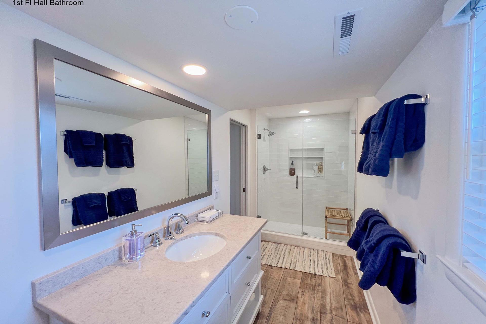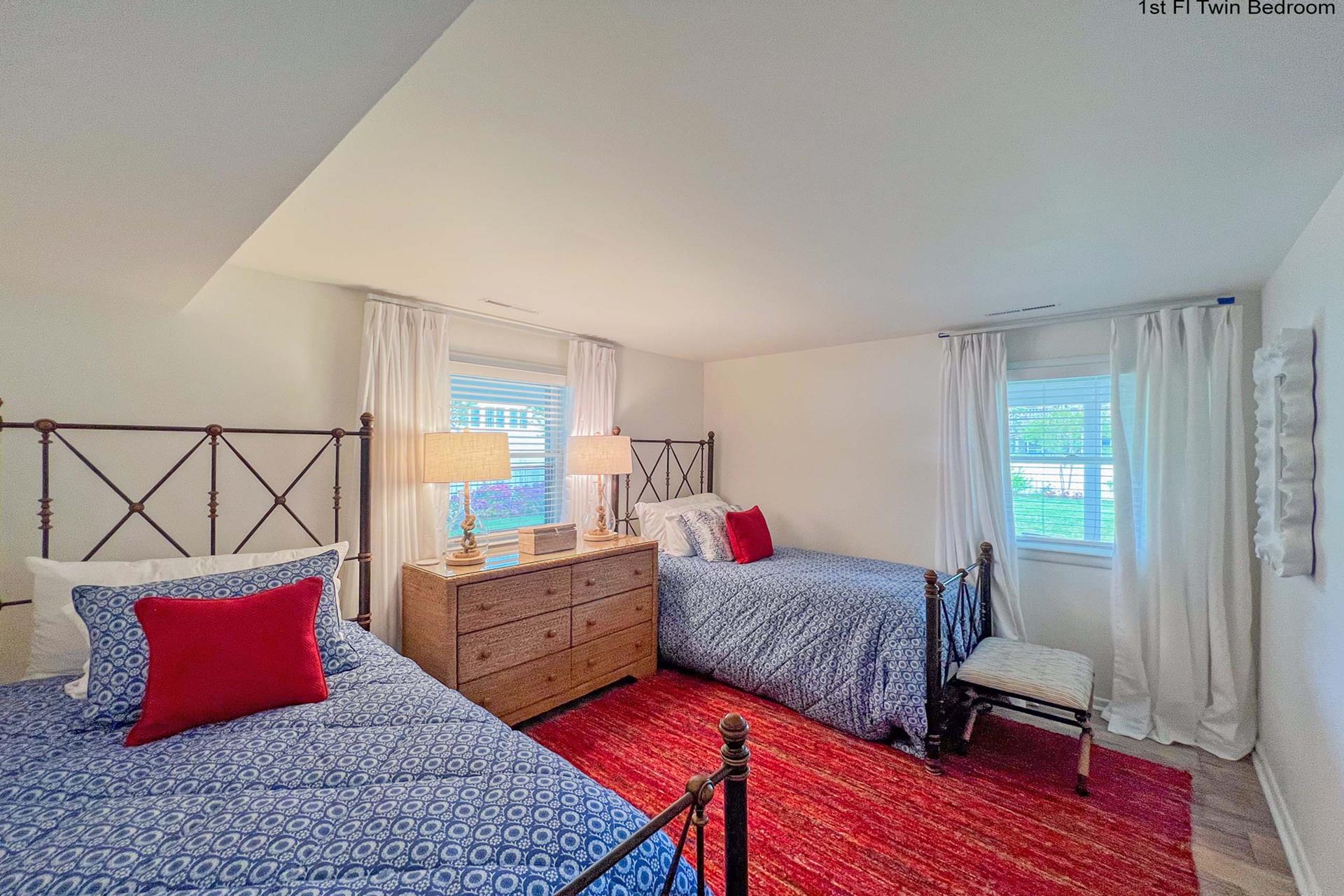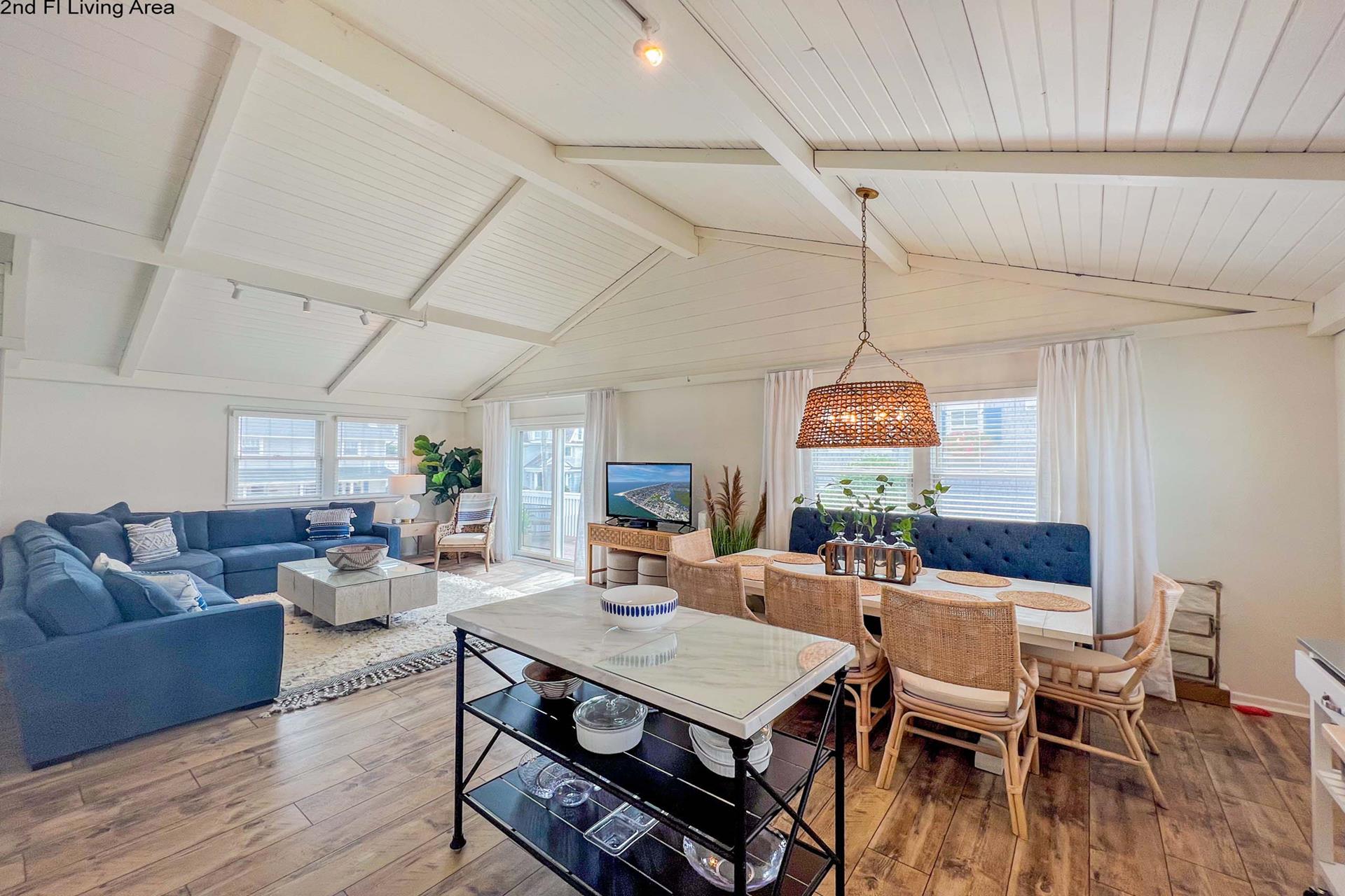 3rd house from the beach, this great home offers 4 bedrooms and 2 baths sleeping 9 people. Owner provides sheets for your convenience. The first floor has 1 bedroom with a queen bed and second bedroom with 2 twin beds. The hallway provides a full bath. Ascend to the second floor to be greeted by the main living space (living, dining, and kitchen areas). Also, on the second floor is a bedroom with a king bed, bedroom with daybed (twin) and bunkbed (twin/twin) and full hall bath. A nice office area provided and third floor loft area accessed by spiral staircase. Enjoy outdoor space either by relaxing on the second floor deck or the outside rear patio with nicely landscaped fenced in yard. Occupancy of 9 maximum no exceptions.