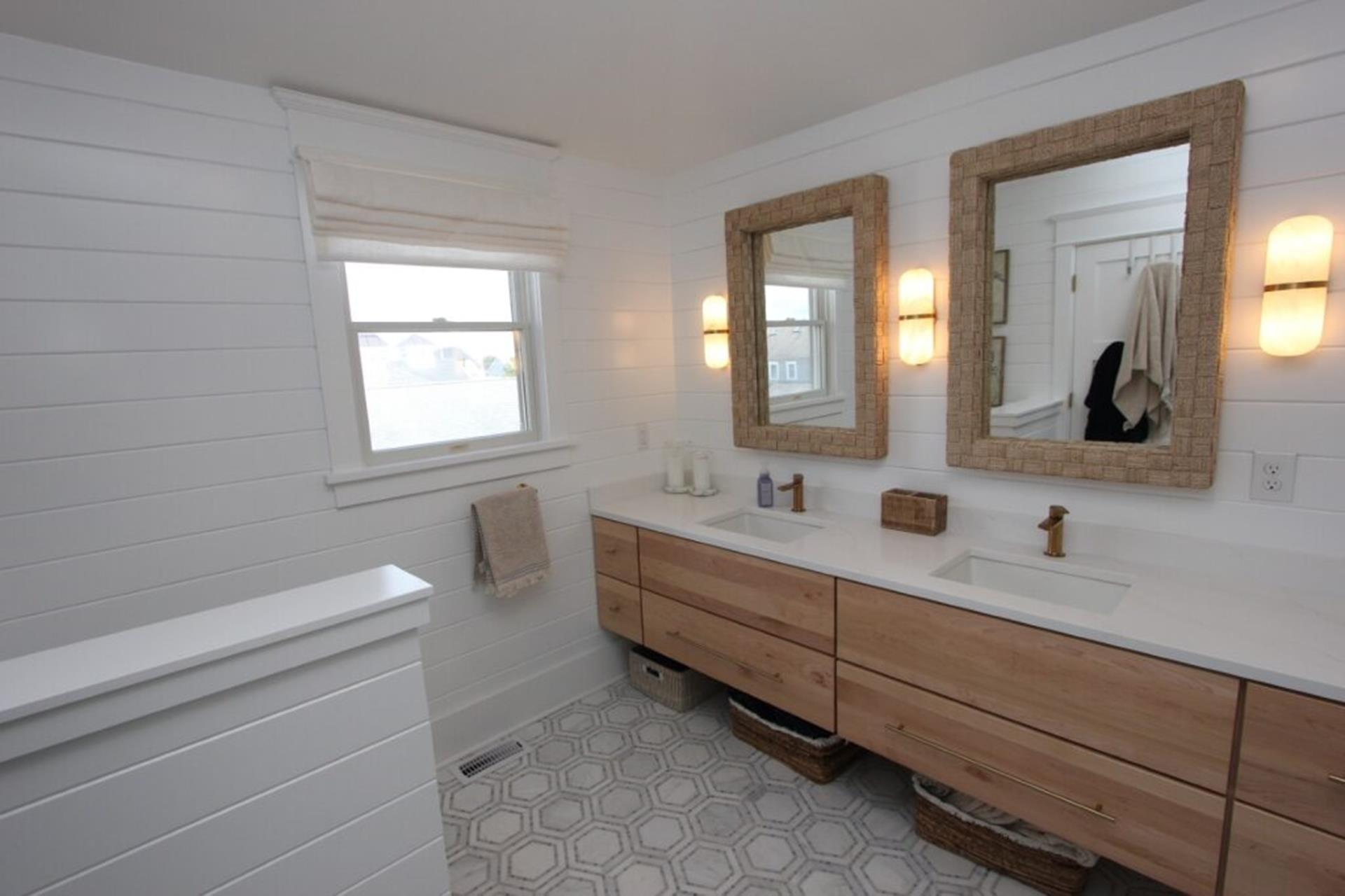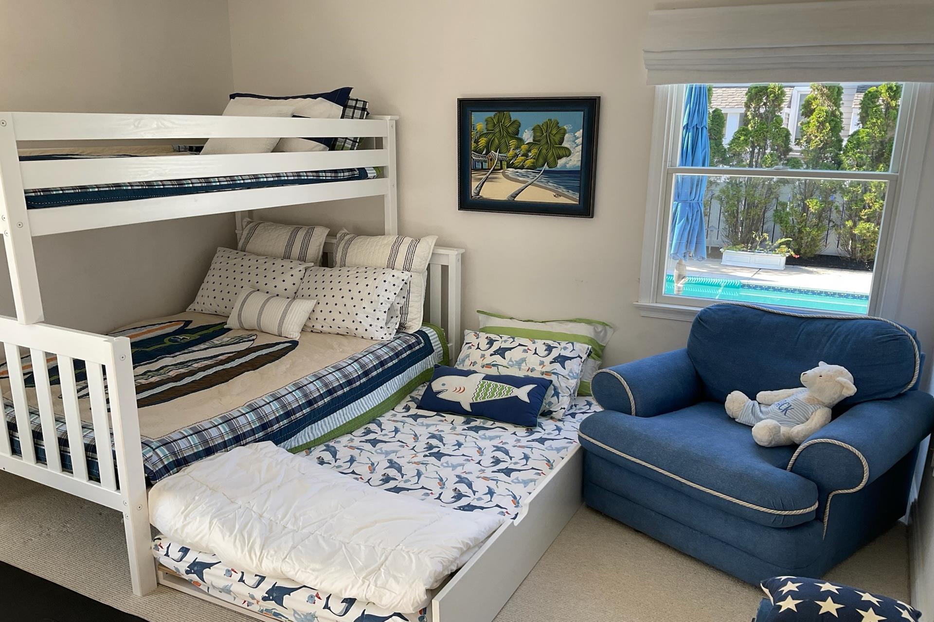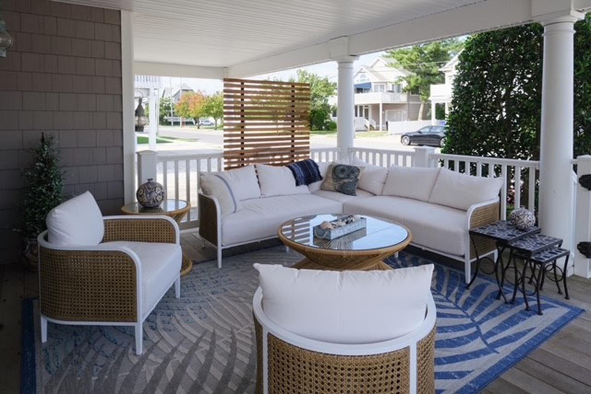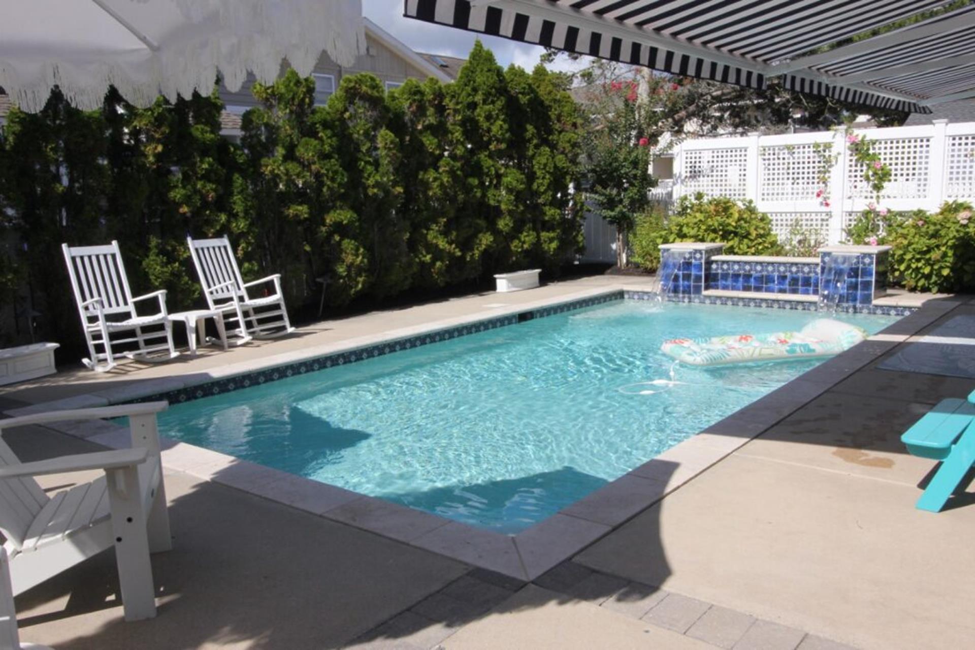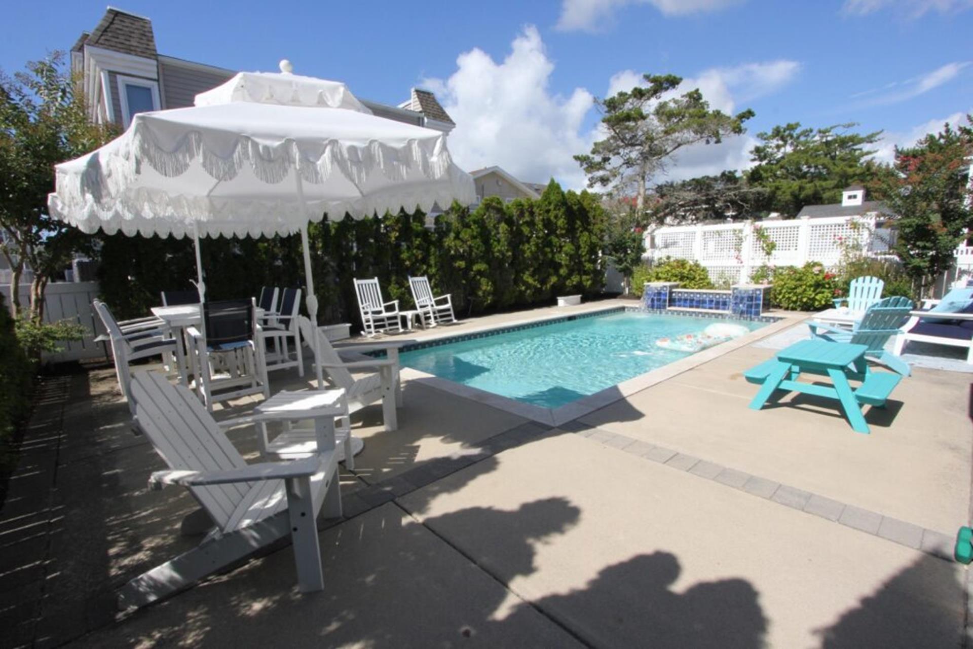 Ocean views, half block to beach, pool, five bedroom, four bathroom and a professionally decorated Avalon home with two master suites. Bring the entire family to this three story Avalon home that provides space and luxury with brand new designer furniture in all rooms and a large pool area with multiple seating areas, outdoor TV and two grills. Best of all, the home is only five houses from the beautiful, less crowded 32nd Street beach. The beach, as well as the boardwalk, playground, community center and town are only a few minutes' walk! Enjoy partial ocean views from the oversized second floor deck and third floor master suite. Outdoor designer furniture includes table seating for eight and a new covered area with sofa and chairs. The white kitchen in stocked for gourmet cooking on the main second floor and features a streaming TV, sitting/entertaining area in white and wood hues. On the first floor, families with young to mature children will enjoy a mini kitchenette with a refrigerator and sink, a bunk bedroom with a twin over double bed and a trundle bed provide room for four family members. Next to the bunk room is a bedroom with a king size bed, both rooms have windows overlooking the pool. An additional large room with double doors can be used as an extra play area, TV room or office and opens out a beautiful covered first floor porch. There are two bedrooms; one with a queen bed and adjacent bathroom and another master bedroom with king size bed and en-suite bathroom complete the second floor. Finally, the spacious third floor master bedroom features a sitting area, king size bed, en-suite bathroom and a private deck with ocean views. Family memories are guaranteed in this one of a kind beach house! NEW KITCHEN AND BATHROOMS FOR 2025 SEASON....PICTURES COMING SOON!