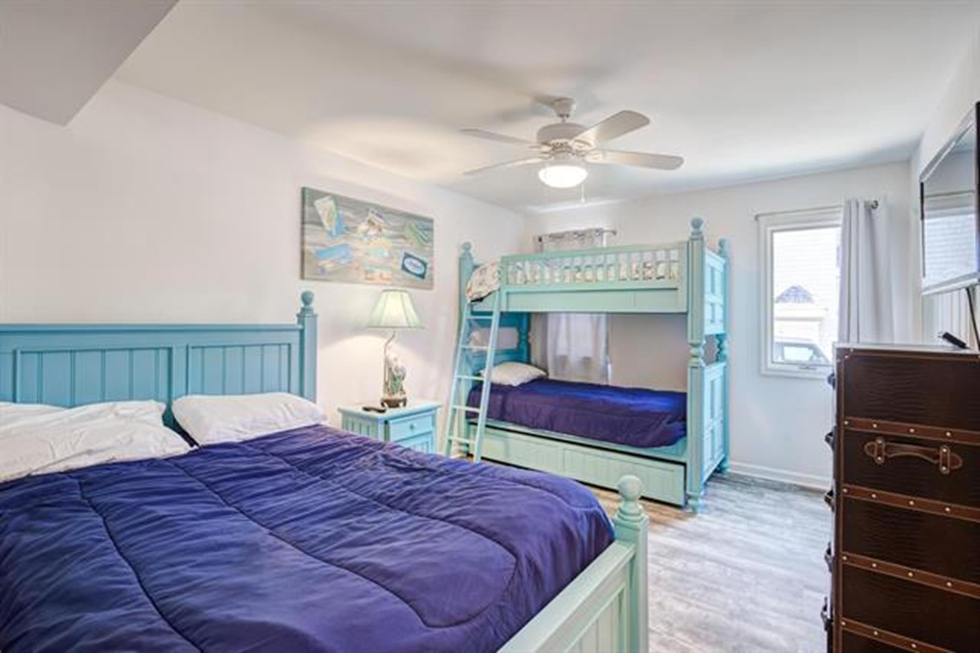 If you're searching for the perfect beach getaway, look no further than 211 65th Street. This charming upside-down beach home is nestled in a highly sought-after area on the southern end of Avalon, offering the ideal retreat for you and your family. Positioned less than seven homes away from the beach, it provides the ultimate in coastal convenience. As you step into the first floor, you'll find four comfortable bedrooms, and three full bathrooms. Bedroom 1 includes a Queen bed, Bedroom 2 features 2 single beds a full bath is shared by these two bedrooms. Bedroom 3 features a Double bed plus a bunk bed (single over single and a trundle all in one room!), full bath. Bedroom 4 features 2 single beds. A laundry room with a full bath plus the family room (NEW sleeper sofa for summer 2026) off the rear of the first level. The second floor unveils the heart of this beach home - the main living area. Here, you'll be captivated by the flood of natural light that pours in through an abundance of windows. This spacious area offers ample seating, a dining nook, a well-equipped kitchen with a breakfast bar, and a delightful deck that grants you incredible vistas of the ocean. On this floor, you'll also find a convenient bathroom and the master suite with King bed, complete with a private bathroom. Whether you're seeking solace by the sea or a family adventure filled with sun and sand, 211 65th Street promises a delightful beachside experience that you won't soon forget. Please no pets allowed. Detached shed available for storage of beach gear, bikes and strollers! DISCLOSURE: MASTER BATHROOM TUB - TENANTS WILL NOT HAVE USE OF JETS.