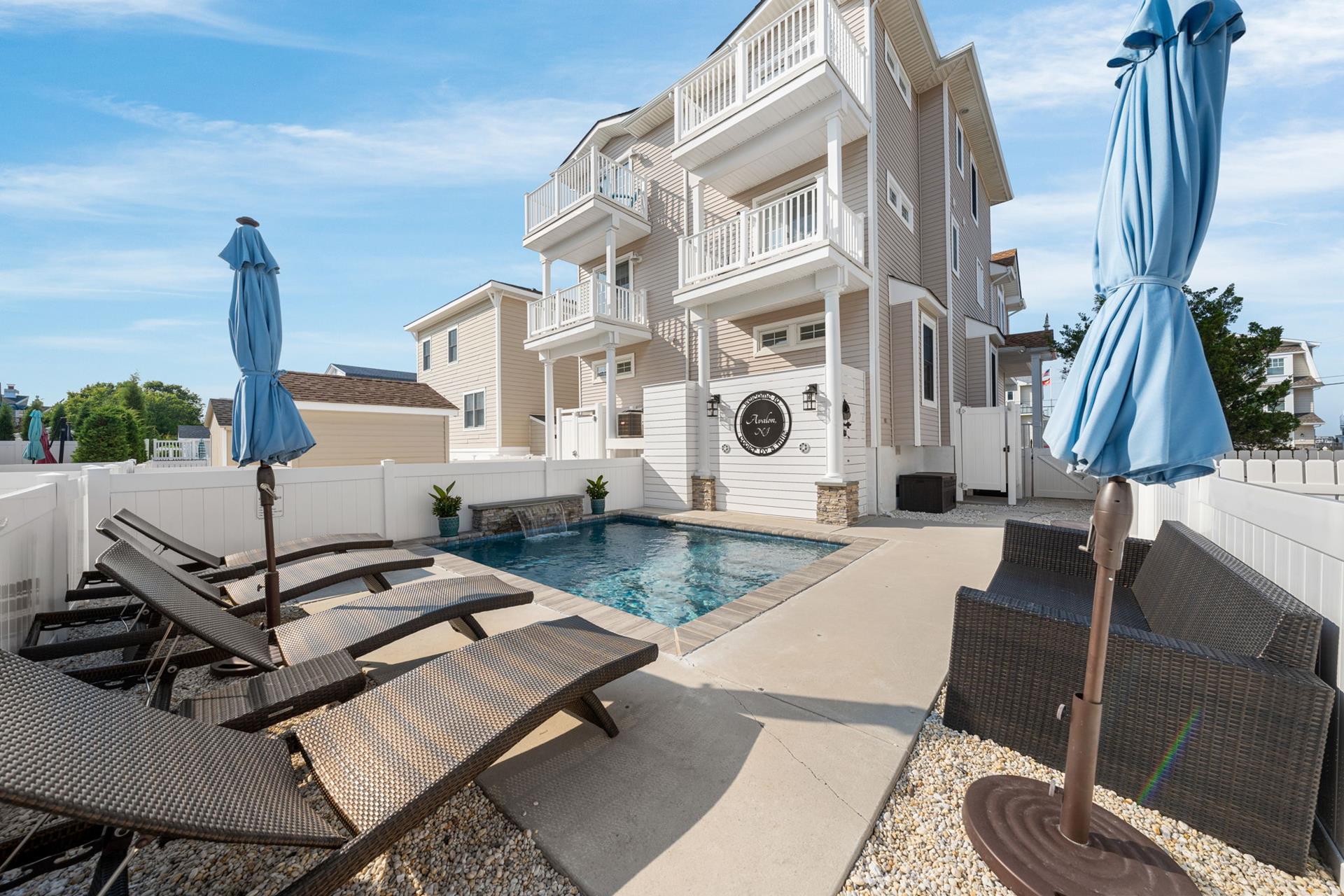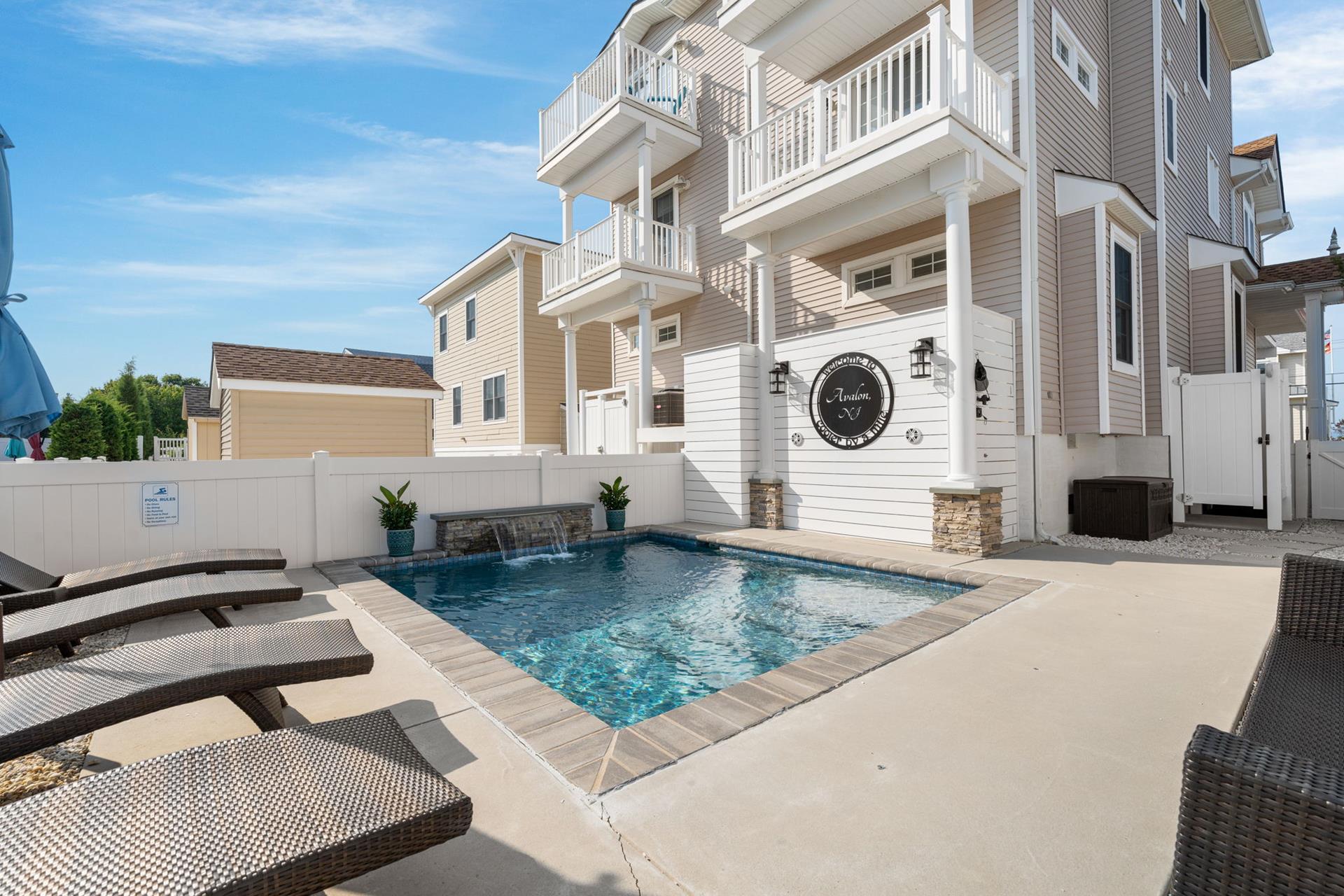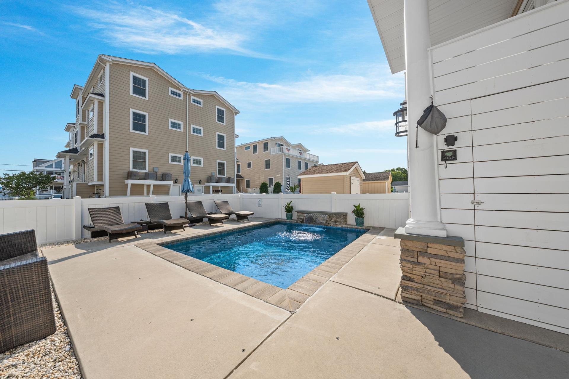 The ultimate vacation getaway, this 5 bedroom, 3.5 bath townhouse has bay views and a heated pool. This home has been nicely furnished and recently renovated with an open living area and a fully equipped kitchen. Upon entering the home, you are welcomed by a foyer that leads to two bedrooms; one with a king and the other with bunk beds (traditional style twin over twin) and a full hall bathroom. There is a bedroom with a queen size bed, private bathroom and deck, living area, dining area and kitchen along with a half bathroom on the second floor. Two additional bedrooms on the third floor; one with two twin beds and the other with a queen size bed and full hall bathroom. Enjoy the views from one of the three decks where you can have morning coffee, dinner or evening cocktails. This home is just around the corner from the 6th Street dock where you can kayak or paddleboard. You can also take a short walk to the restaurants and shops in downtown Avalon.