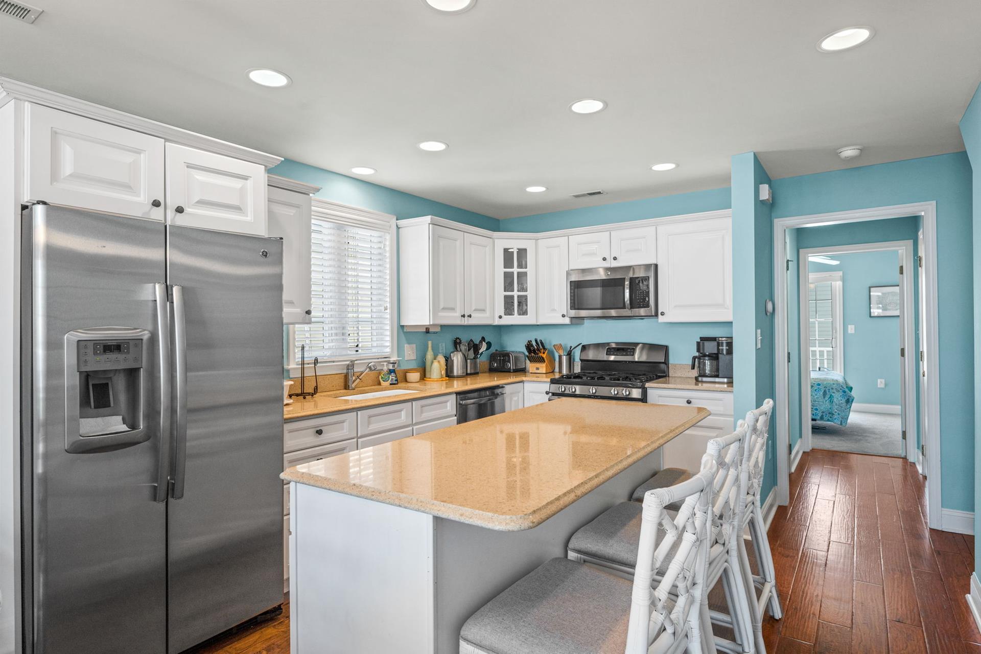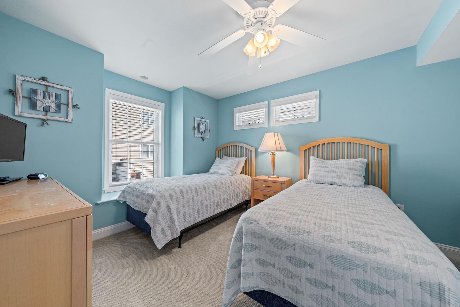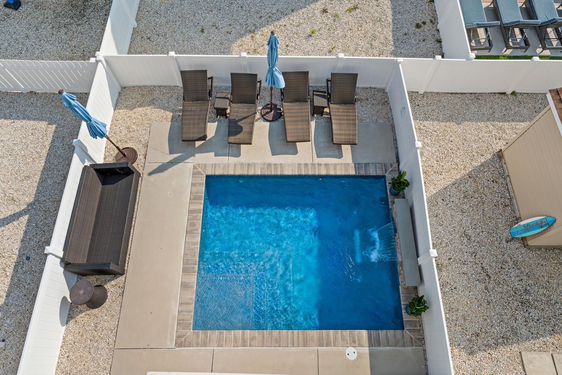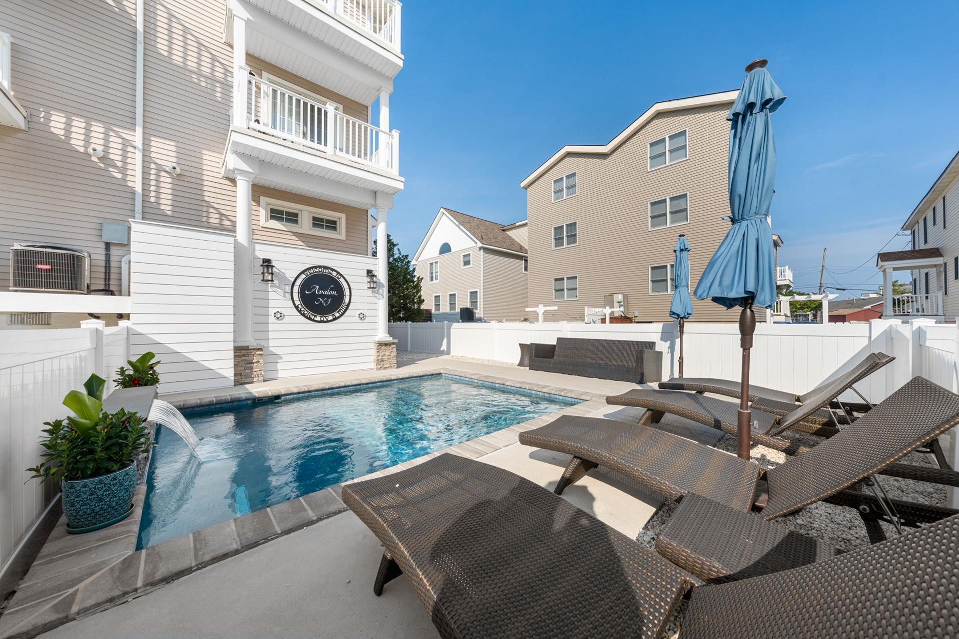 The ultimate vacation getaway, this 5 bedroom, 3.5 bath townhouse has bay views and a heated pool. This home has been nicely furnished and recently renovated with an open living area and a fully equipped kitchen. Upon entering the home, you are welcomed by a foyer that leads to two bedrooms; one with a king and the other with bunk beds (traditional style twin over twin) and a full hall bathroom. There is a bedroom with a queen size bed, private bathroom and deck, living area, dining area and kitchen along with a half bathroom on the second floor. Two additional bedrooms on the third floor; one with two twin beds and the other with a queen size bed and full hall bathroom. Enjoy the views from one of the three decks where you can have morning coffee, dinner or evening cocktails. This home is just around the corner from the 6th Street dock where you can kayak or paddleboard. You can also take a short walk to the restaurants and shops in downtown Avalon.