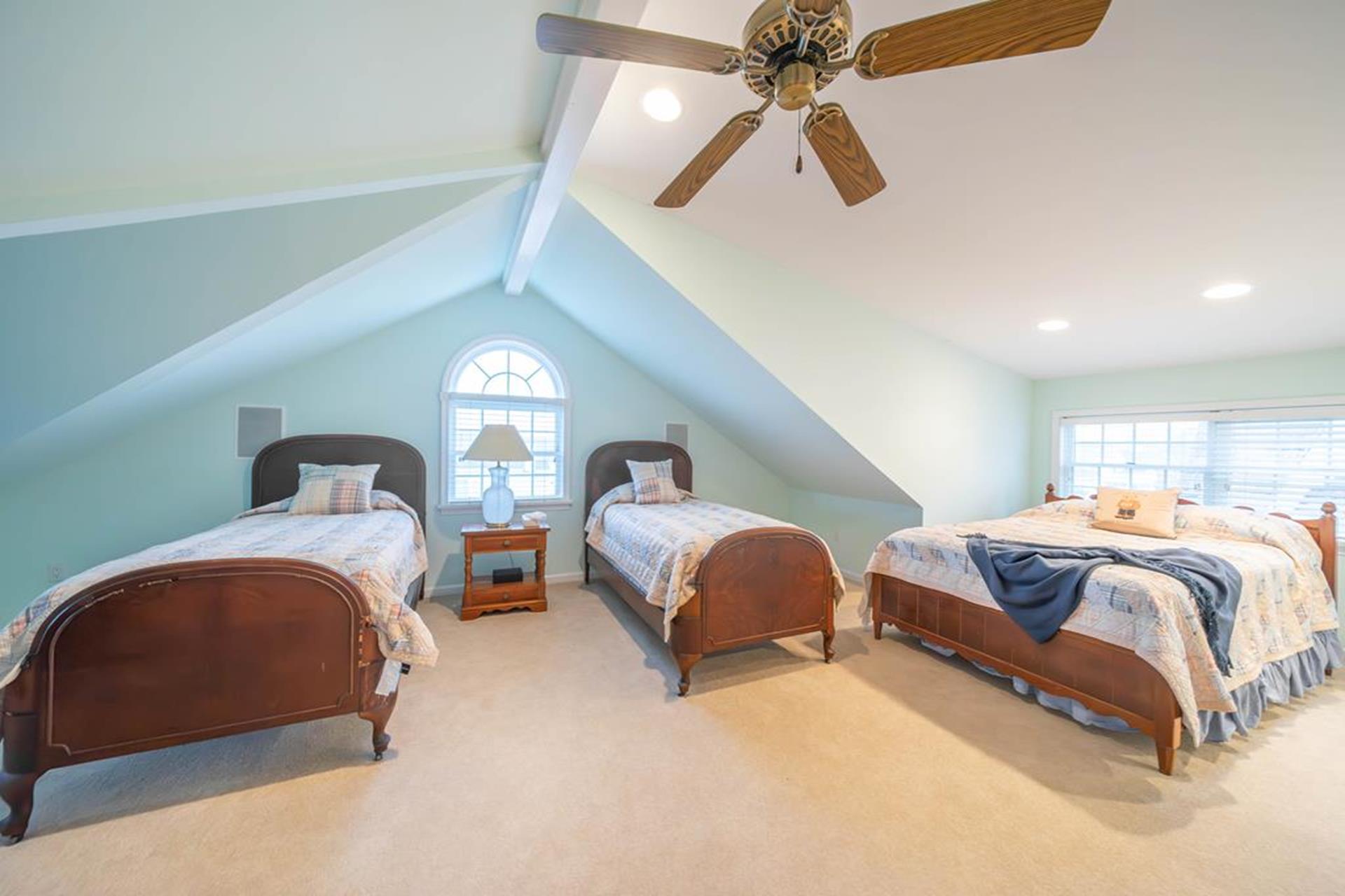 Welcome to this spacious and luxurious 6-bedroom, 4.5-bathroom traditional style rental property in the heart of Avalon. With the capacity to sleep up to 15 guests, this property is perfect for large families or groups looking for a comfortable and convenient vacation rental. As you step inside, you'll find a well-appointed interior featuring 1 King Bed, 3 Queen Beds, 1 Double Bed, and 5 Single Beds spread across the bedrooms. The bedroom/bathroom layout is as follows: 2nd floor: 1 King bedroom w/private bathroom and access to large deck, 1 bedroom with 2 twin beds, 2 bedrooms with a Queen bed in each and a hall bathroom. 3rd floor offers a Queen bedroom w/private bathroom and 1 bedroom offers a large room with 3 twin beds and 1 double bed. This room also has it's own bathroom. The property boasts modern amenities such as a dishwasher, microwave, disposal, coffee maker, toaster oven, blender, central AC, and ceiling fans to keep you cool and comfortable during your stay. Entertainment options abound with 6 TVs, cable TV, DVD player, and high-speed internet. The property also features a cozy fireplace for those chilly evenings. Outside, you'll find 2 decks with deck furniture, a BBQ gas grill, and a fenced yard for outdoor enjoyment. Additional amenities include parking for 2 vehicles, a washer and dryer, iron, ironing board, vacuum cleaner, and beach badges for your convenience. Enjoy the beautiful Avalon weather in the enclosed outside shower or relax in the level yard or lawn area. With 12 dining capacity inside and 8 dining capacity outside, there's plenty of space for meals with your group. The kitchen is fully equipped with a stove, full-size refrigerator, oven, and all the necessary cookware and dinnerware. Cleaning is included in the rate, and utilities are also included for your convenience. Linens are not provided, so please remember to bring your own. Beach chairs, mattress pads, pillows, and more are available for your use. Don't miss out on this fantastic rental property in Avalon, offering a perfect blend of comfort, convenience, and luxury for your next vacation. Book now and start planning your unforgettable getaway! Sorry, no pets accepted and Hot tub is not included.