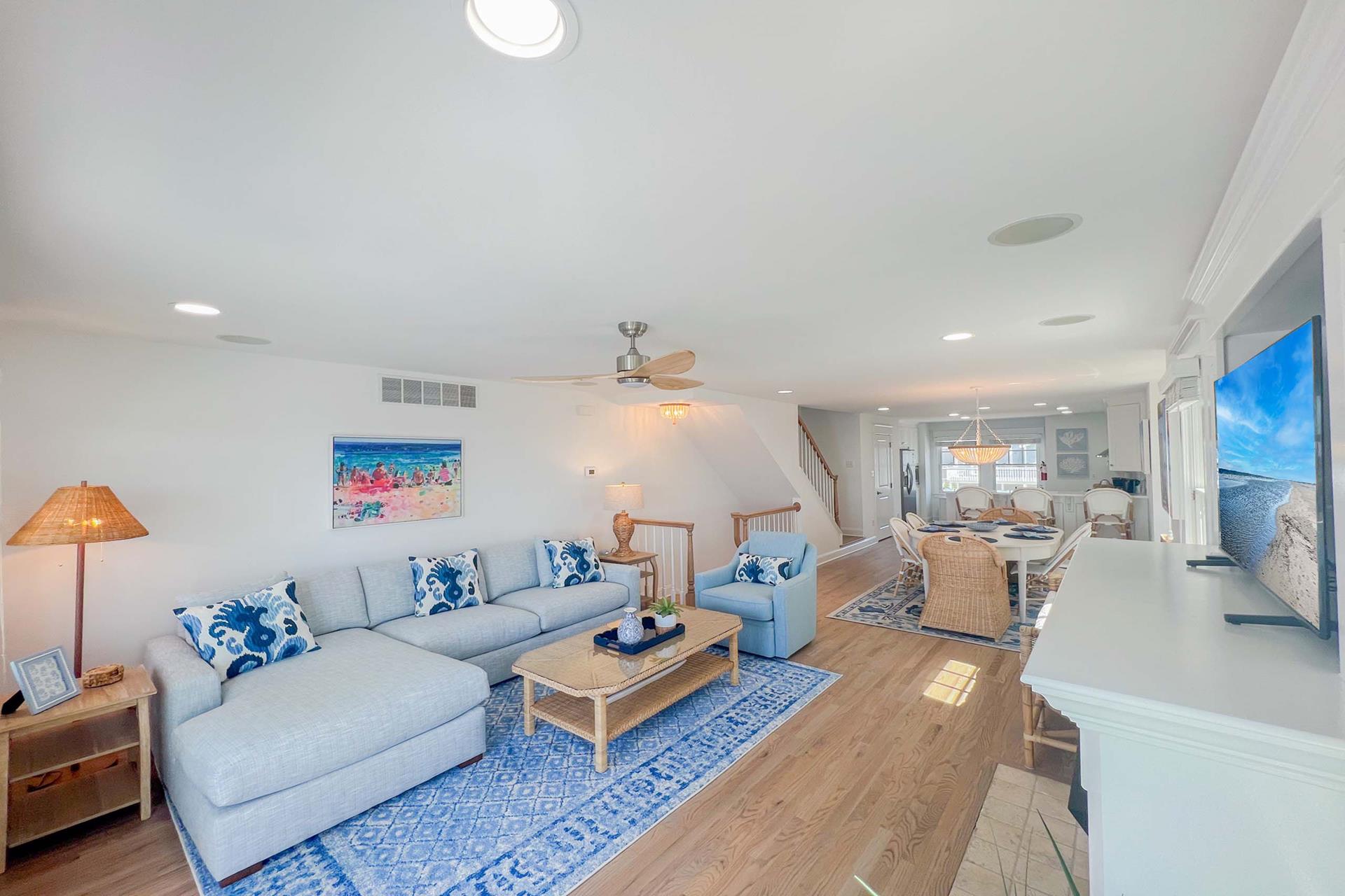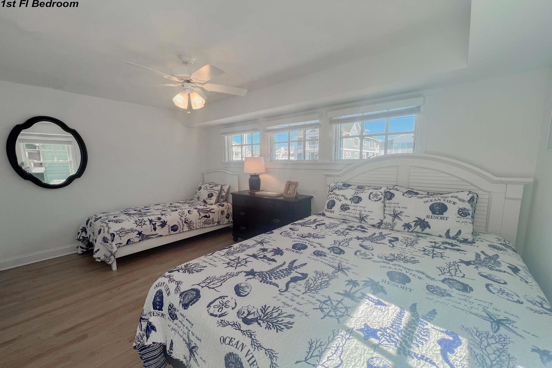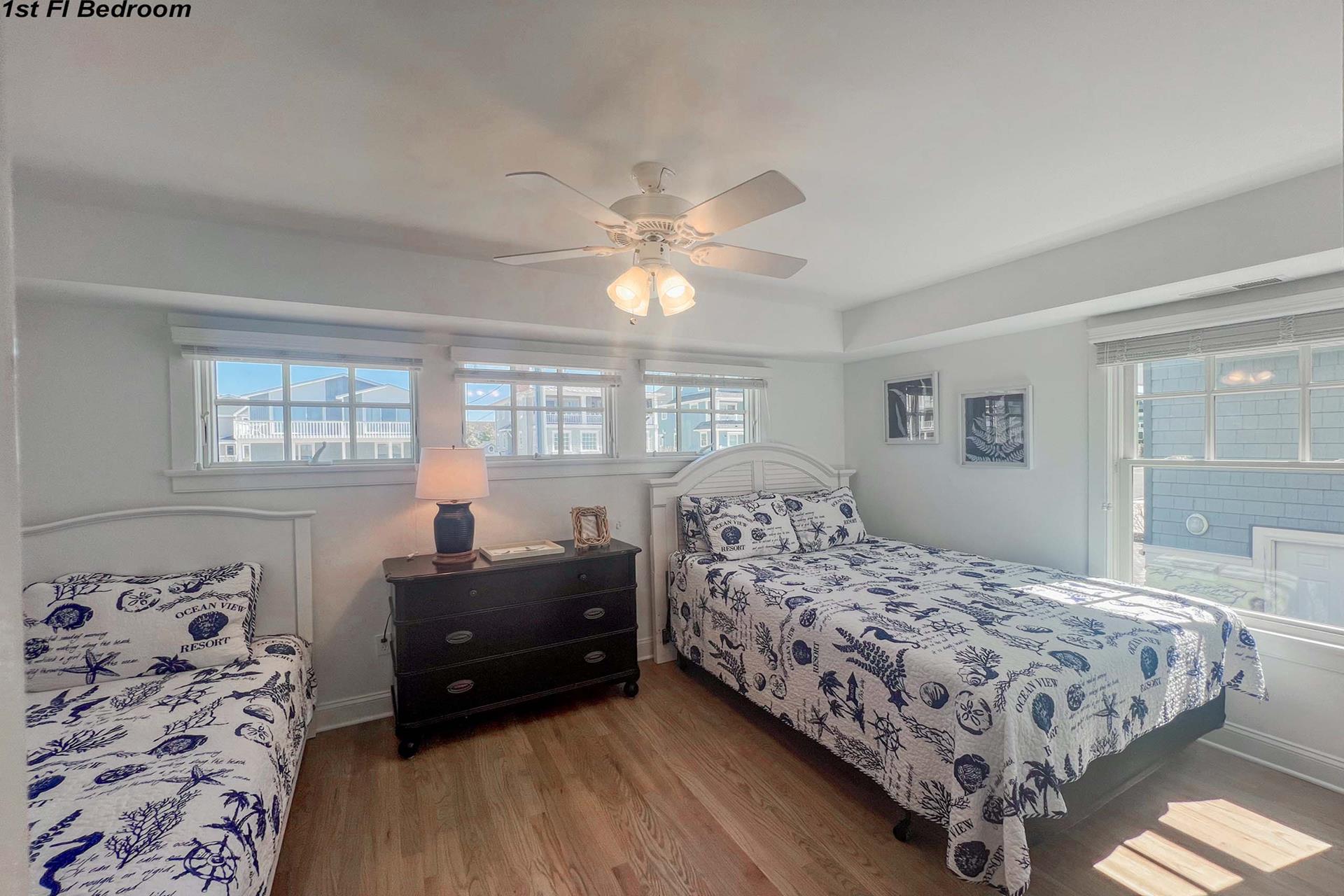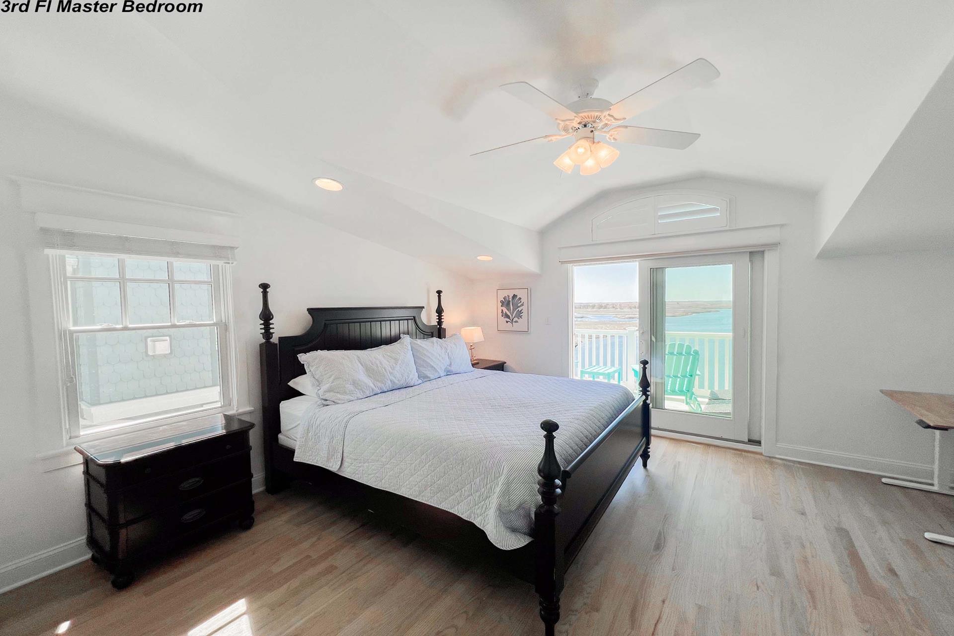 This home is a waterfront paradise, with spectacular bay views, intercoastal waterways and unlimited sunsets. A short walk to the beach path at 35th or 36th street. This open floor plan offers 4 bedrooms and 3 and one half Bathroom(s) The BBQ Gas grill is on the ground deck. The first floor has two bedrooms; one with a double bed and twin bed and the second bedroom has a double daybed with twin trundle. The second floor has powder room and great room area with living. dining and kitchen areas. The slider access to an outdoor entertaining area which maximizes the bay views & creates an inviting, serene space! The third floor has a owners en- suite with a King Beds and a 4th bedroom with a queen bed. There are updated floors throughout with updated Kitchen. The owner also provides lots of storage in the ground level outdoor closet for your beach gear or bikes. It is a short walk to the beach access on 35TH street, the business district, the boardwalk on 32ND street, the library and recreational places. Property has YOUTUBE TV (no cable). Queen bedroom has a twin cot in the closet for additional sleeping. Boatslip is not available for renter use. Owners boat is docked in the slip, However, dock can be utilized to launch kayaks, paddle boards, sunbathe or fish. Also, space for one small jet ski.