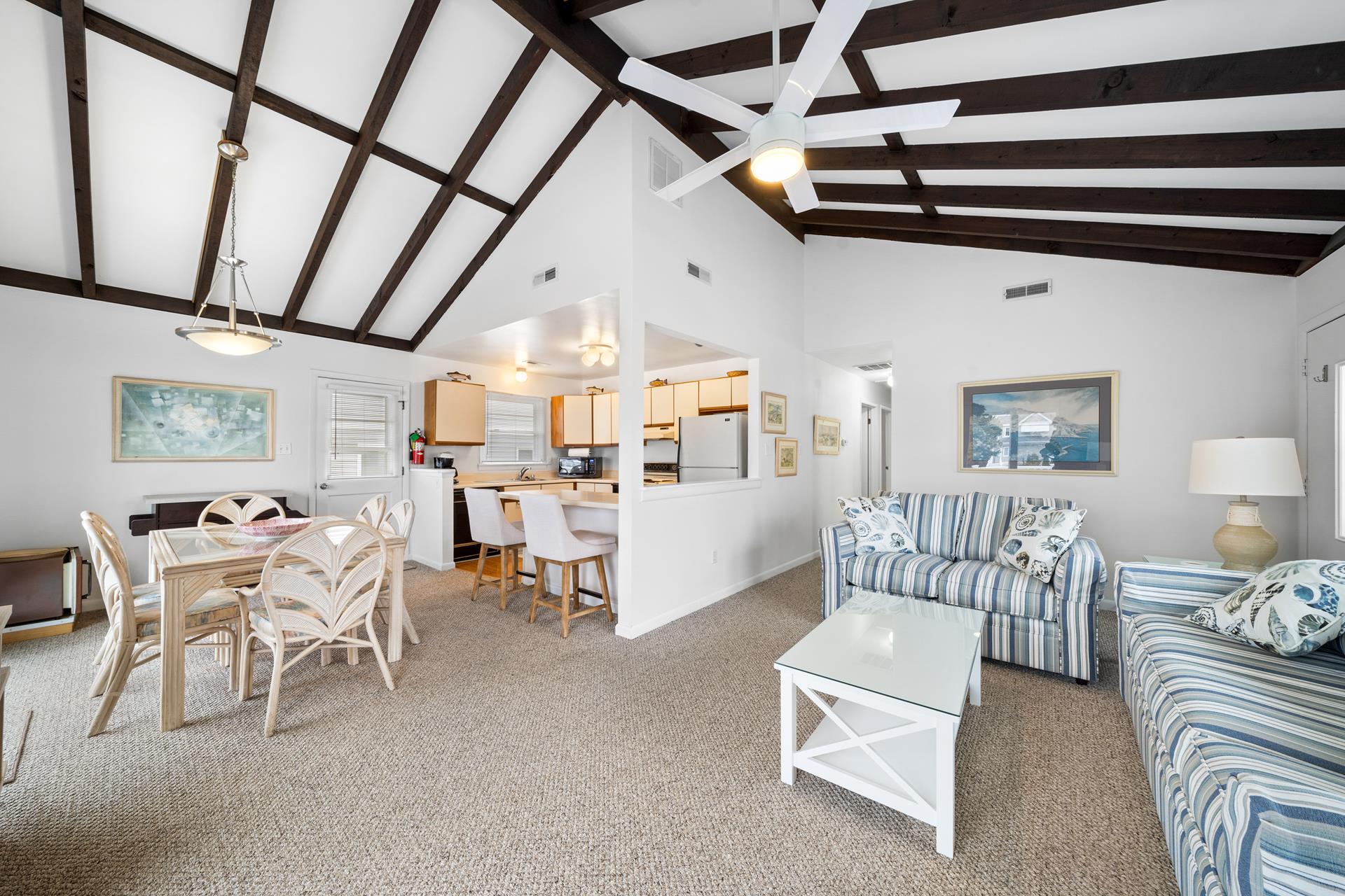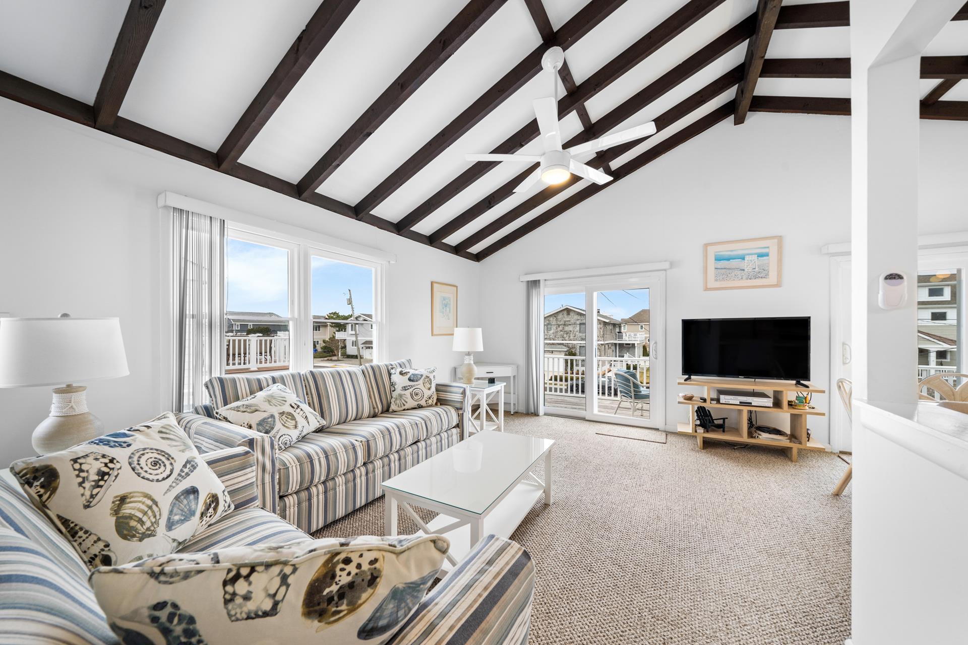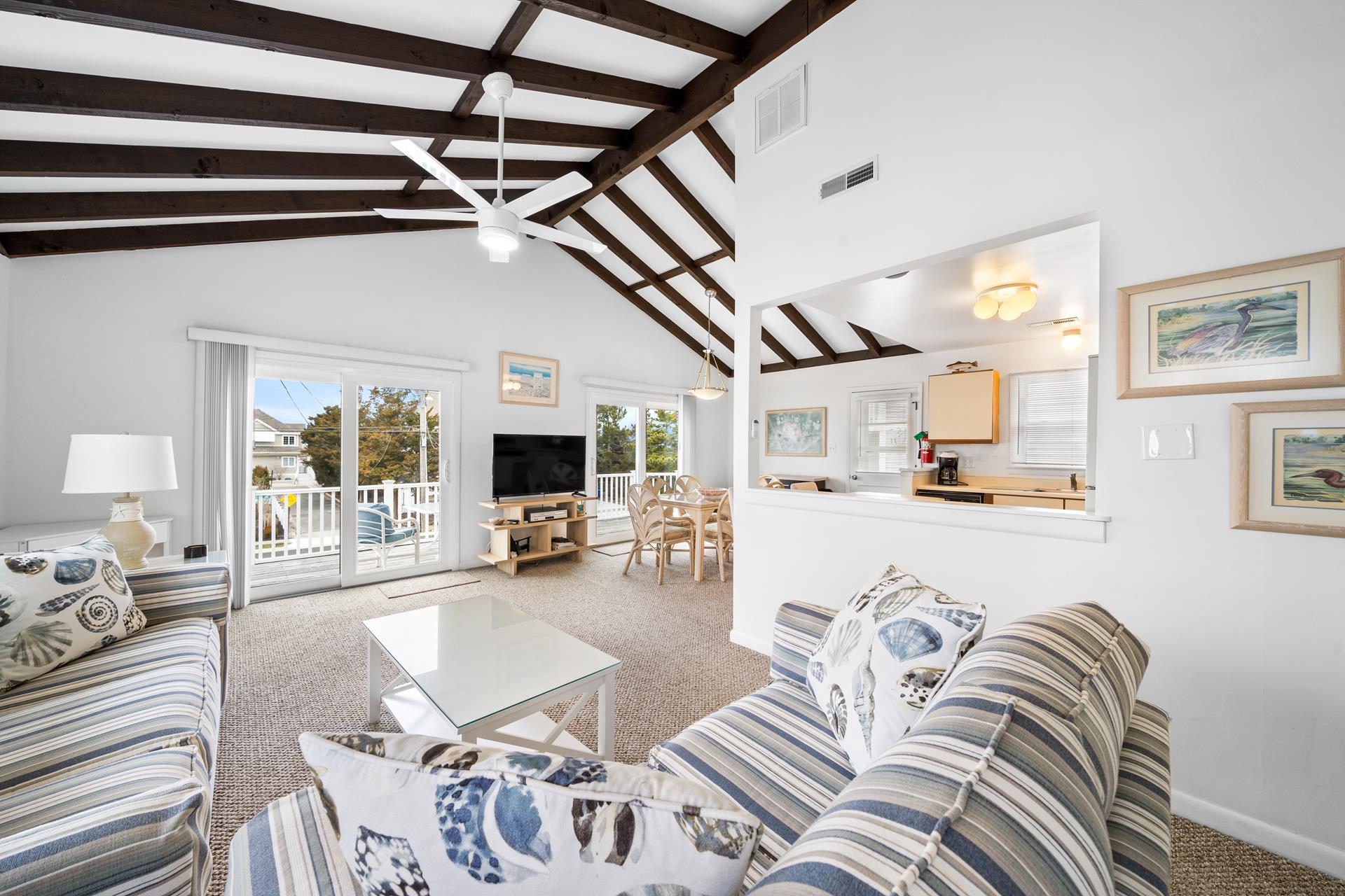 A GREAT FIND!! This 2nd Floor condo offers beautiful bay, wetland & wildlife views, and is available for the entire season!! You can enjoy the view from the Living Area, and it even gets better once you’re on the huge deck! The deck is a fantastic extension of the Living Area, and you can adjust the awning as needed! Inside, you’ll find 3 bedrooms and 2 bathrooms, with one of the bedrooms having its own private bathroom. The bright and airy Great Room is flanked by windows and sliding doors, which maximizes the refreshing breezes, enhances the views, and creates a welcoming atmosphere! Two sliding doors provide convenient access to/from the deck. The property has been well-kept and features newer carpeting and (for 2024) a new Queen size Sleeper Sofa and a new Loveseat. There’s plenty of counter space in the Kitchen, with seating at the counter. This is a great neighborhood – just off the beaten path, yet only a short walk to some of the widest beaches on the Island! This property is located next to the corner of 40th Street - the beach access at 40th Street leads to huge, uncrowded beaches, and it’s a perfect setting for quiet relaxation or for family & friends to spread-out and play games! At the end of the day, retreat back to 3925 Fourth Ave, store your beach gear in the shed, enjoy the outdoor shower (each unit has its own designated shower and parking), and watch the sunset! And to close-out the day, you can enjoy the generous size backyard for a game of horseshoes or cornhole! This location is also around the corner from the Public Bayfront Dock at 37th Street, where you can fish, crab and enjoy the wildlife & beautiful setting. Avalon’s Public Recreation Area is just one block away; spanning between 39th and 40th Street, the Rec Area offers a playground, bocce ball, tennis, basketball, and more! With so much to offer, book your vacation now – you’ll be glad you did!