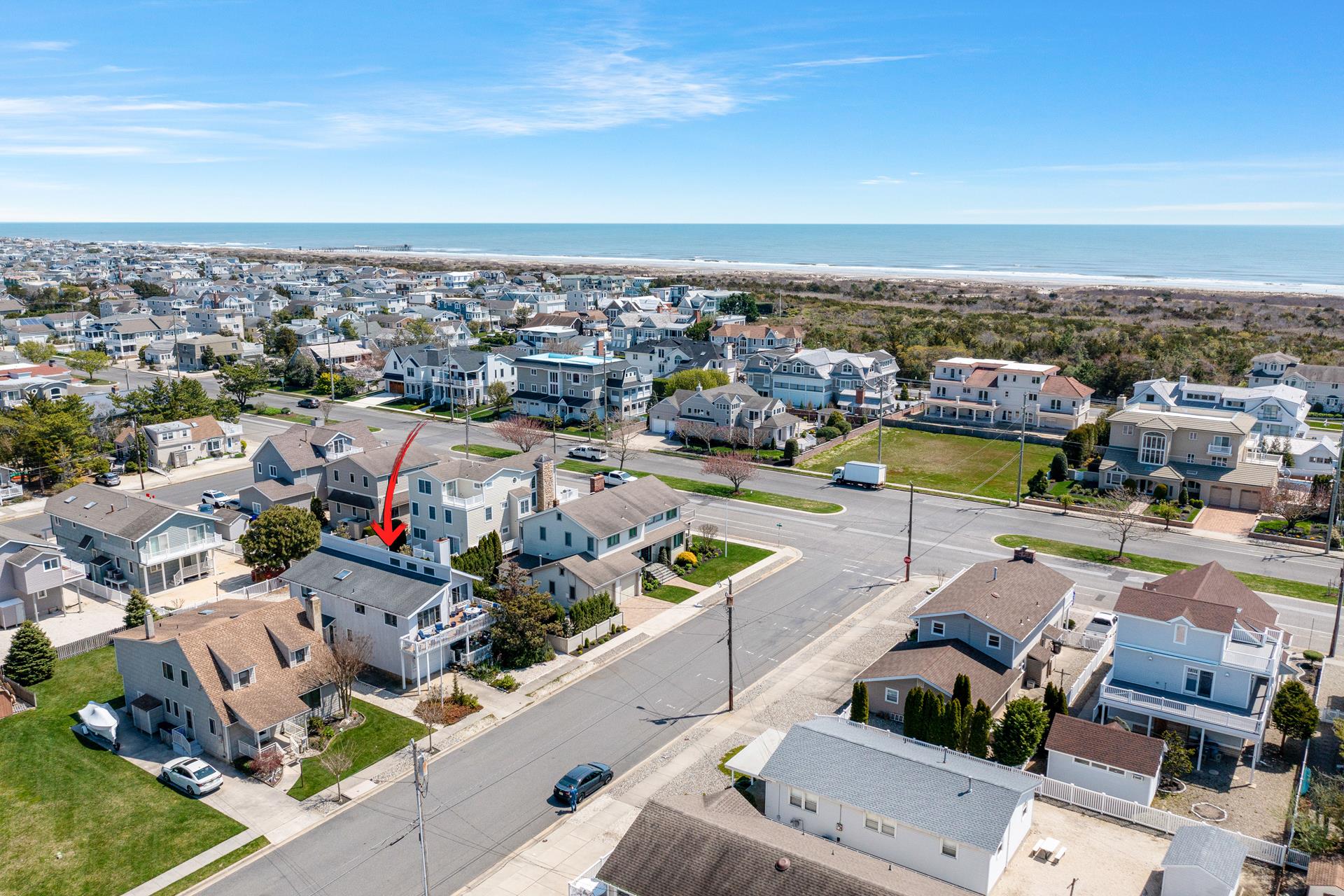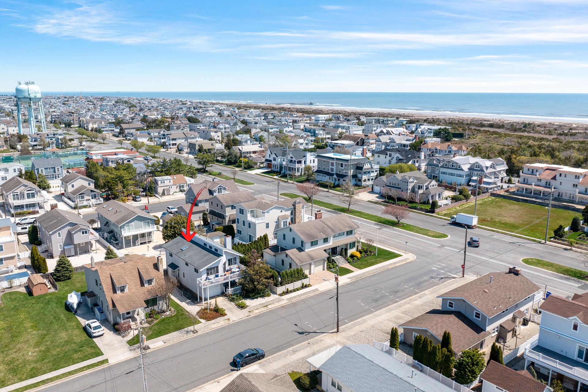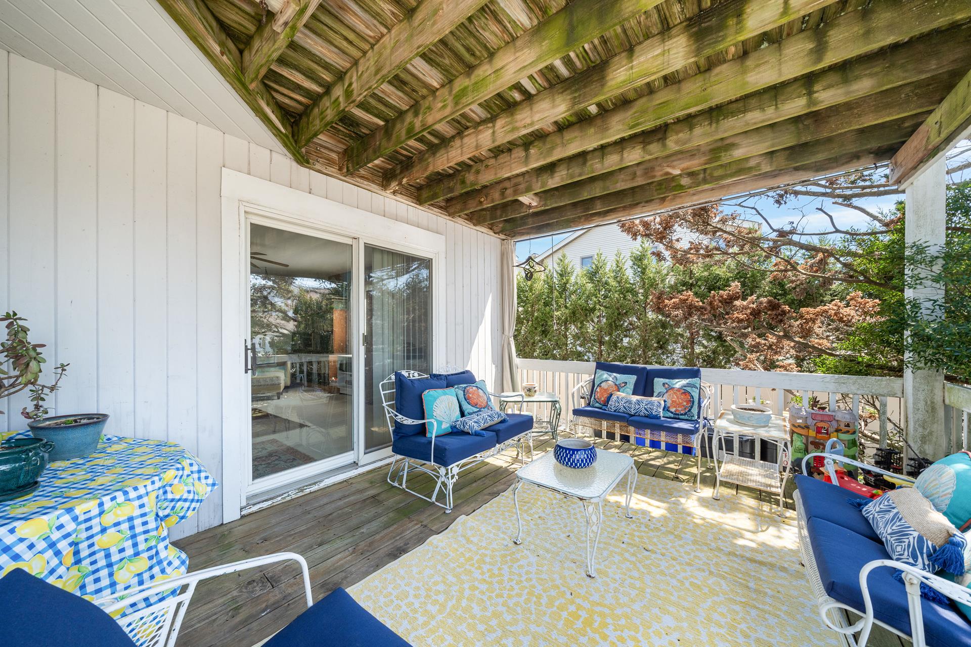 Enjoy the ideal location of this 2 story home located in a quiet Avalon area. Conveniently located on the first floor are 2 large bedrooms (1 w/Full bed & Crib & 1 Queen bed & 1 Twin bed) with a shared full bathroom, large family room with attached deck and laundry room. The second floor includes an open concept floor plan and cathedral ceilings above the entire Great Room, new living room sofa and loveseat, a dining area with enough seating for 10 people and access to the front deck. Also on this floor are 2 bedrooms; one on each rear corner of the home. The Master Bedroom offers its own private deck, a King bed and easy access to its own private bathroom - the bathroom only has an approximate 6 inch step into the shower; convenient for those who are challenged with using a bathtub. The other bedroom offers a Queen bed and a hall bathroom. An outdoor shower, central air, and off-street parking complete the amenities. Just three short blocks to playground, basketball and tennis courts located at 39th St.