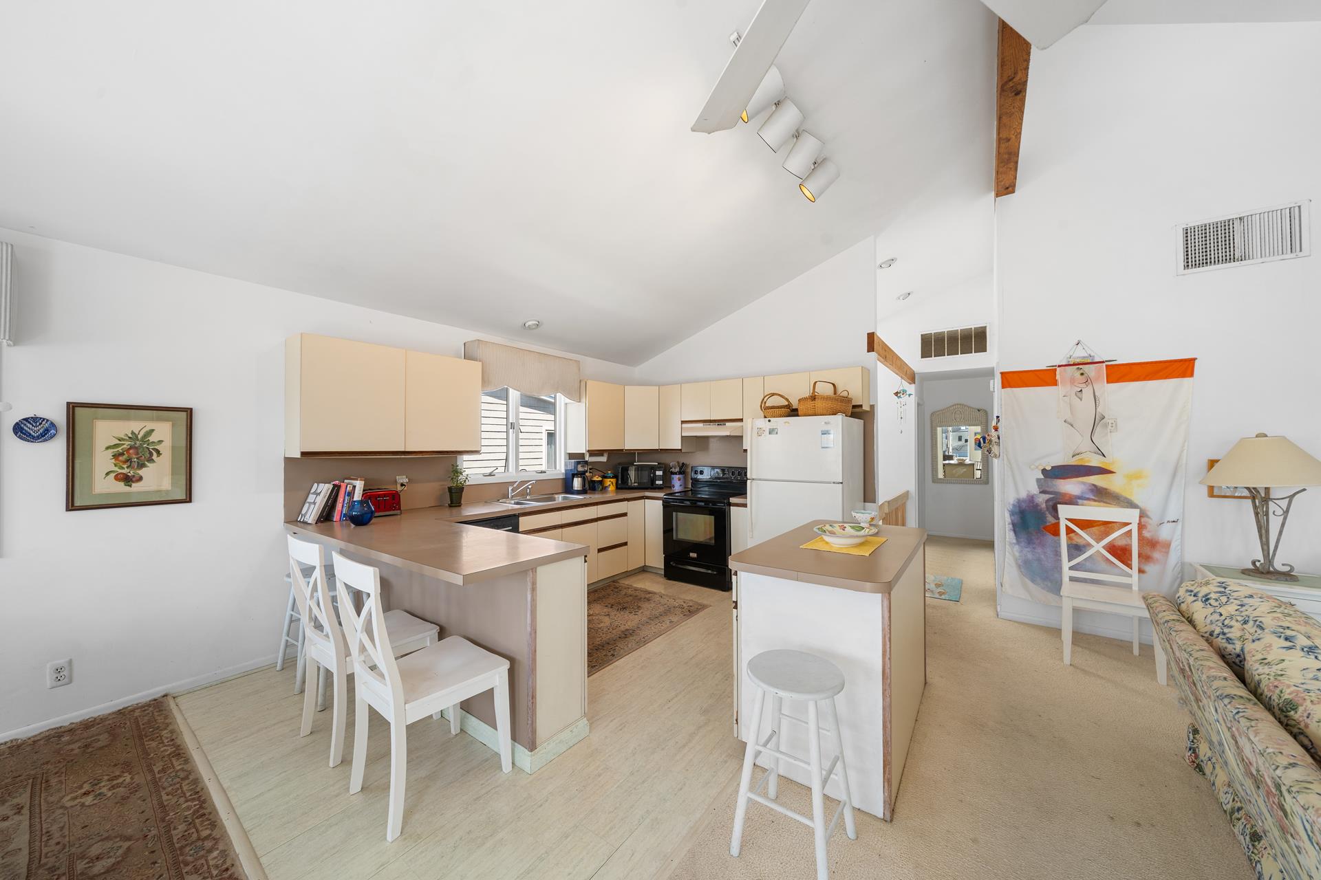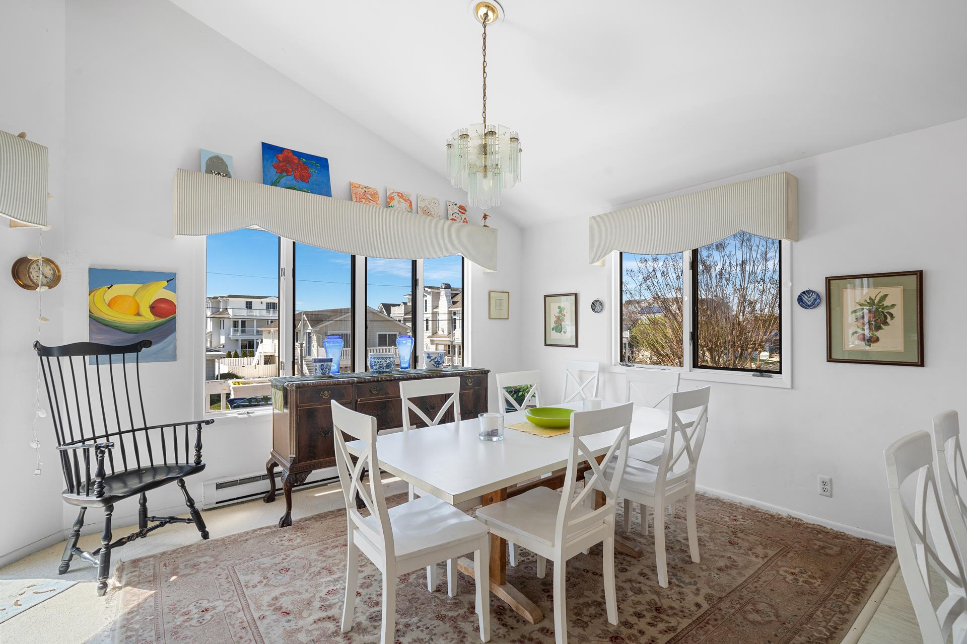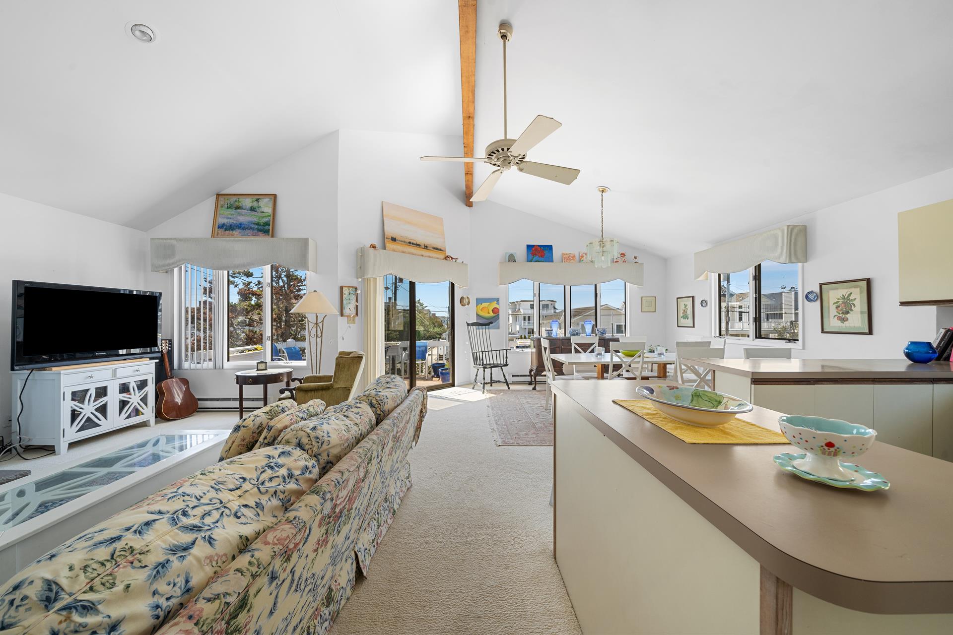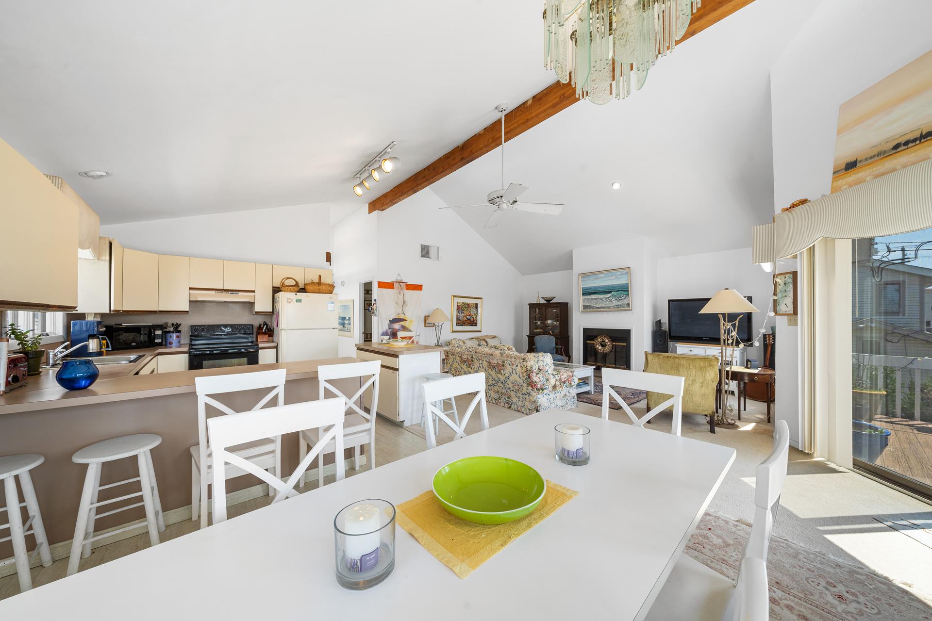 Enjoy the ideal location of this 2 story home located in a quiet Avalon area. Conveniently located on the first floor are 2 large bedrooms (1 w/Full bed & Crib & 1 Queen bed & 1 Twin bed) with a shared full bathroom, large family room with attached deck and laundry room. The second floor includes an open concept floor plan and cathedral ceilings above the entire Great Room, new living room sofa and loveseat, a dining area with enough seating for 10 people and access to the front deck. Also on this floor are 2 bedrooms; one on each rear corner of the home. The Master Bedroom offers its own private deck, a King bed and easy access to its own private bathroom - the bathroom only has an approximate 6 inch step into the shower; convenient for those who are challenged with using a bathtub. The other bedroom offers a Queen bed and a hall bathroom. An outdoor shower, central air, and off-street parking complete the amenities. Just three short blocks to playground, basketball and tennis courts located at 39th St.
