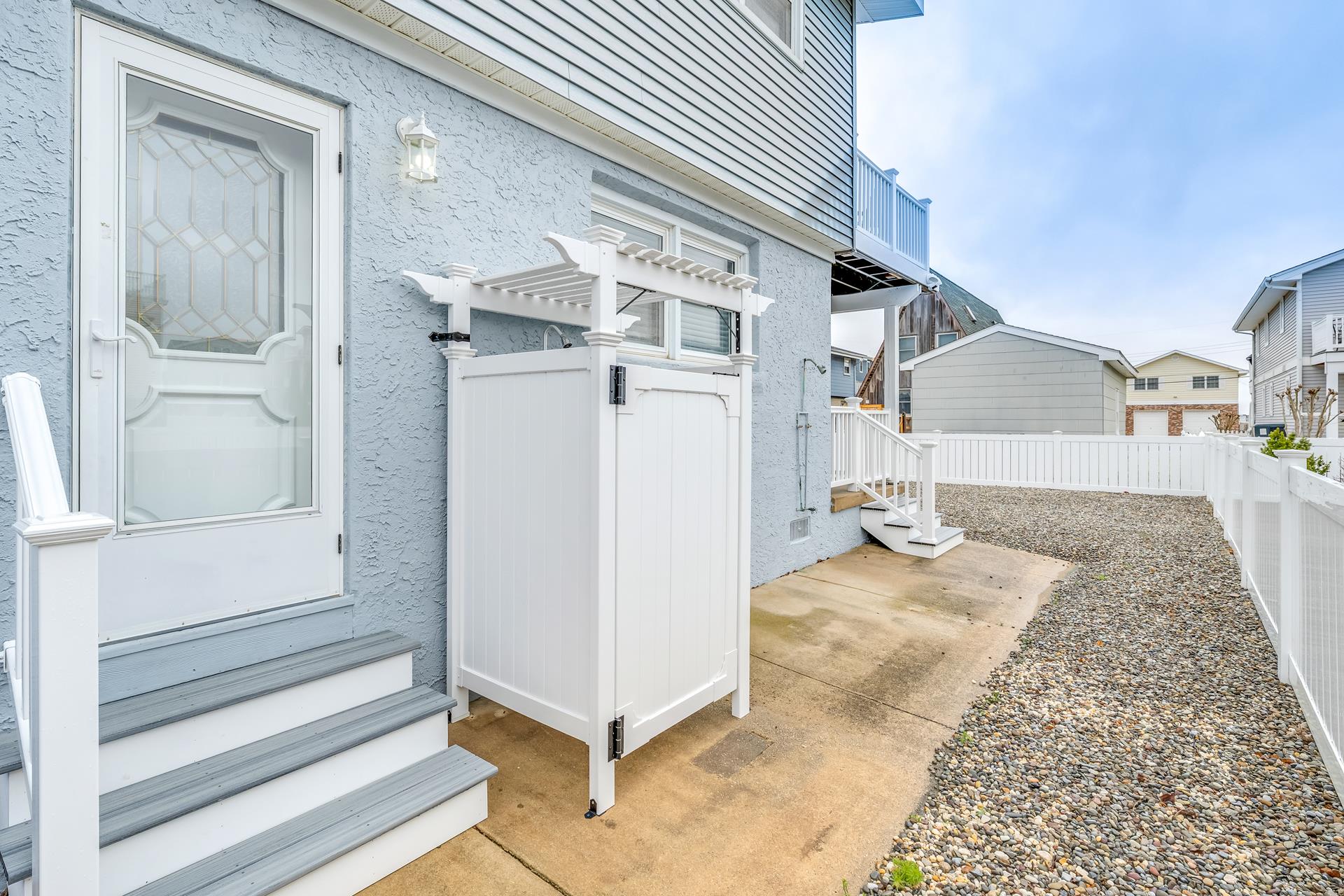 Additional amenities include an outdoor shower, perfect for rinsing off after a day at the beach or exploring the area.