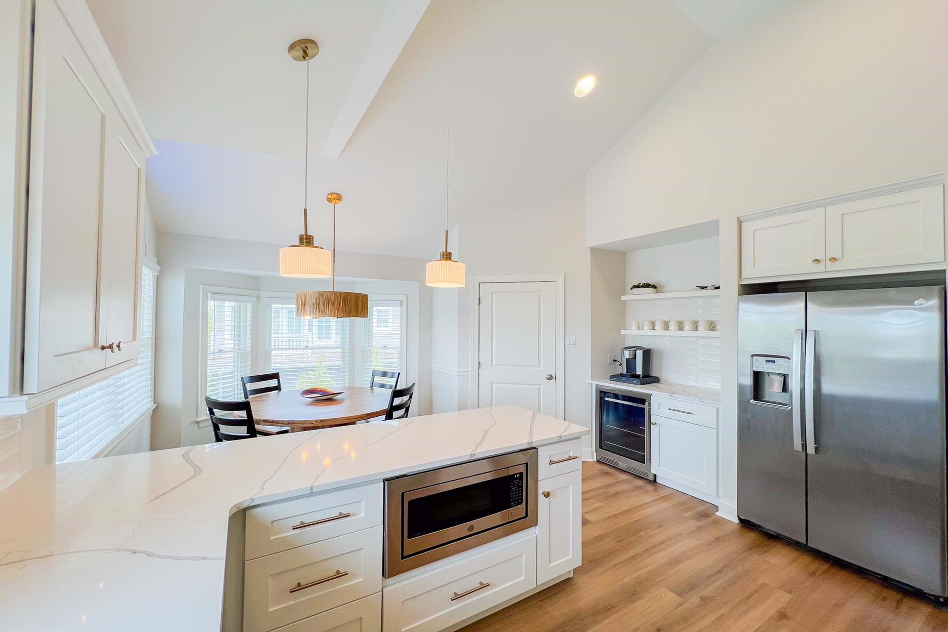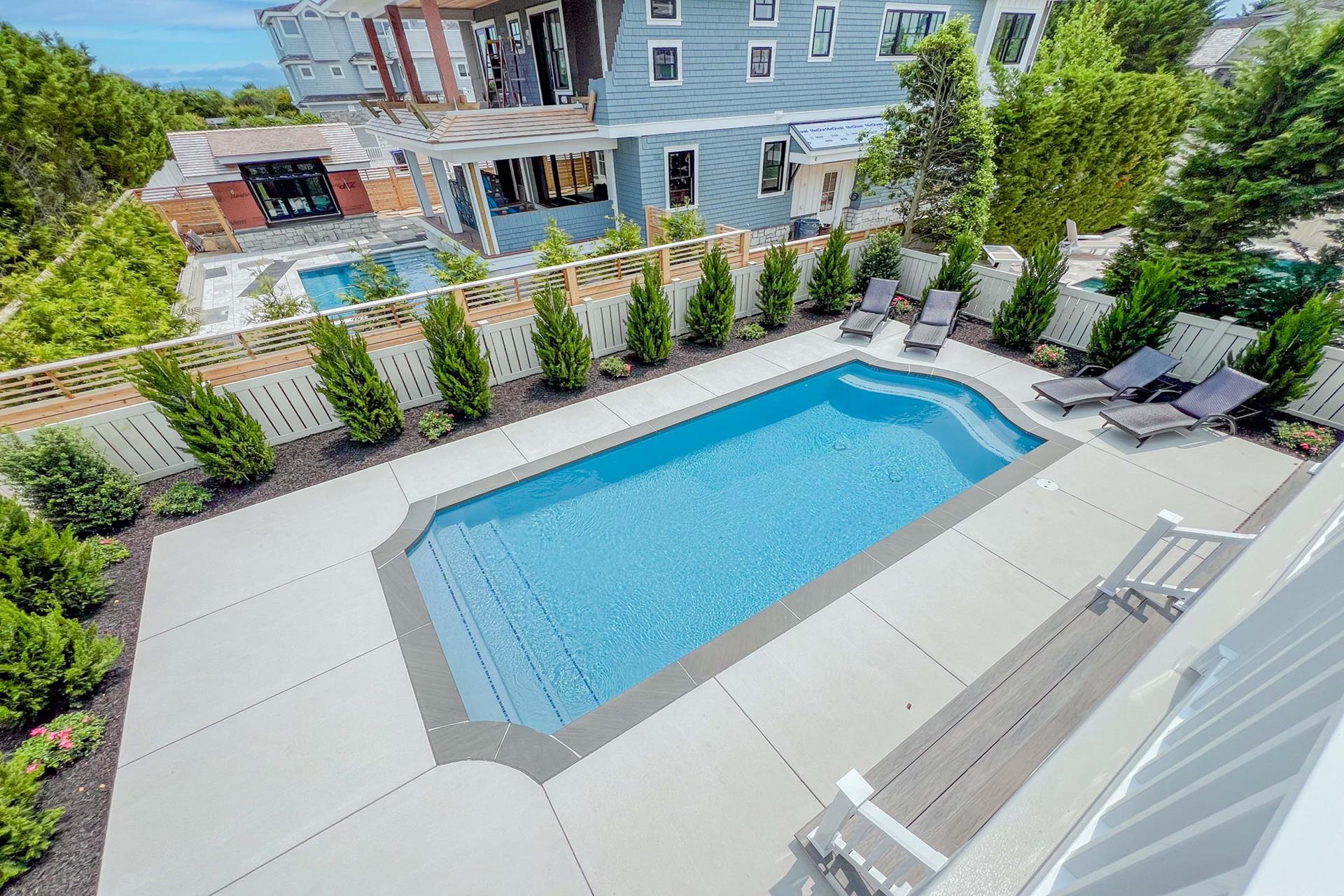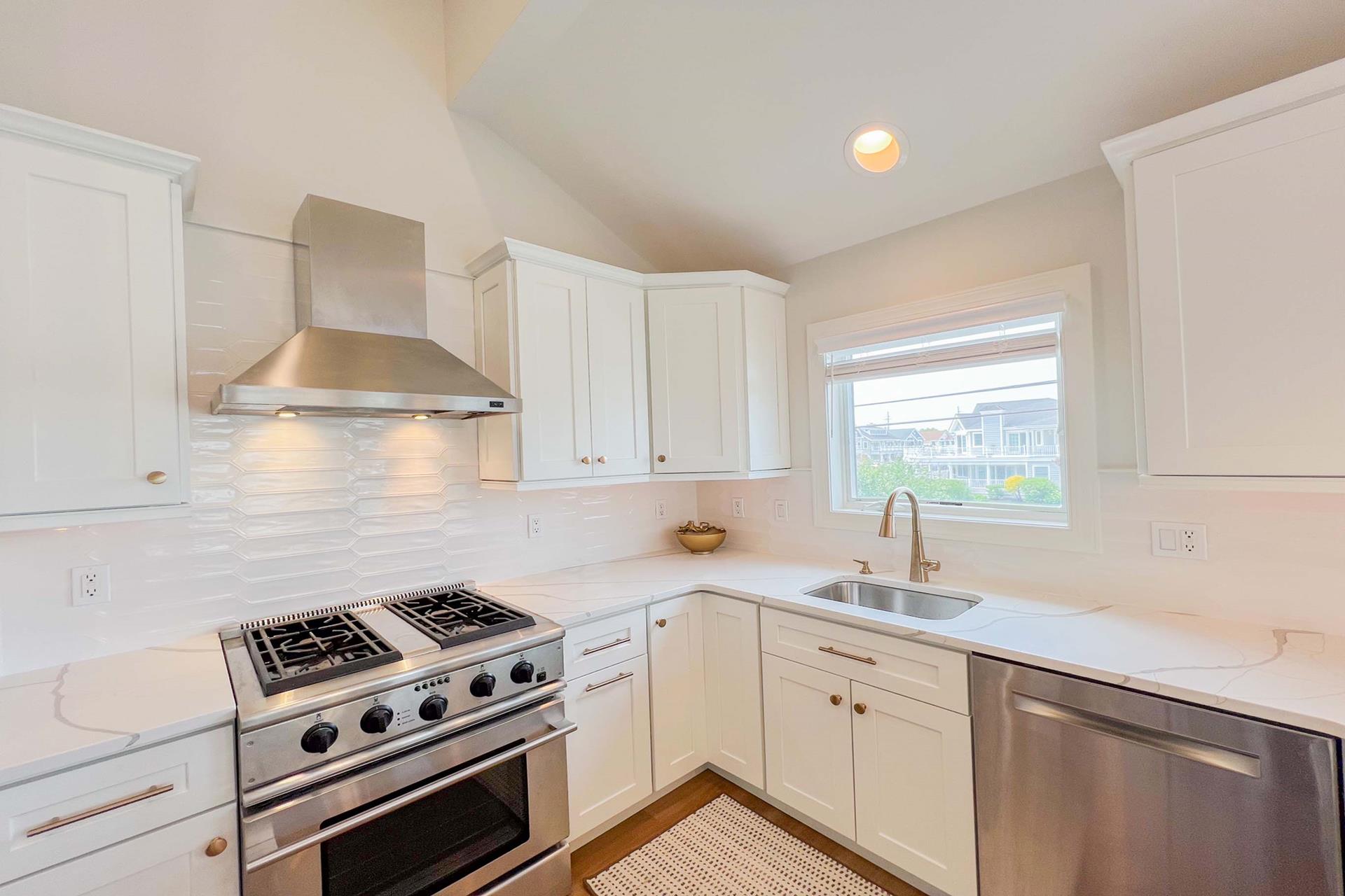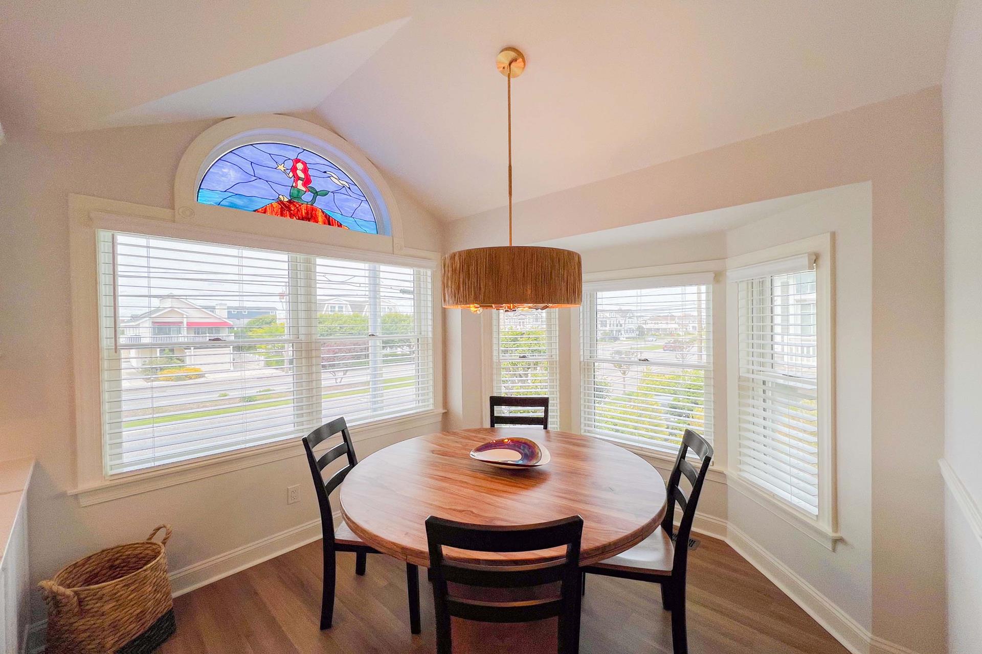 Beachblock home with pool. The home features 5 bedrooms, 4 baths and sleep 10. The second floor offers a fully furnished kitchen with stainless steel appliances, coffee bar with beverage center, full pantry, quartz countertops and tile backsplash, tile flooring, eat in nook and more. The Great room will have sectional sofa, lamps, side tables and TV. The second floor has one bedroom with a king bed and private bath and another with a queen bed along with a hall bathroom. The first floor has 2 bedrooms one with a queen and one with 2 twin beds. There is a hall bathroom and laundry room. The third floor is exclusive to the master bedroom with king bed and master bath with shower, tub, double sink vanity and quartz counters. A great home to come make memories.