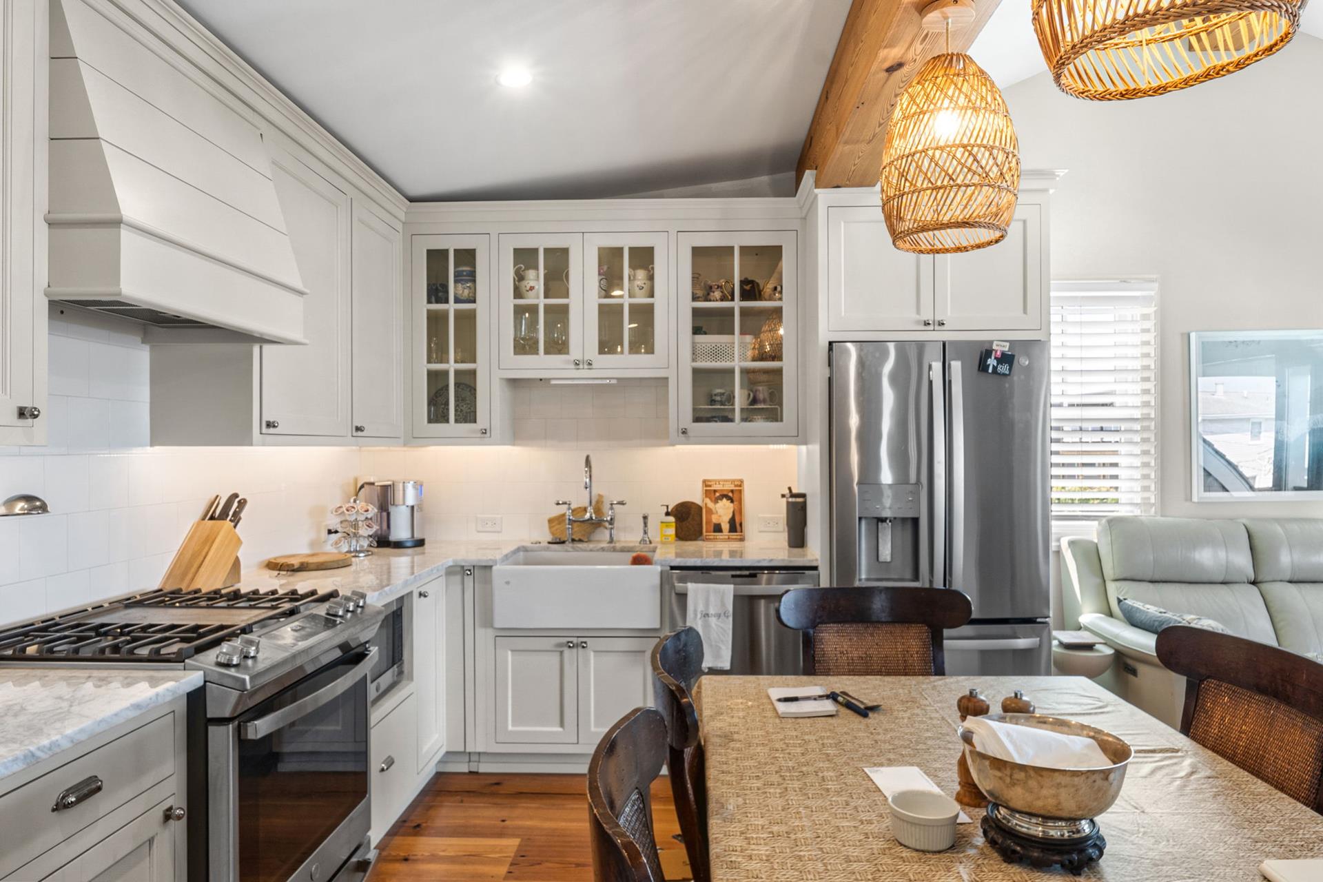 Treat yourself to this one-of-a-kind carriage house with BAY VIEWS! This completely renovated single family home offers a garage on the ground level, and two levels of living space above. The first floor features 3 bedrooms and 2 full bathrooms. The second floor is dedicated entirely to the kitchen and living area, and also includes a convenient powder room. Off of the living room is a spacious deck overlooking Princeton Harbor!