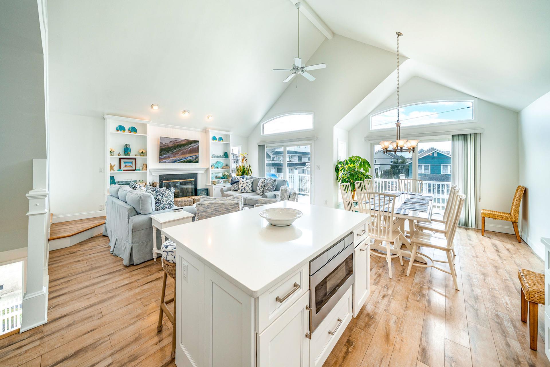 Inside, you’ll find a fully equipped kitchen featuring a dishwasher, microwave, disposal, toaster, stove, and Keurig coffee maker—ideal for preparing meals and entertaining. Central air conditioning, gas heat, a washer and dryer, and ceiling fans throughout the home ensure a comfortable stay in every season.
