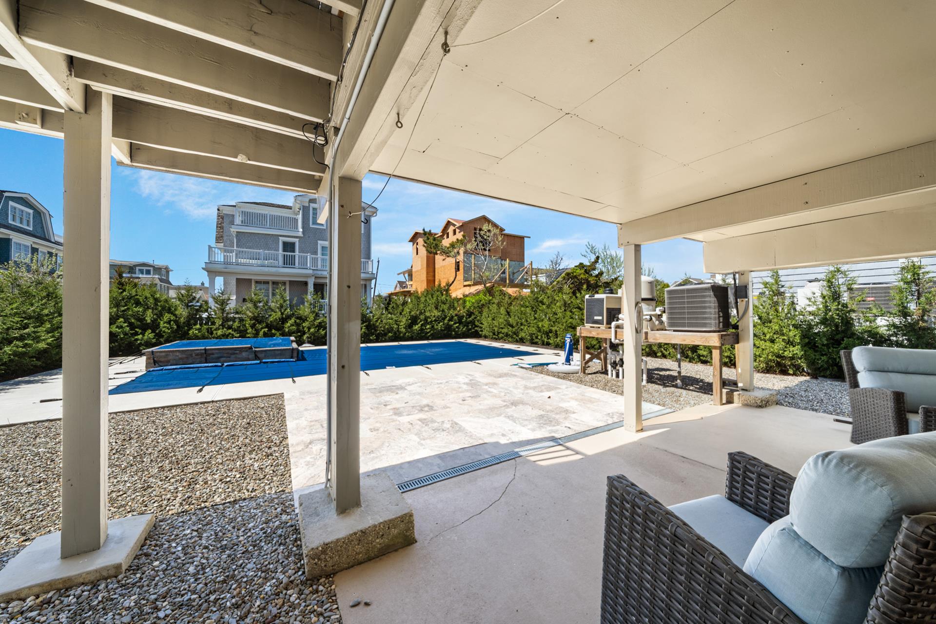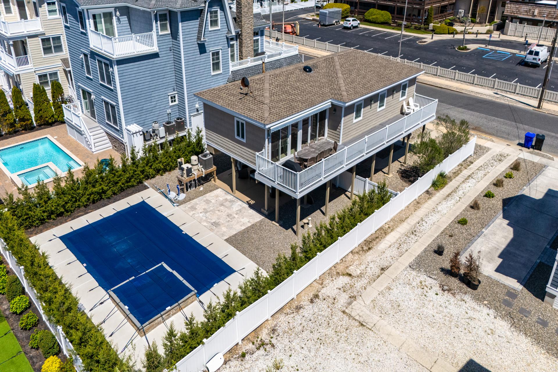 Take advantage of this uncommon opportunity to rent a home located next to the oceanfront AND with a beautiful pool & patio area! The fantastic location is literally just steps to the beach path and an easy stroll three blocks from Avalon‘s Business District! The property is a welcome alternative to the huge newer homes that also offer great views & a pool, yet at more than double the price! Being so close to the beach, you’ll be mesmerized by the soothing sight & sounds of the ocean. The first floor of the home features a storage room, a full bathroom, and laundry room with a door providing access to the beautiful (and nearly new) pool, raised spa & patio area. PLEASE NOTE that the spa is NOT heated separately and will be similar temp as pool. The southern exposed patio allows you to soak up the sun, and there’s also a sizable shaded area underneath the home, overlooking the pool. There’s off-street parking for at least two vehicles and a fenced rear yard. The second floor of the home, features four bedrooms, one bathroom, and the living, dining and kitchen area in the rear of the property. You can see the ocean from the living area! Sliding doors, provide a refreshing breeze and convenient access to an enormous ocean view deck that runs along the entire beach-side of the property! Act now and enjoy!