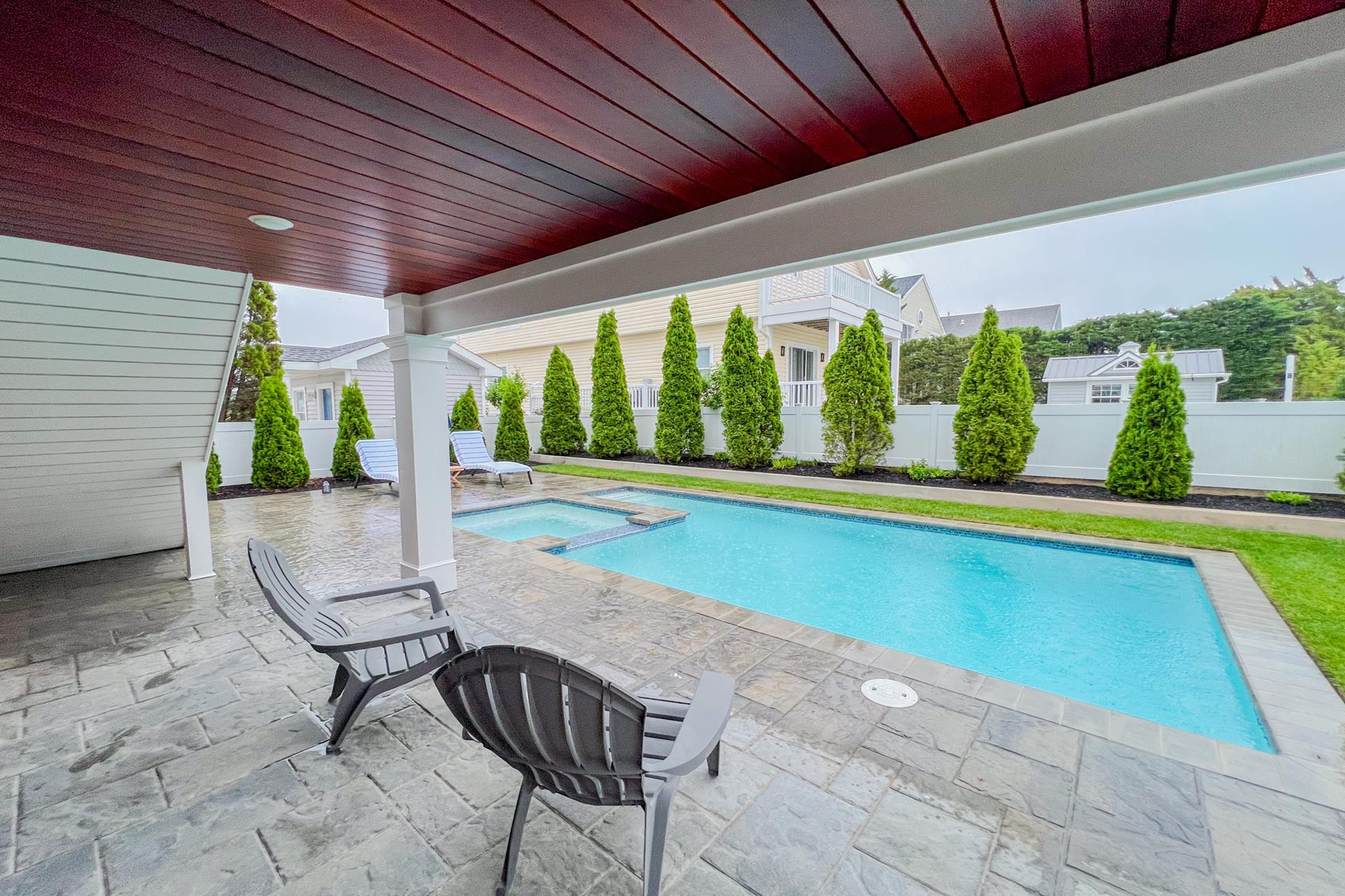 Custom built by Tom Welsh Builders this floor plan includes 6 bedrooms and 5.5 baths with swimming pool. First floor has 2 bedrooms with ensuite baths, 2 bedrooms with access to Hall Bath: laundry / utility room and a Family room with wet bar and access to the deck overlooking the in-ground heated swimming pool. The two west facing bedrooms have access to the covered first floor deck, The second floor features a large Great Room with vaulted ceilings, large dining area and kitchen with a center isle and large pantry. There is a powder room off the Great room. The second floor also has two bedrooms each with their own private baths. Other highlights - keurig, propane bbq, 2 televisions (living room and family room) using youtube TV and garage access.