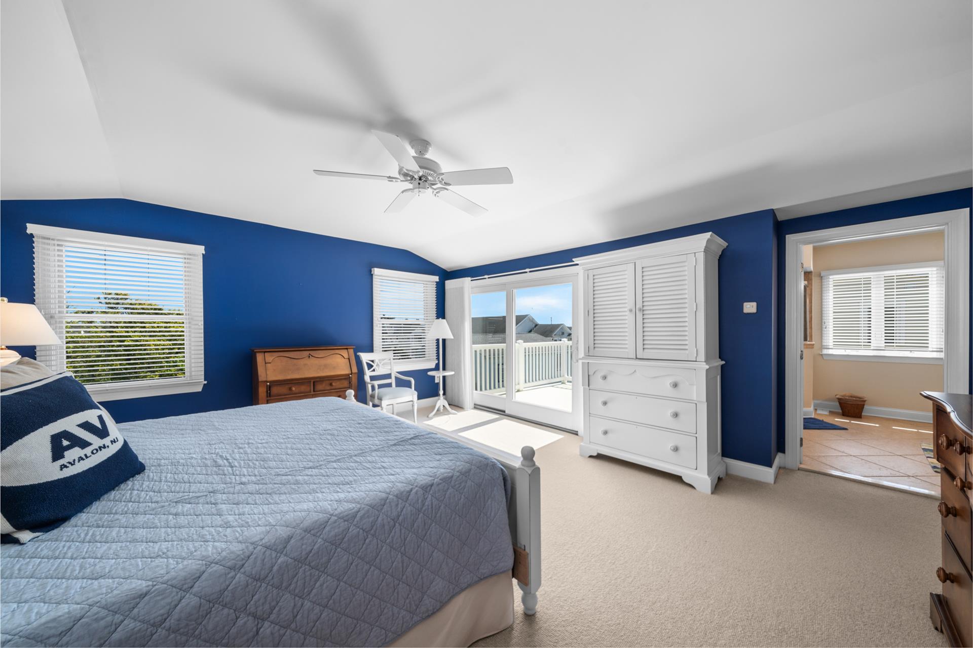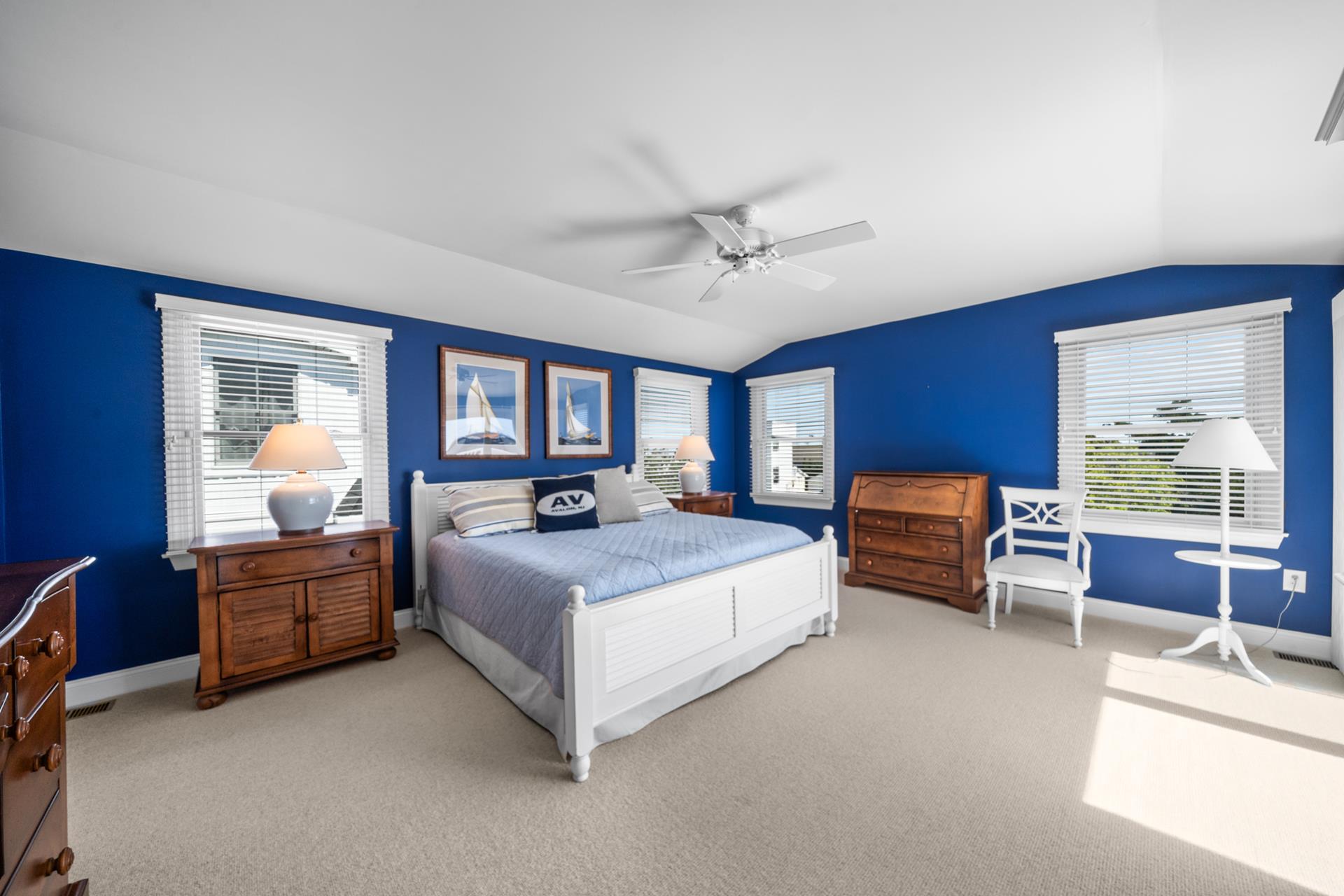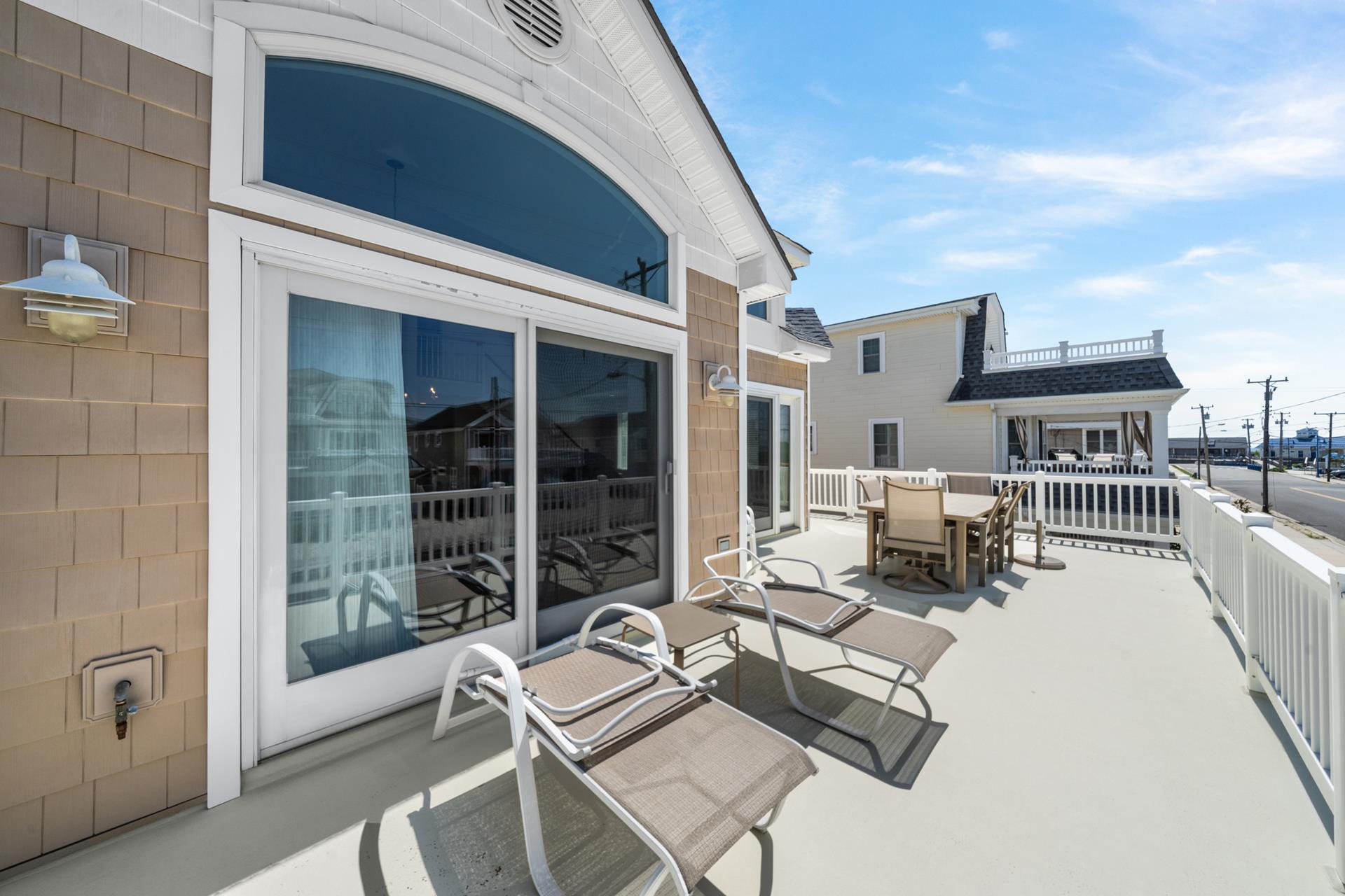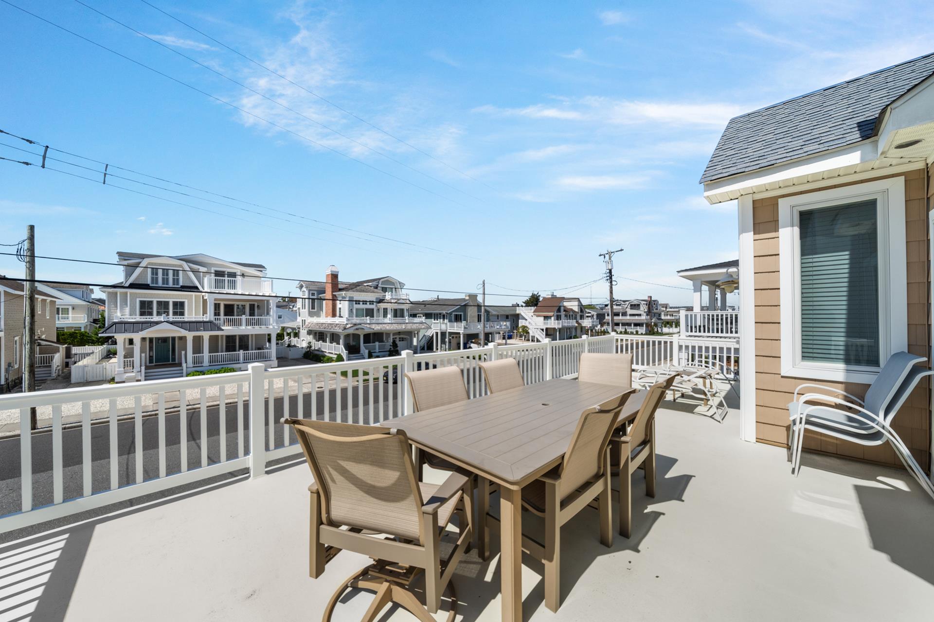 This beautiful single family home features an inviting blend of luxury and coastal living, just steps away from the great Avalon beaches, Public Recreation and Town! This home features 5 bedrooms, 4 bathrooms, two Living Areas, ocean views, Pool/Patio area and a Garage to store your beach gear and bikes. You'll appreciate the abundant outdoor living space offering your choice of sun or shade from three decks and a huge pool & patio area! The First Floor offers a Family Room with a sliding door providing convenient access to the large covered deck, two spacious bedrooms one with a king bed and the other with 2 queen beds, a hall bathroom, a wet bar with built-in cabinetry, a beverage fridge, ice maker, and prep sink, a Laundry Room and access to the Garage where you will find enough space to store all your bikes and beach gear. As you walk upstairs to the 2nd level, you are greeted with an inviting open layout with a soaring cathedral ceiling, a Living Room, a large Kitchen with counter seating for five, and a Dining Area. Multiple sliding doors offer access to your expansive deck, where you can enjoy ocean views while relaxing, sunning, or entertaining friends and family. You will also find two more bedrooms, one with its own private bathroom and 2 queen beds and the other bedroom with 2 twin beds, and a hall bath. The Third Floor boasts a luxurious Primary Suite with a king bed, a private bathroom and deck with ocean views that also overlooks pool/patio. There's plenty of indoor and outdoor space for family and friends and the prime Park-n-Walk location is within walking distance to everything! Don't miss your chance to rent this incredible home for you families vacation. Please note that this home is a Friday to Friday Rental!!