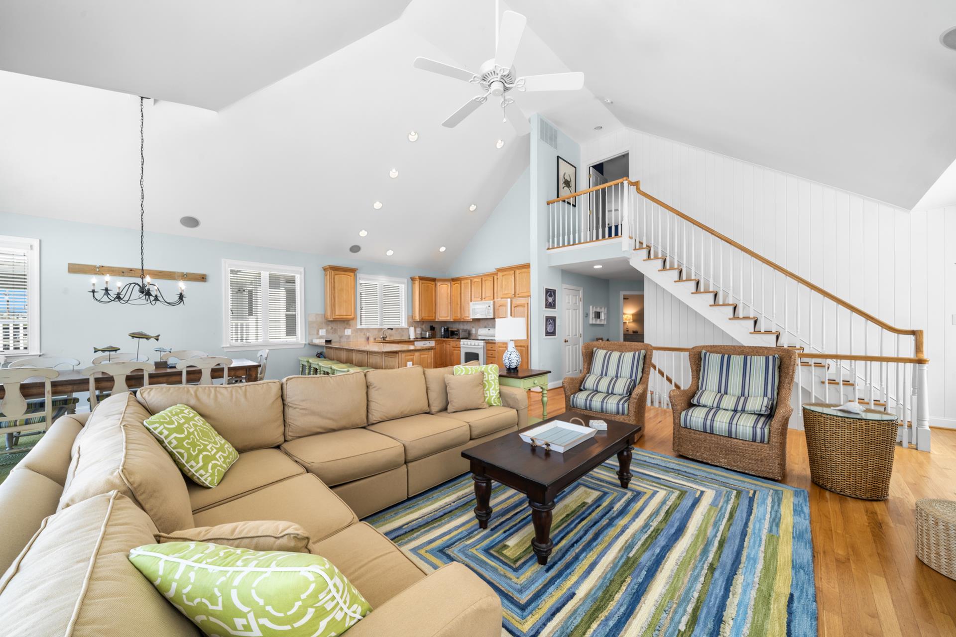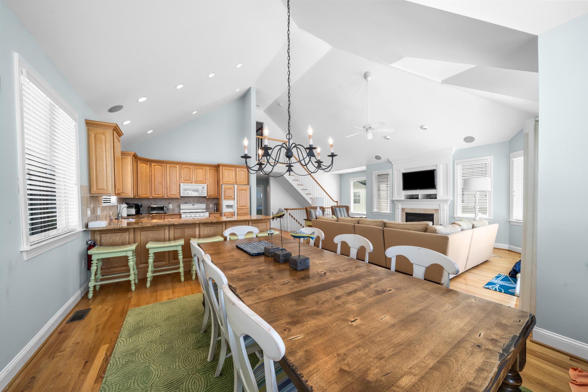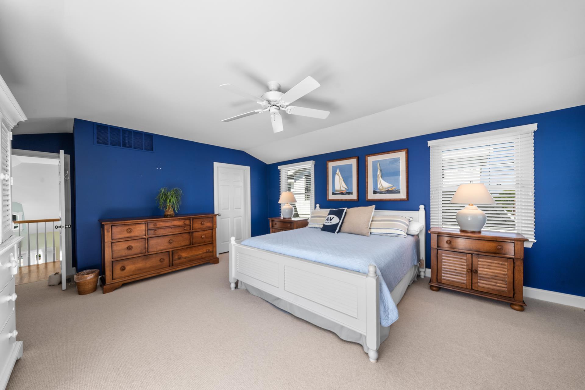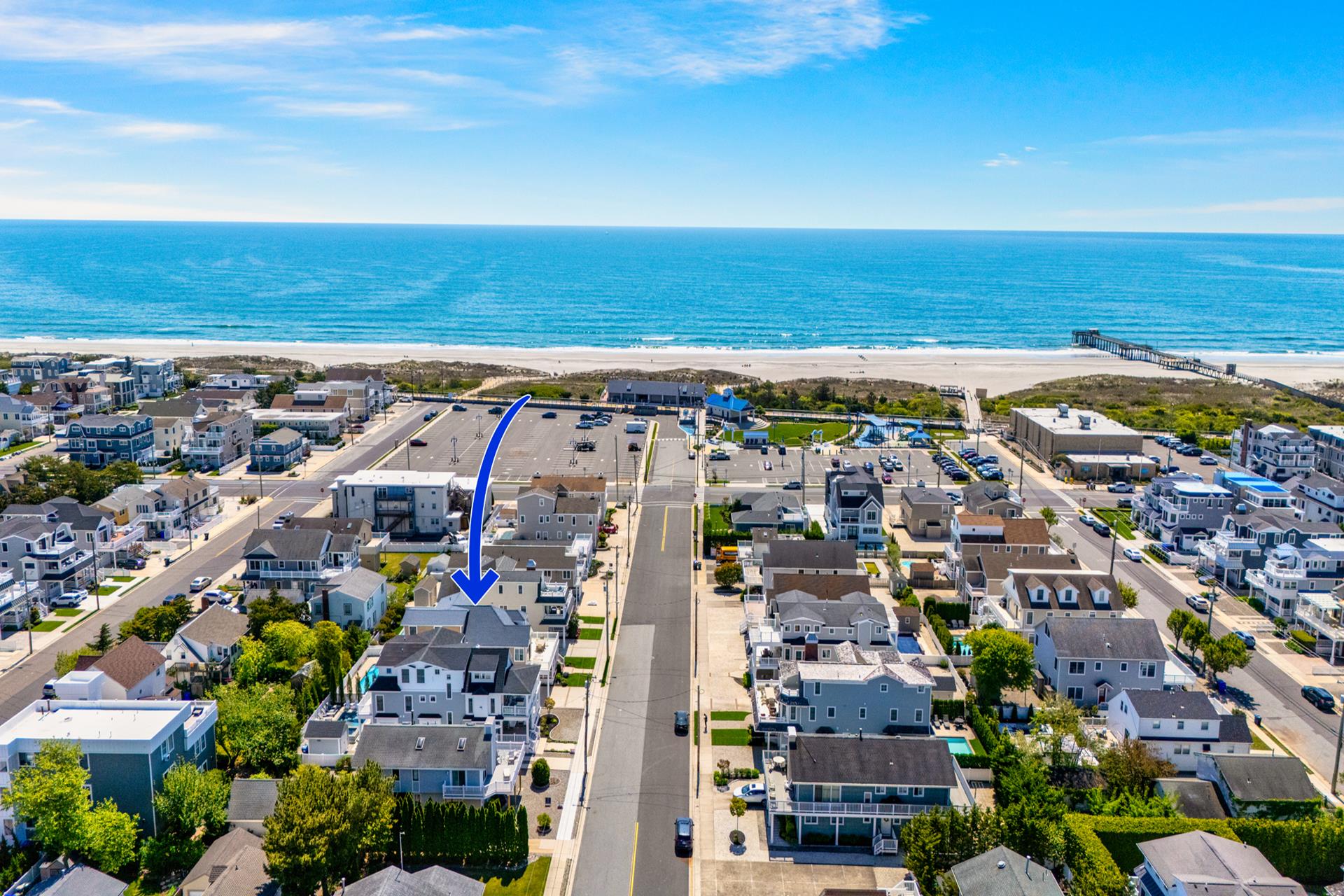 This beautiful single family home features an inviting blend of luxury and coastal living, just steps away from the great Avalon beaches, Public Recreation and Town! This home features 5 bedrooms, 4 bathrooms, two Living Areas, ocean views, Pool/Patio area and a Garage to store your beach gear and bikes. You'll appreciate the abundant outdoor living space offering your choice of sun or shade from three decks and a huge pool & patio area! The First Floor offers a Family Room with a sliding door providing convenient access to the large covered deck, two spacious bedrooms one with a king bed and the other with 2 queen beds, a hall bathroom, a wet bar with built-in cabinetry, a beverage fridge, ice maker, and prep sink, a Laundry Room and access to the Garage where you will find enough space to store all your bikes and beach gear. As you walk upstairs to the 2nd level, you are greeted with an inviting open layout with a soaring cathedral ceiling, a Living Room, a large Kitchen with counter seating for five, and a Dining Area. Multiple sliding doors offer access to your expansive deck, where you can enjoy ocean views while relaxing, sunning, or entertaining friends and family. You will also find two more bedrooms, one with its own private bathroom and 2 queen beds and the other bedroom with 2 twin beds, and a hall bath. The Third Floor boasts a luxurious Primary Suite with a king bed, a private bathroom and deck with ocean views that also overlooks pool/patio. There's plenty of indoor and outdoor space for family and friends and the prime Park-n-Walk location is within walking distance to everything! Don't miss your chance to rent this incredible home for you families vacation. Please note that this home is a Friday to Friday Rental!!