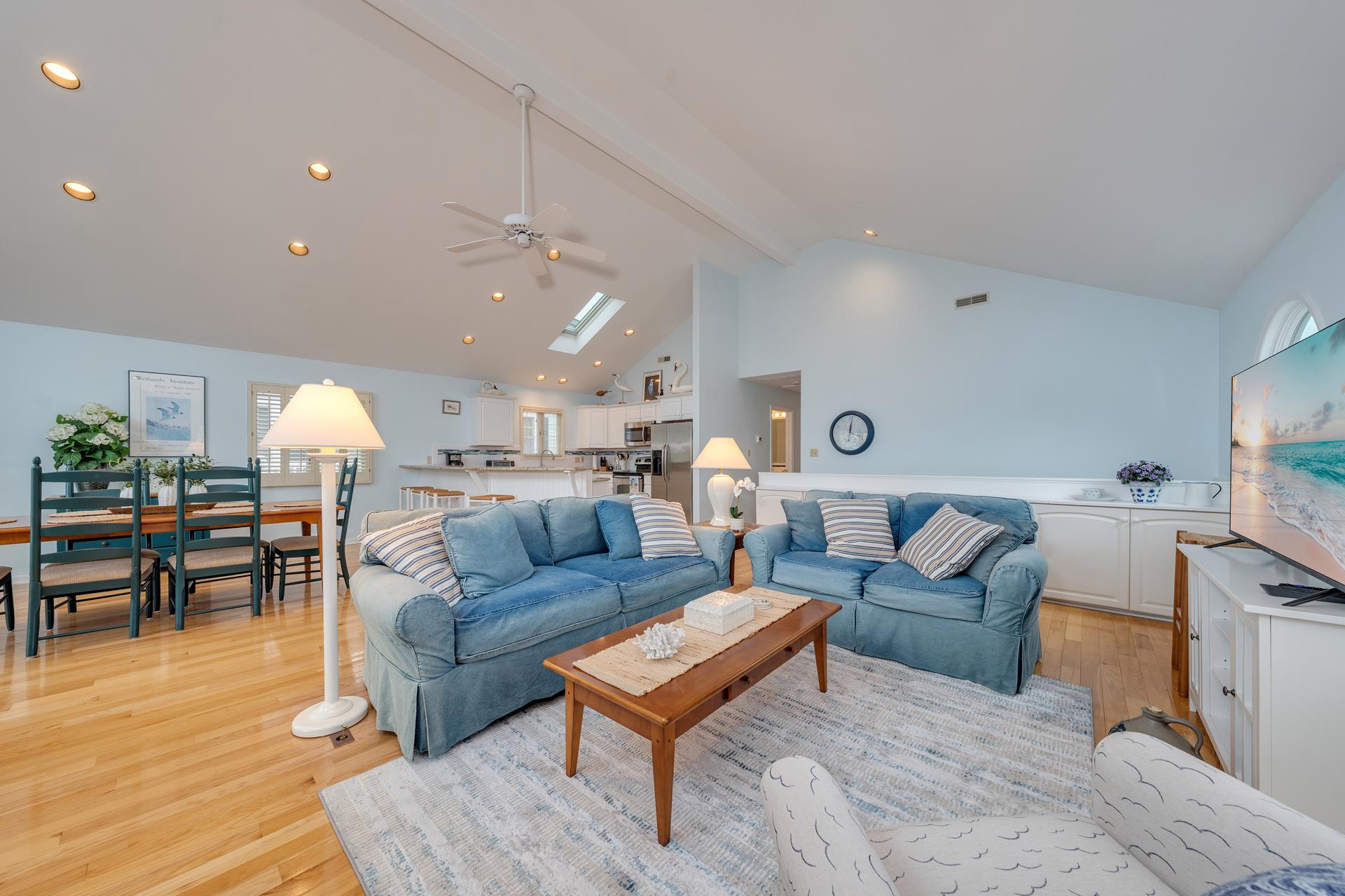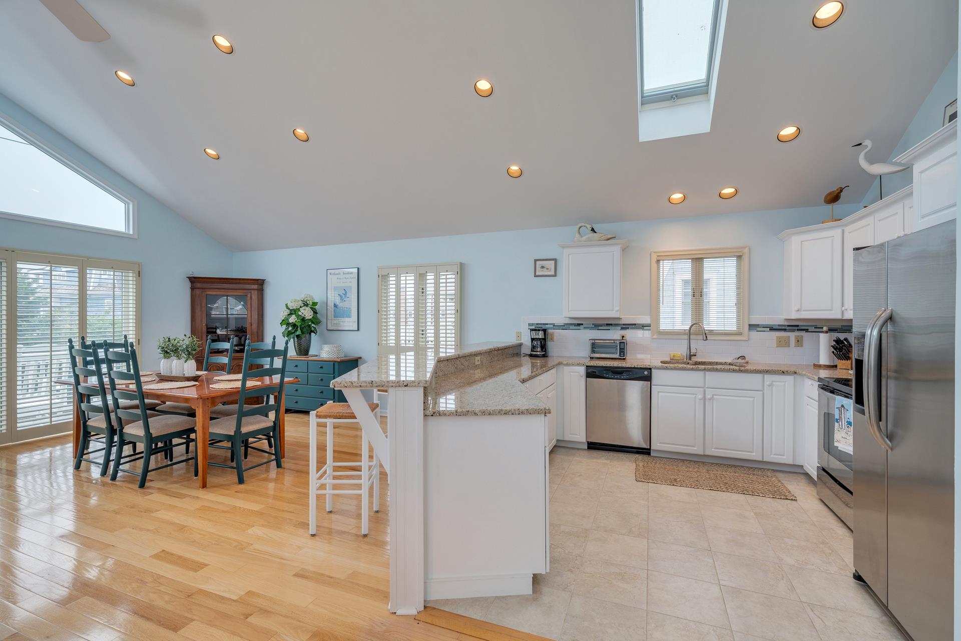 Southend Beauty. This 2 story 4 bedroom 3 bath Avalon Upside Down style home is located in the most in demand part of the island. This often sought after southend location offers a short 2 block walk to the beach only crossing 1 street making it fast and easy for the whole family. This part of the island offers the largest beaches with the least amount of people making for an always enjoyable day on the beach. The first floor has a spacious family room, 2 bedrooms and a full bath along with the laundry room. Moving up to the 2nd floor step in to the great room with cathedral ceilings which is comprised of the living room, dining area and kitchen with plenty of seating including 6 stools at the eat in kitchen bar. The primary bedroom with its own private bathroom and private deck with an awning and an additional bedroom along with another full bathroom complete the second floor. Spend many an afternoon after a day at the beach relaxing on the massive deck offering a peak of the bay under another awning to keep everyone comfortable as the sun sets. Plenty of room outside to grill up your favorite foods. Garage and off street parking are also available which is a bonus especially for the large families.