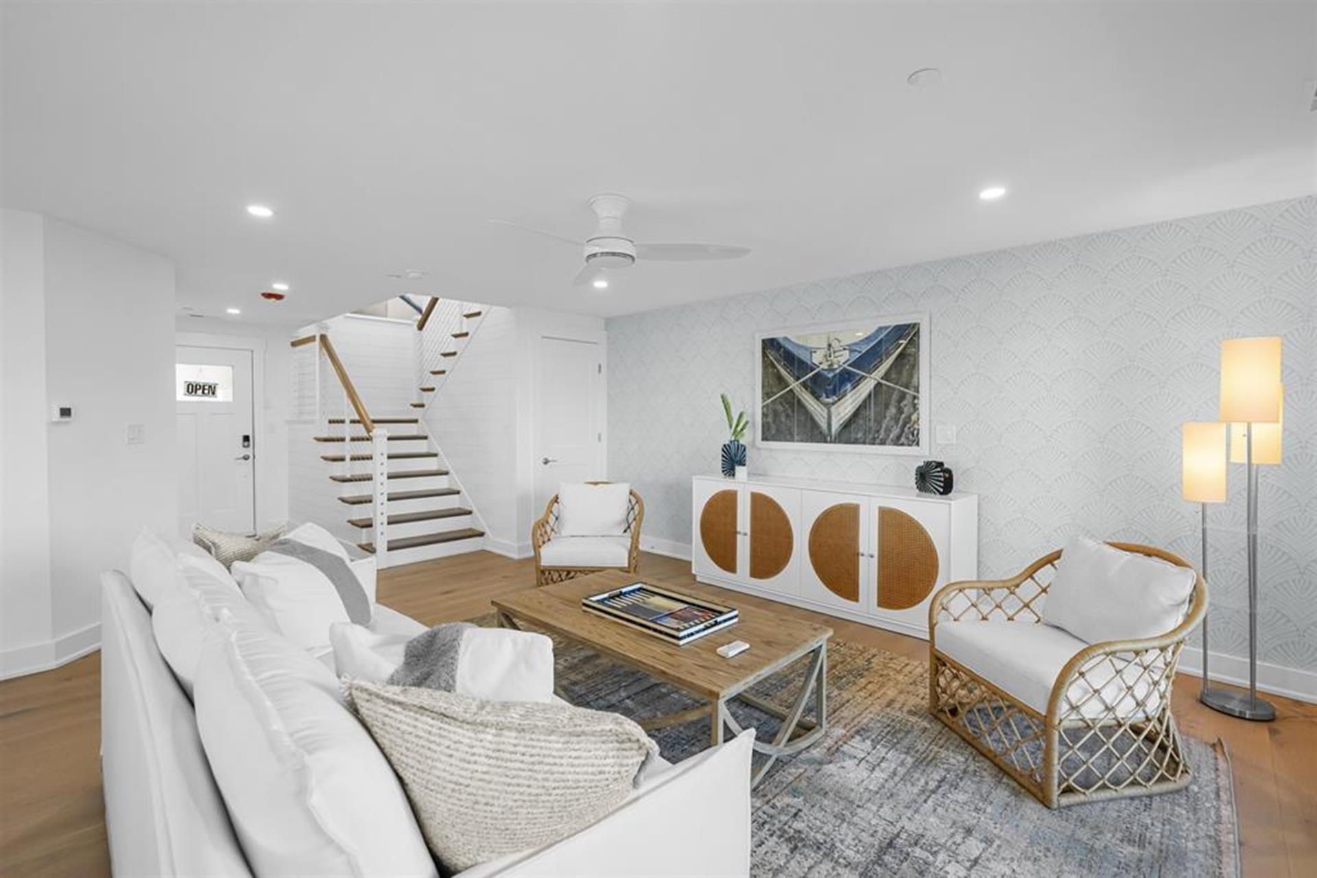 3 bedrooms, 3.1-bathrooms in the Avalon business district sleeping 6. This corner townhome unit by Rockwell Coastal Construction boasts high-end finishes and a bright, open layout that’s perfect for relaxed beachside living. The large living area flows seamlessly into the modern kitchen and dining space, creating a perfect setting for entertaining or enjoying quiet moments. Step outside to your private deck, whereyou can bask in the afternoon sun and enjoy stunning sunsets over the horizon. This home offers flexible living with a large bedroom and full hall bathroom on the first floor, ideal for guests or as a private retreat. Upstairs, you'll find a second bedroom with its own ensuite bath, providing added comfort and privacy. The luxurious primary suite, also on the second floor, features an expansive layout and a private deck, perfect for relaxing in style and enjoying coastal breezes. Additional highlights include engineered hard wood flooring, quartz countertops, and a top-of-the-line Wolf 36” 6-burner gas range. The unit also offers ceiling fans, recessed lighting, and premium fixtures throughout. Convenience is key with direct elevator access to the covered balcony, and the unit comes with two assigned off-street parking spots. Whether you’re just steps from the beach or enjoying the shops and dining in town, you’ll love the convenience of never needing your car. Come and enjoy the beach in this great condo.