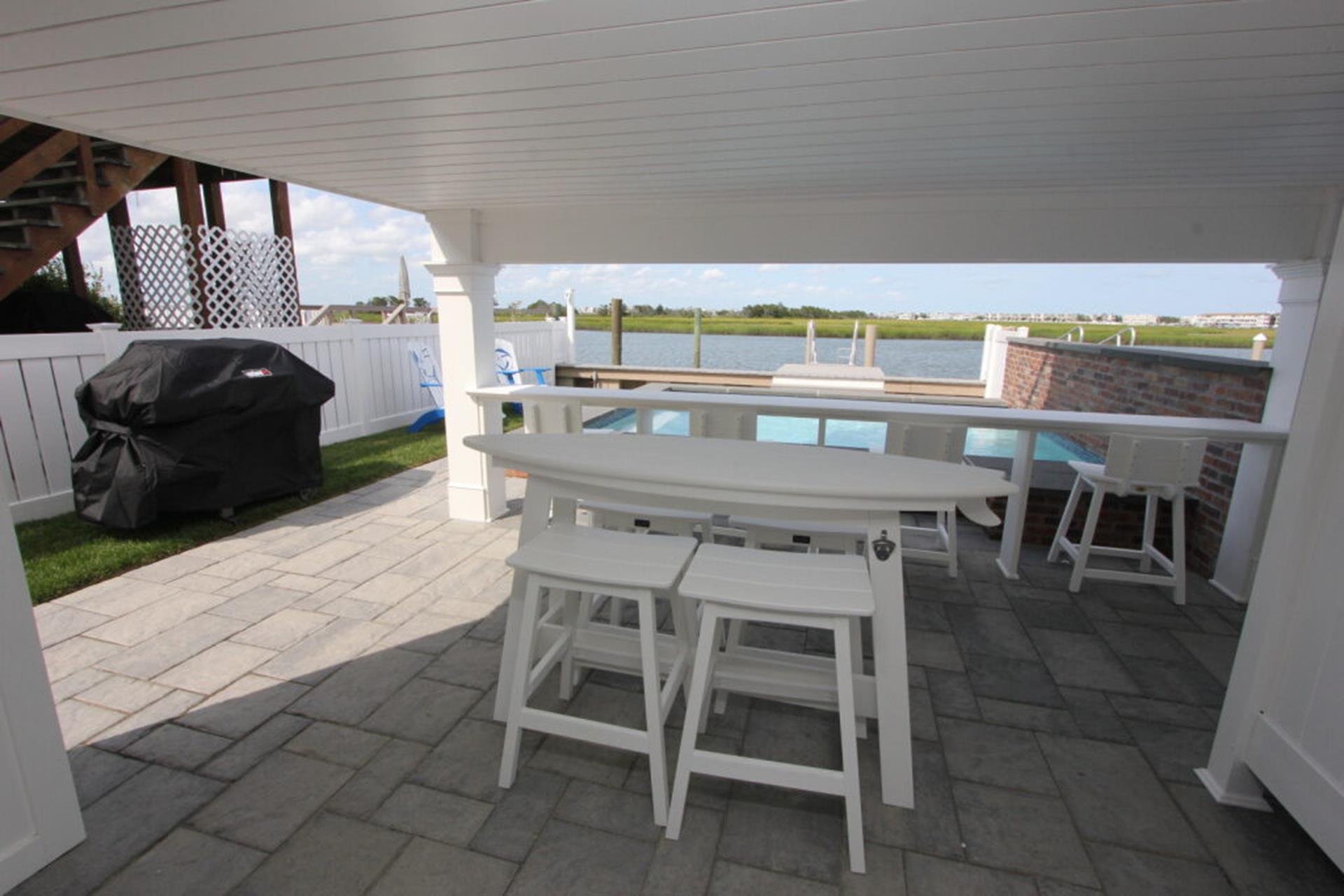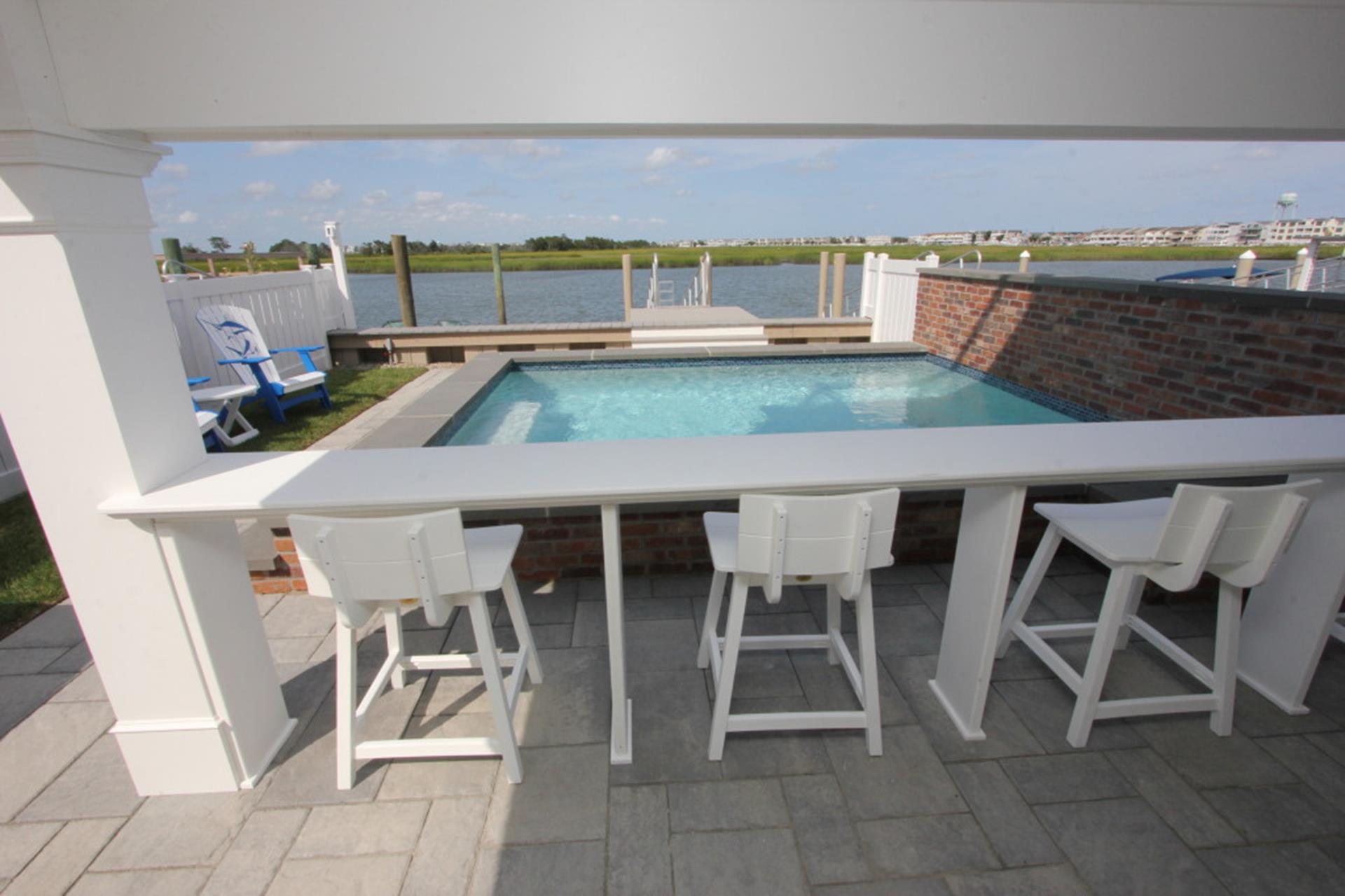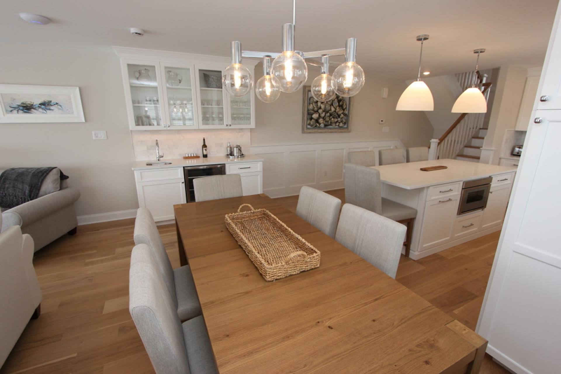 Brand new bayfront townhome where luxury meets unparalleled views and convenience. This remarkable fully furnished property boasts sensational living spaces adorned with high end finishes, perfectly combining sophistication and functionality. Enjoy seamless access to both the town center and the allure of bayfront living, making this a prime location in a great family neighborhood. From the ground level to all three stories, you will be captivated by the expansive views of the bay. The first floor features two well-appointed bedrooms and full bathroom. Ascend to the second floor, where the open concept entertaining space invites you to gather. The large kitchen is equipped with top of the line appliances, custom cabinetry and an expansive island. The dining area is designed around a stunning floor to ceiling wet bar, with beverage fridge and additional custom cabinetry. Relax in the bay side living area with massive sliding door that frames breathtaking bay views. Two generous street side bedrooms each provide access to their own full bathroom. The third floor is dedicated exclusively to the opulent primary suite, featuring a luxurious bathroom, spacious walk in closet and a private deck with the most stunning views the home offers. Step outside to discover your private oasis, where a heated in ground pool overlooks the bay. The raised foundation not only enhances views but also provides ample off street parking and storage. With its array of features, this townhome stands out as one of the finest bayfront rentals. Reach out to your agent regarding off season weekly and weekend rates.