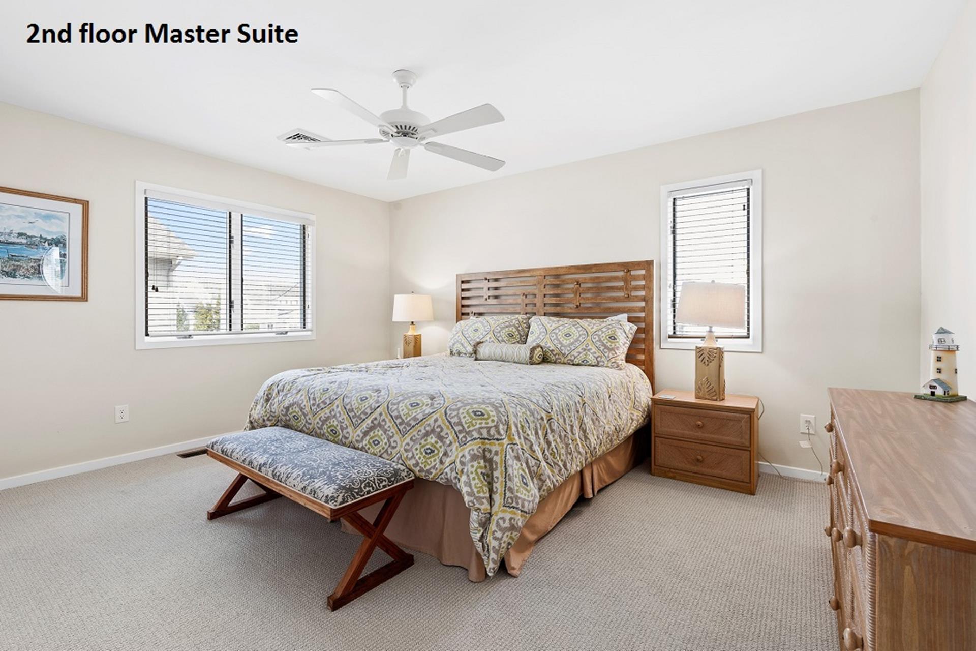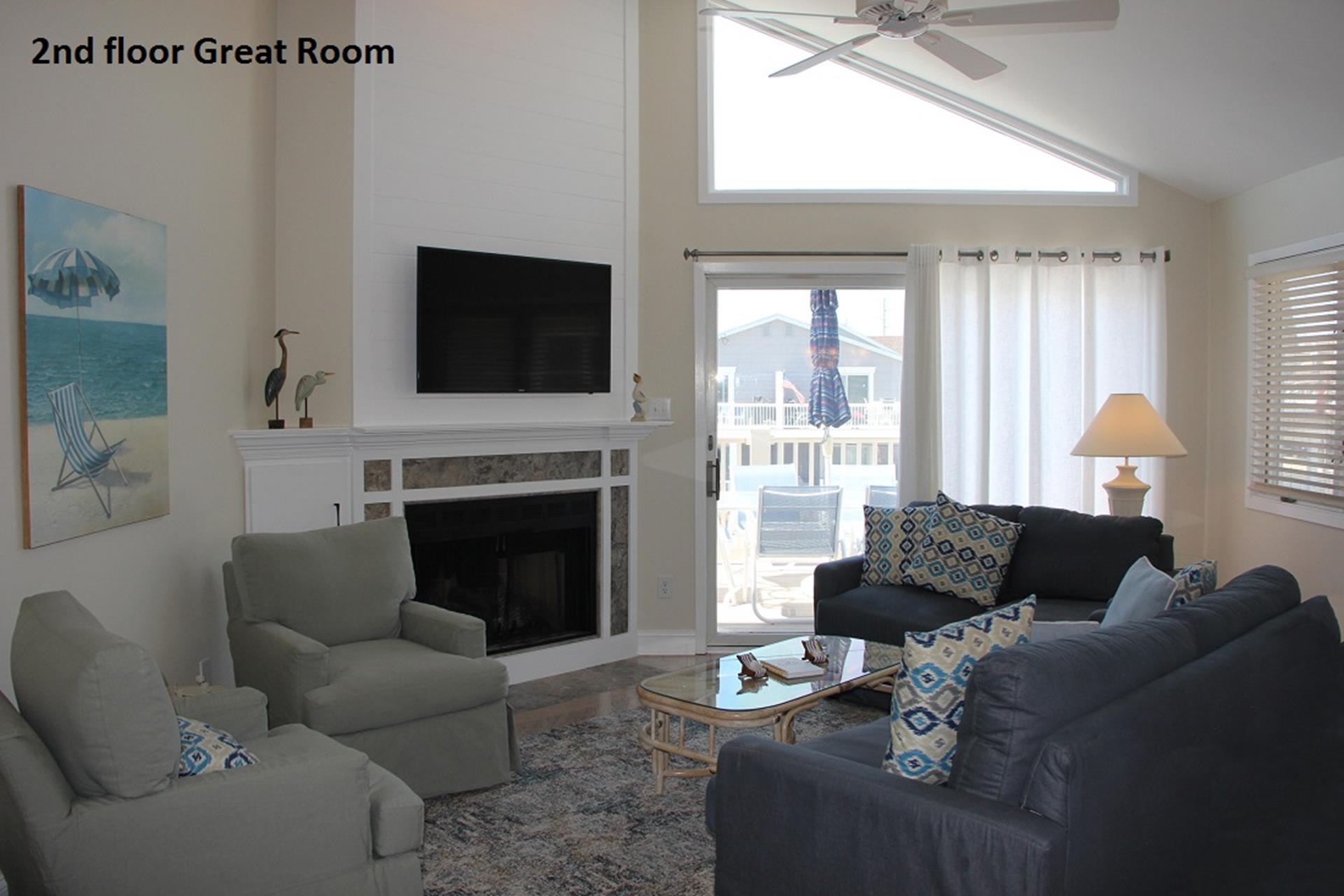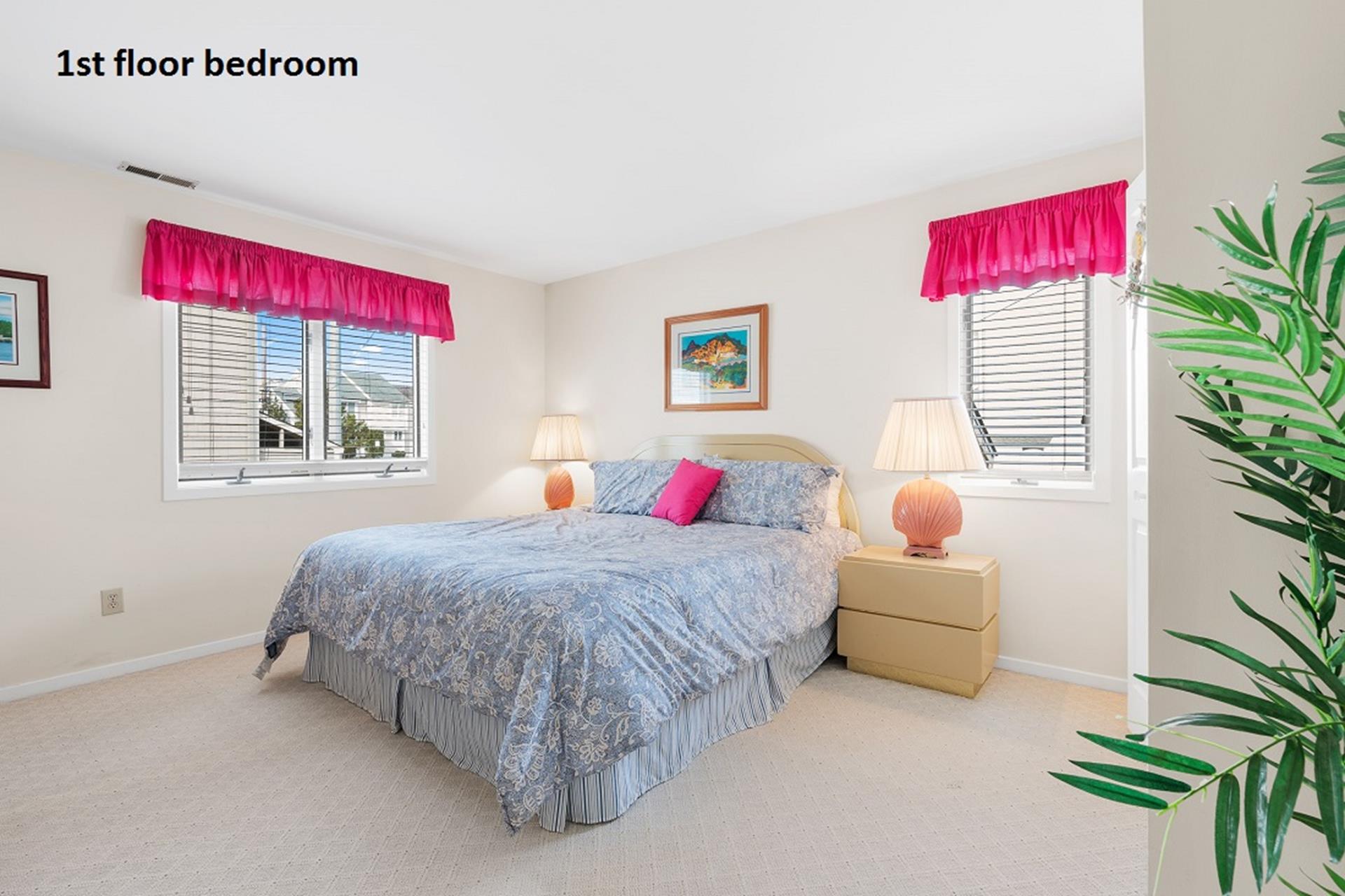 THIS BEAUTIFUL SOUTH AVALON TOWNHOUSE IS LOCATED JUST OVER 1 BLOCK FROM THE BEACH & OFFERS A BAY VIEW, WETLAND & SUNSET VIEWS AND A SPACIOUS, SOUTHERN EXPOSED DECK! Located in the quiet Southern end of Avalon, where the predominant zoning is for single family homes and therefore the area is noticeably quieter. This property is just over one block from the beach path, where the majority of zoning places condos/townhomes 3 or more blocks away from the beach! The 1st floor offers an inviting foyer with tile flooring that carries through the hallway and the 1st floor bathroom. There are 3 bedrooms and 1 bathroom (double vanity sinks): 1 bedroom has a king bed, 1 bedroom has a queen & 1 single bed, and 1 bedroom has a trundle bed (2 twins). This bedroom has a door for privacy and can easily function as Den/Family Room so that children and parents can have their own space! The Den also offers a sliding door that leads to a spacious covered deck with a bay view! The large bedroom in the rear of the property has a door offering private access to the adjacent bathroom. The 2nd floor offers a spacious Living/Dining/Kitchen area with a vaulted ceiling, hardwood flooring, a gas fireplace w/bead board and TV above, and a bay/sunset view! The Kitchen offers granite countertops and stainless steel appliances, including a wine cooler & gas range. There is also a Powder Room off the hallway. The spacious and private Master Suite (king bed) spans the rear of the property and offers a beautiful bathroom with custom tile. You ll also appreciate the fact that unlike most two-story townhomes that have an imbalance of cooling (on 1st FL/2nd FL) during the summer, this unit is "just right" because the owner added an additional cooling system so that each floor has its own a/c system! There is also an "on demand" continuous supply hot water heater, a private outside shower, off-street parking (2 vehicles) and WiFi!