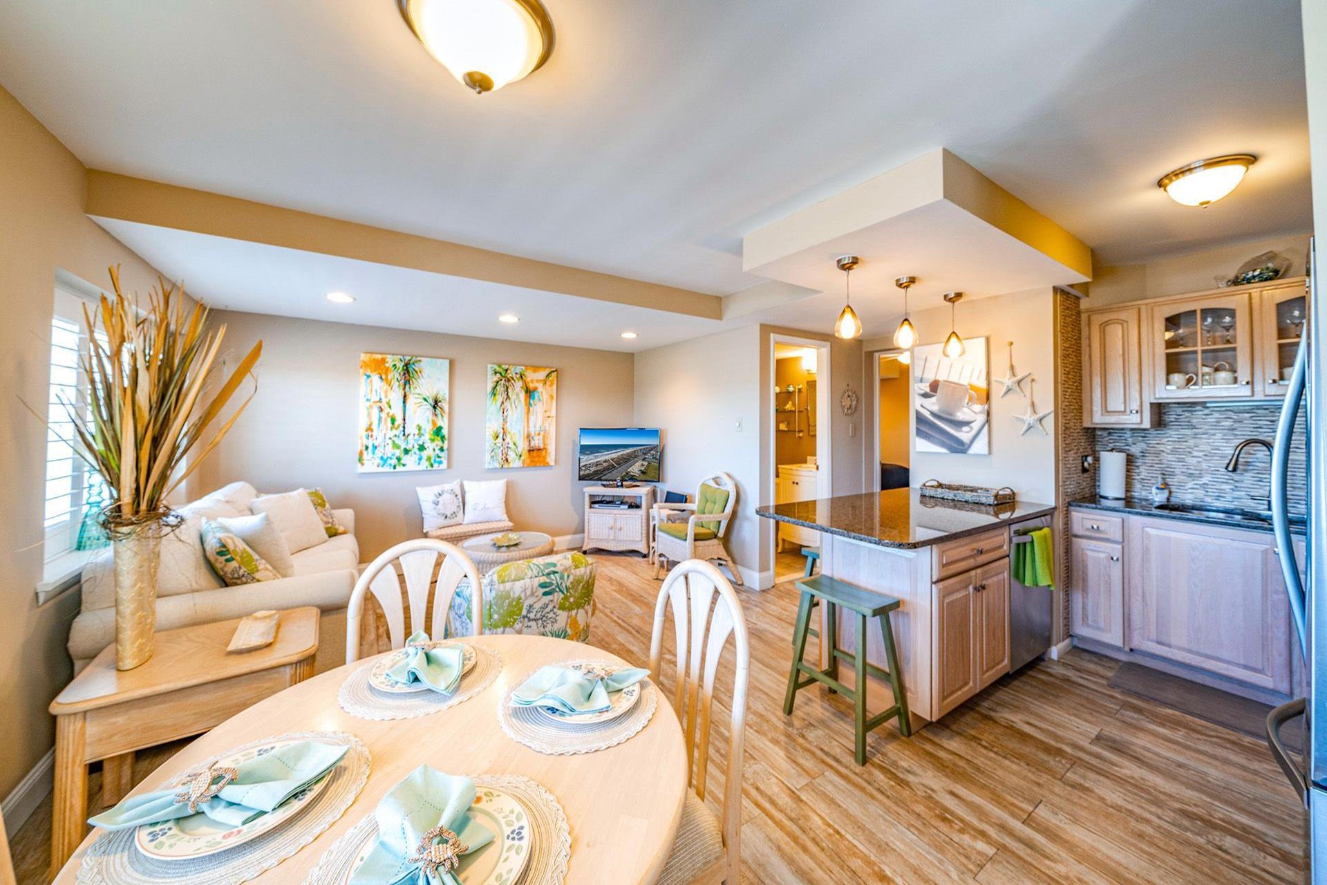2nd Floor corner unit with new appliances and ceramic tile floors. This unit at the Merrimac Condo has the perfect location for your stay at the shore. This second level end unit offers a bedroom with a queen-sized bed, one bath and a queen-sized sleeper sofa that will allow this unit to sleep 4 people. One parking space per unit and the very short walk to the beach and to the Windrift make this a prime location for a getaway to the shore. The shared pool remains open during the summer hours until 6PM only (daily). The Merrimac Resort Condominium is located on the beach block across from the Recreation Field with playground, tennis and basketball courts. Book today!