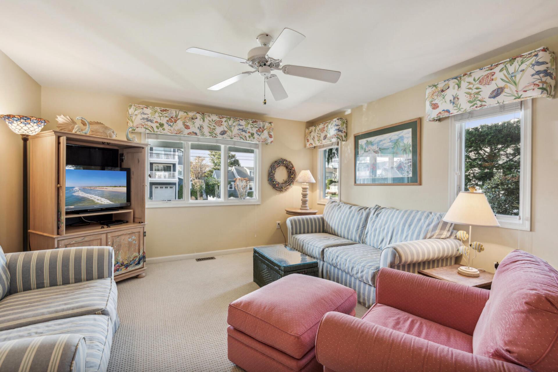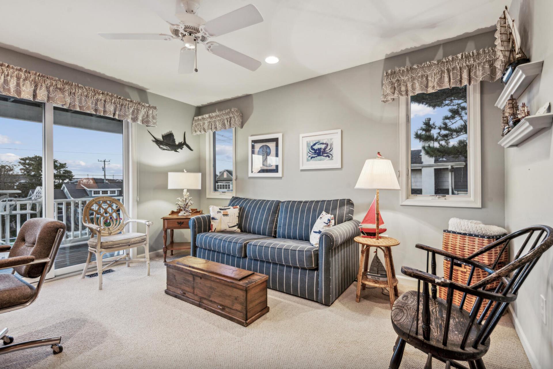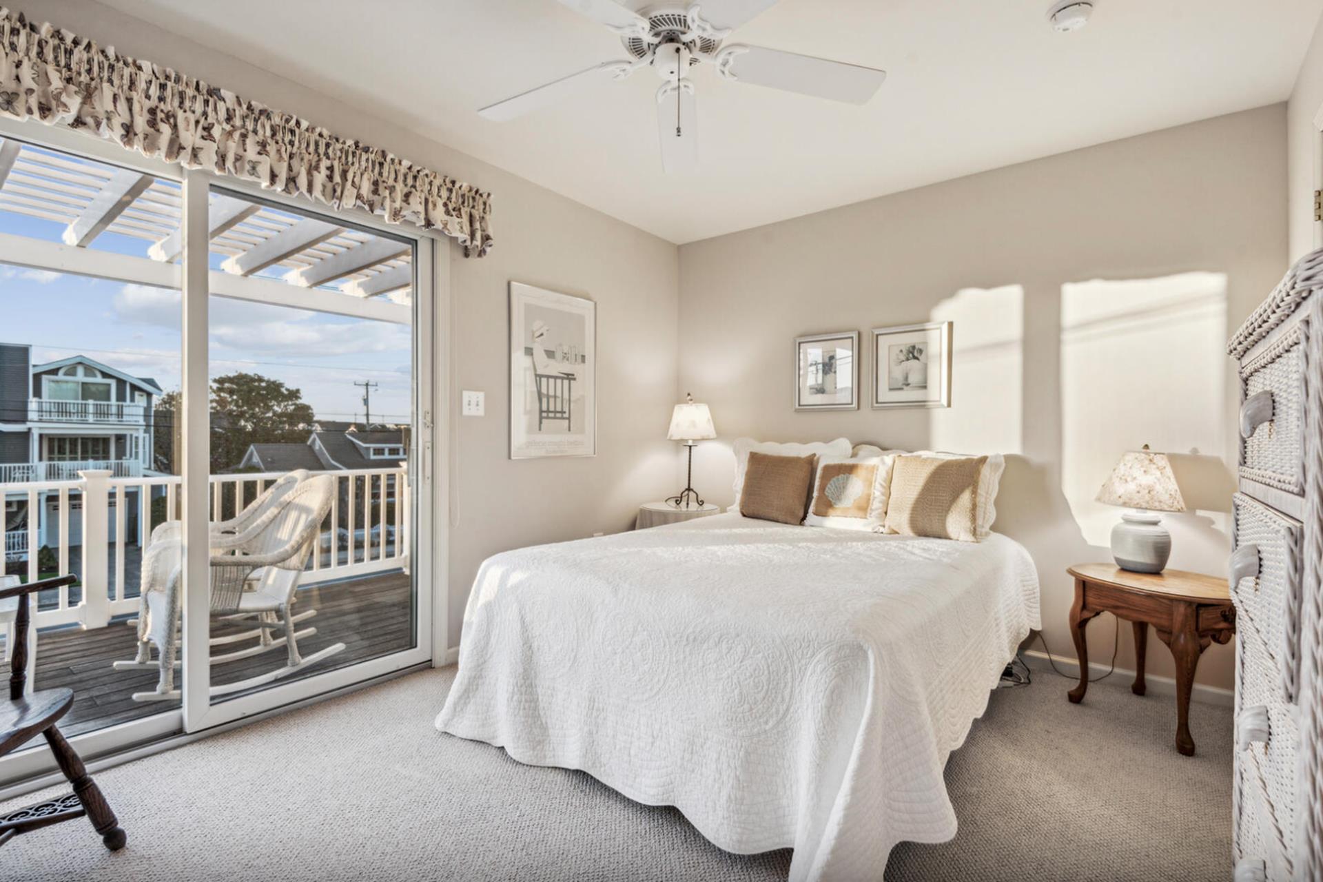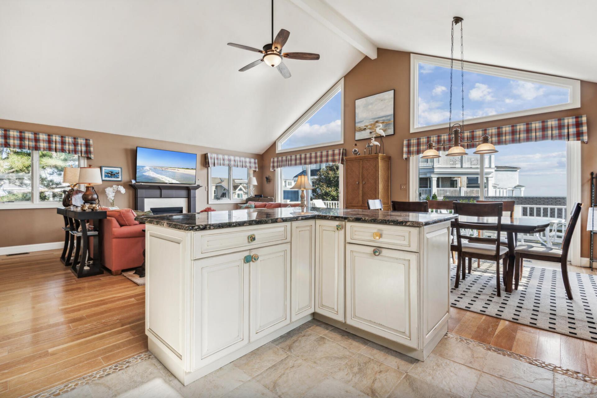 STEPS FROM THE BEACH AND BEAUTIFUL OCEAN VIEWS! This three story home offers 6 bedrooms and 4 bathrooms. The first floor features a family room with a TV, wet bar and mini refrigerator and microwave oven for your enjoyment. The first floor also offers 3 guest bedrooms, two with queen beds, and the third featuring 2 single beds. A hall bathroom with a tub & shower are also situated on the first floor along with the laundry room. The 2nd floor offers an expansive living room, dining and kitchen area with cathedral ceilings offering plenty of natural sunlight leading out to a 2nd floor deck that expands the width of the home. In addition on the second floor there is a guest bedroom with a queen size bed, a second bedroom featuring a queen size bed along with a private bath featuring a power jet tub and shower. A convenient office area is also tucked away on the second floor. The third floor hosts private primary bedroom with access to a street side deck overlooking First Avenue and a large primary bathroom with ocean views. This nicely sized home is in a phenomenal location to enjoy all that Avalon has to offer!