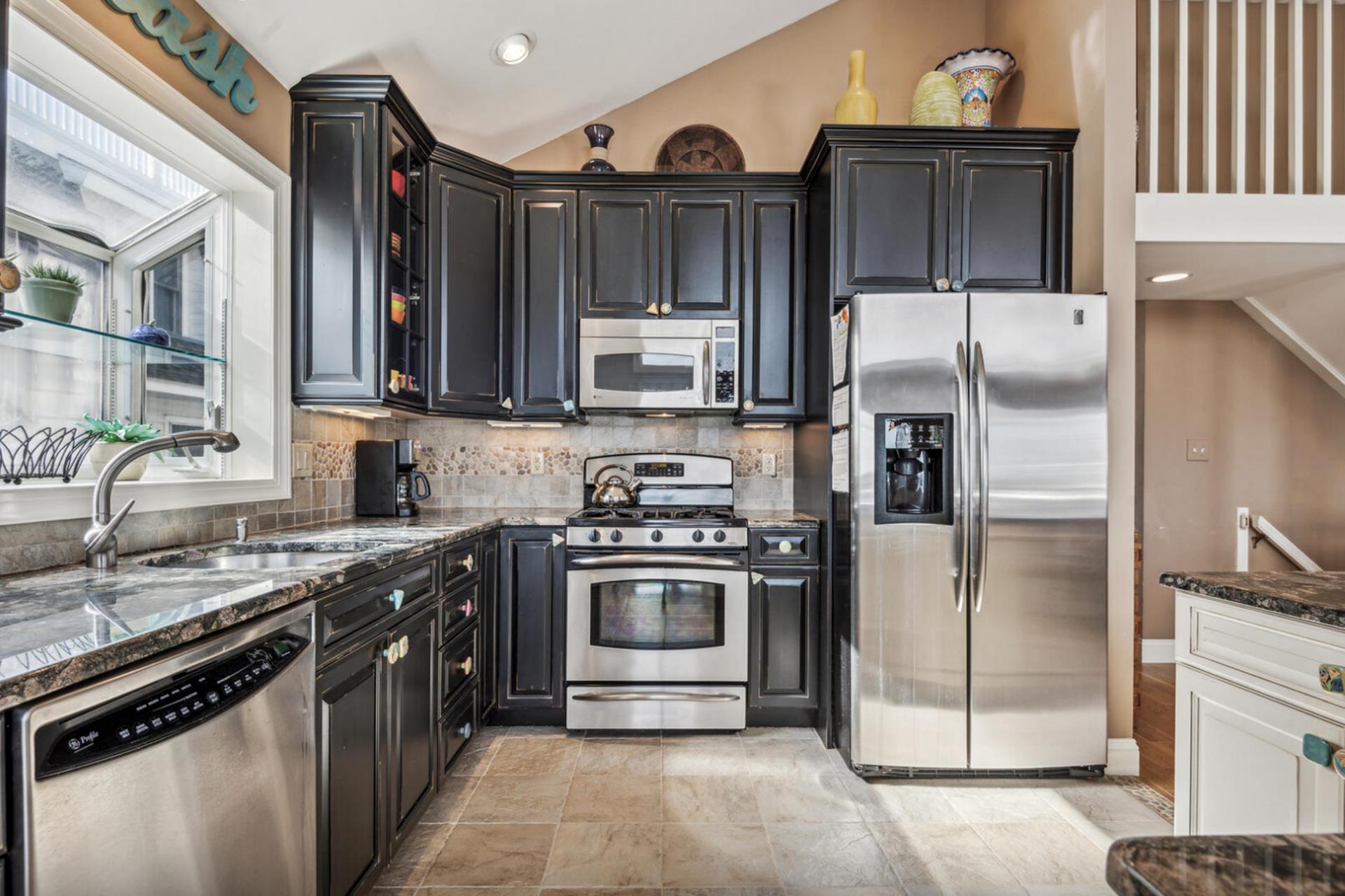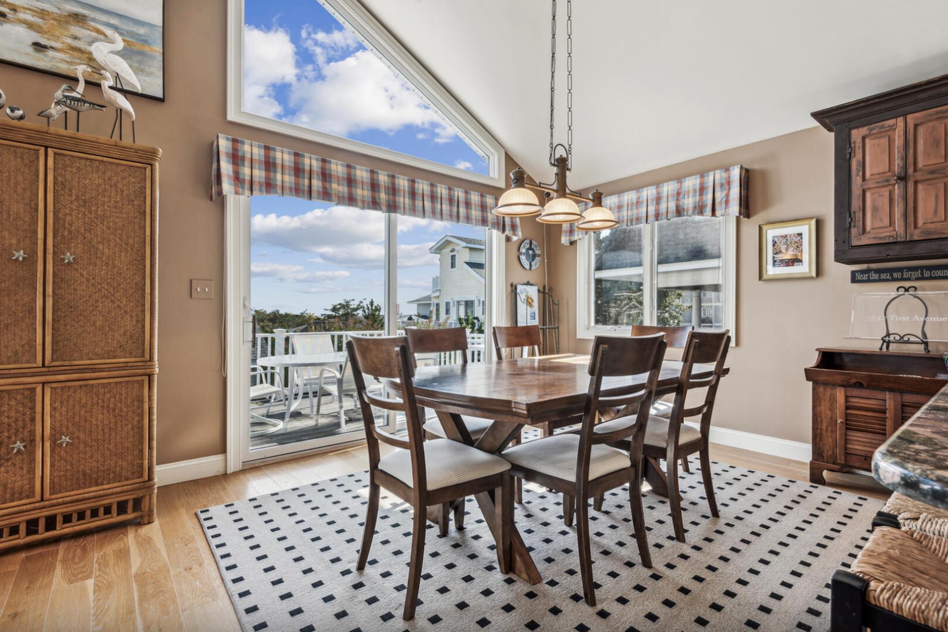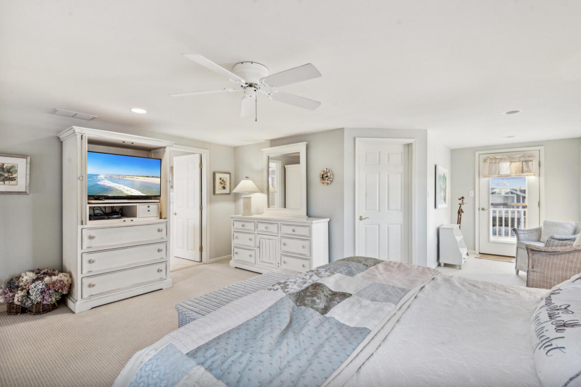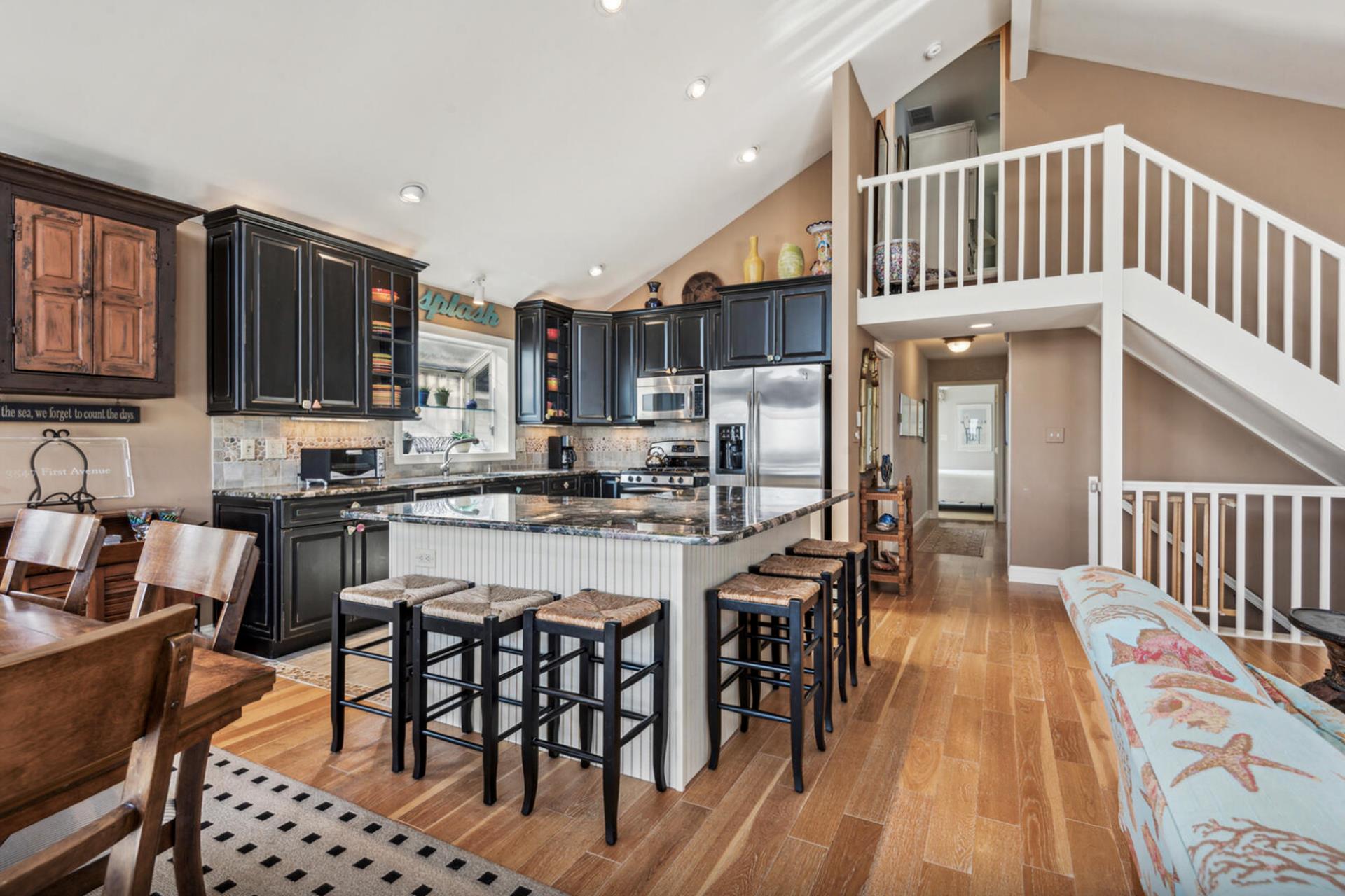 STEPS FROM THE BEACH AND BEAUTIFUL OCEAN VIEWS! This three story home offers 6 bedrooms and 4 bathrooms. The first floor features a family room with a TV, wet bar and mini refrigerator and microwave oven for your enjoyment. The first floor also offers 3 guest bedrooms, two with queen beds, and the third featuring 2 single beds. A hall bathroom with a tub & shower are also situated on the first floor along with the laundry room. The 2nd floor offers an expansive living room, dining and kitchen area with cathedral ceilings offering plenty of natural sunlight leading out to a 2nd floor deck that expands the width of the home. In addition on the second floor there is a guest bedroom with a queen size bed, a second bedroom featuring a queen size bed along with a private bath featuring a power jet tub and shower. A convenient office area is also tucked away on the second floor. The third floor hosts private primary bedroom with access to a street side deck overlooking First Avenue and a large primary bathroom with ocean views. This nicely sized home is in a phenomenal location to enjoy all that Avalon has to offer!