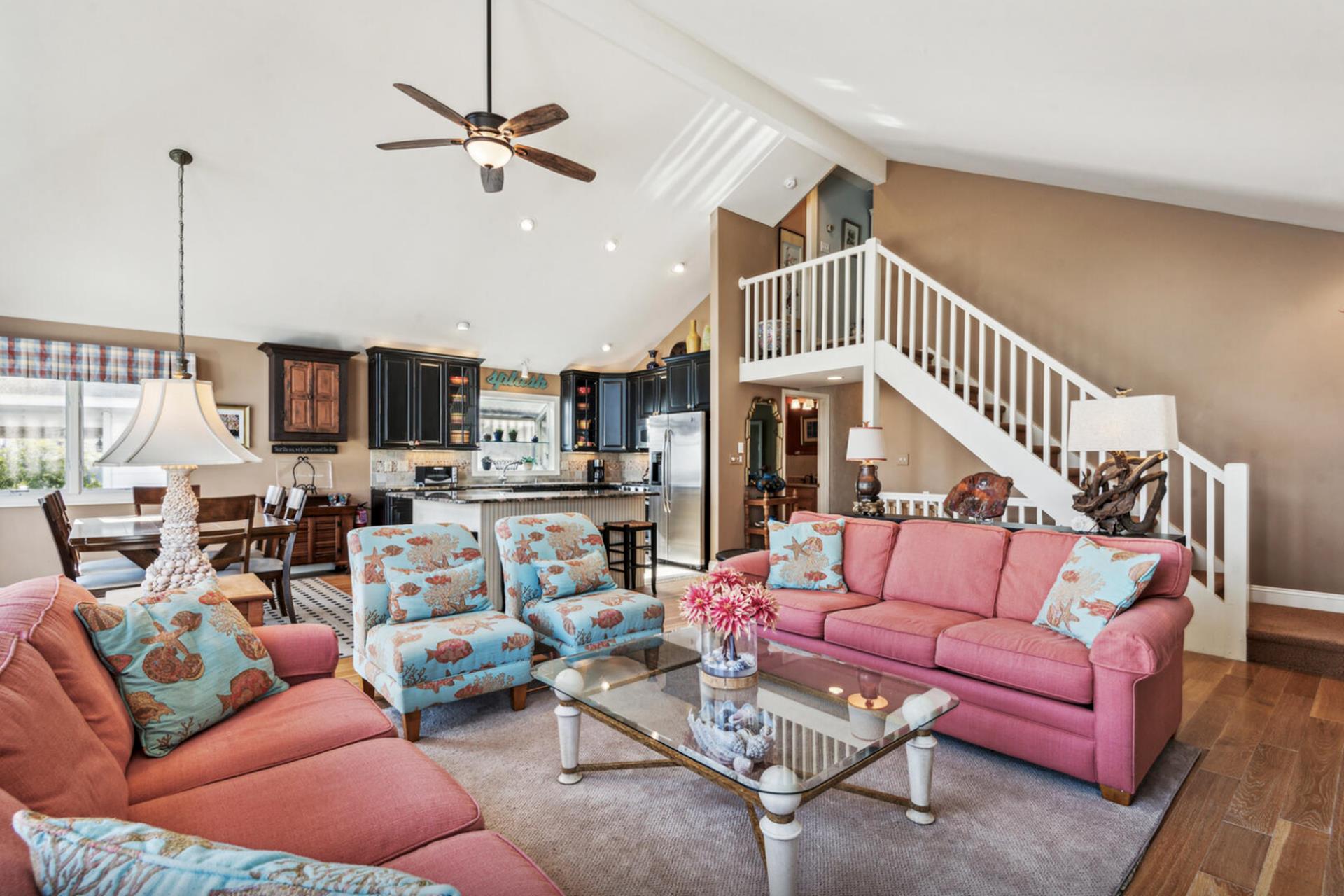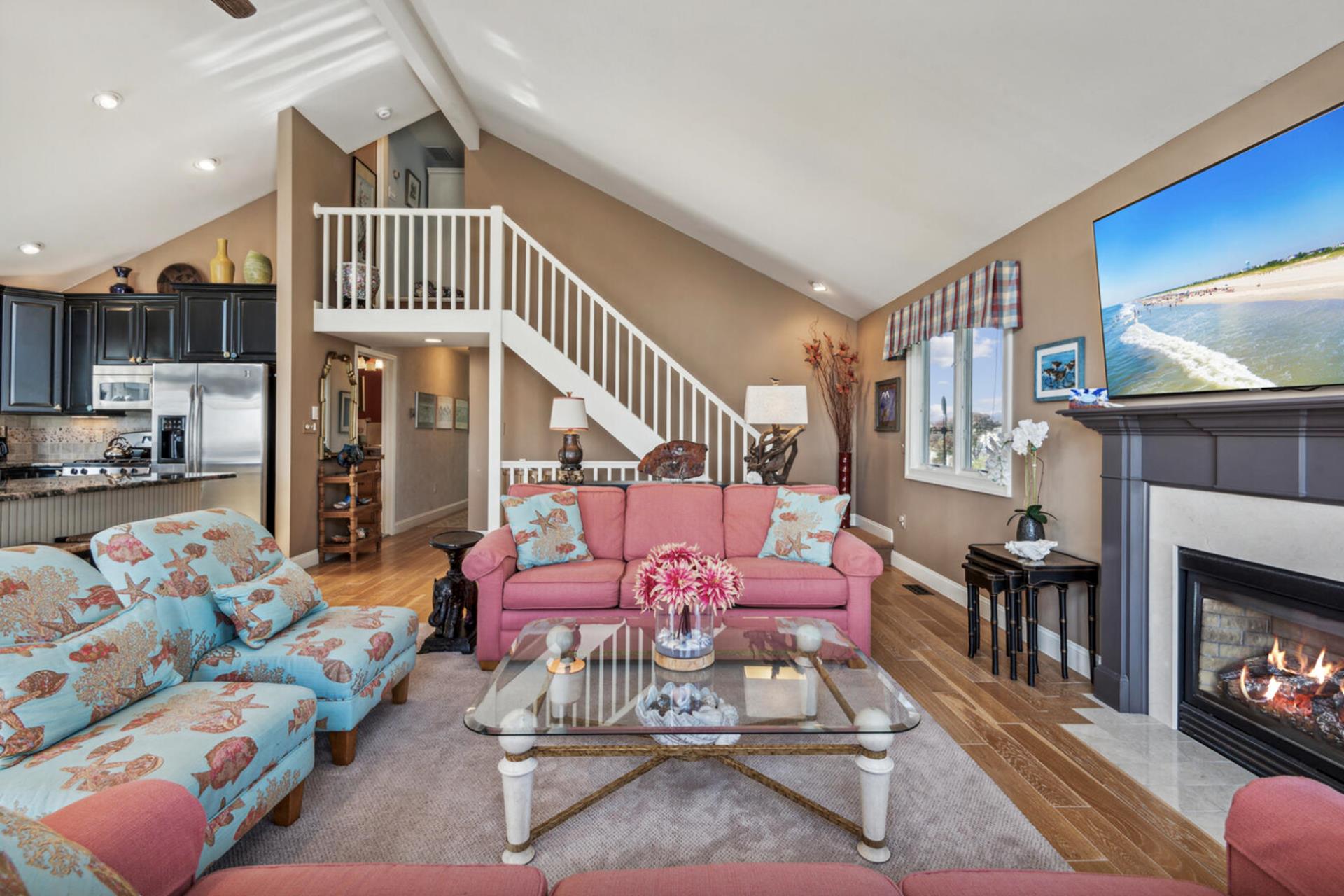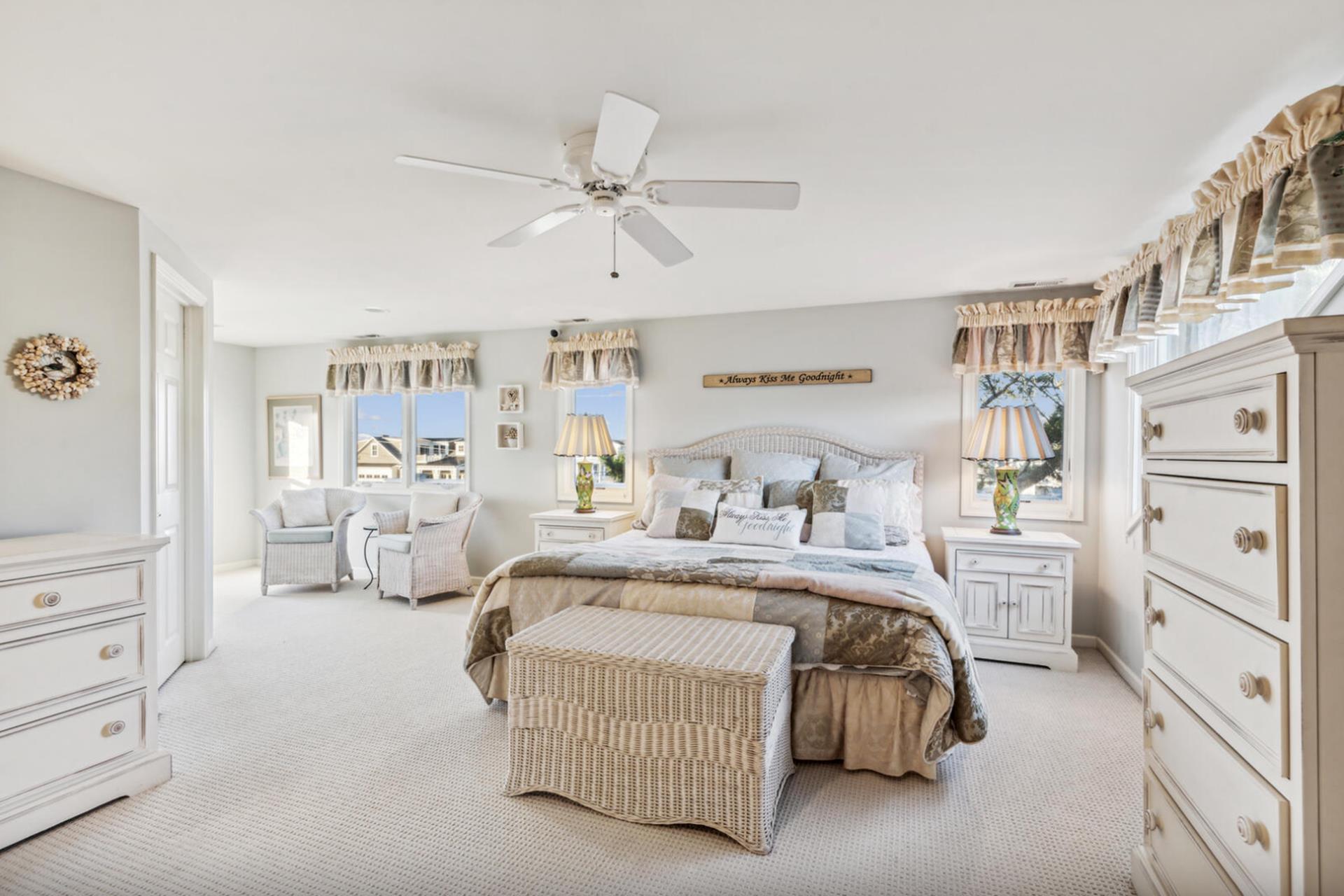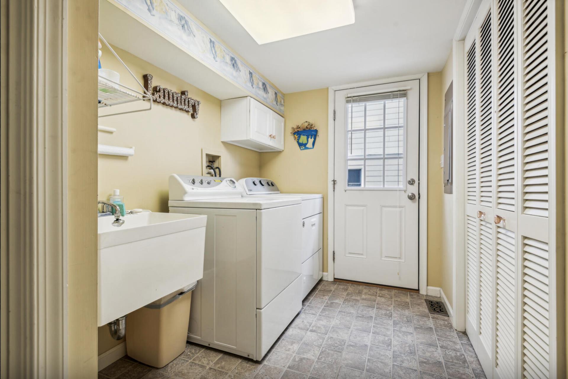 STEPS FROM THE BEACH AND BEAUTIFUL OCEAN VIEWS! This three story home offers 6 bedrooms and 4 bathrooms. The first floor features a family room with a TV, wet bar and mini refrigerator and microwave oven for your enjoyment. The first floor also offers 3 guest bedrooms, two with queen beds, and the third featuring 2 single beds. A hall bathroom with a tub & shower are also situated on the first floor along with the laundry room. The 2nd floor offers an expansive living room, dining and kitchen area with cathedral ceilings offering plenty of natural sunlight leading out to a 2nd floor deck that expands the width of the home. In addition on the second floor there is a guest bedroom with a queen size bed, a second bedroom featuring a queen size bed along with a private bath featuring a power jet tub and shower. A convenient office area is also tucked away on the second floor. The third floor hosts private primary bedroom with access to a street side deck overlooking First Avenue and a large primary bathroom with ocean views. This nicely sized home is in a phenomenal location to enjoy all that Avalon has to offer!